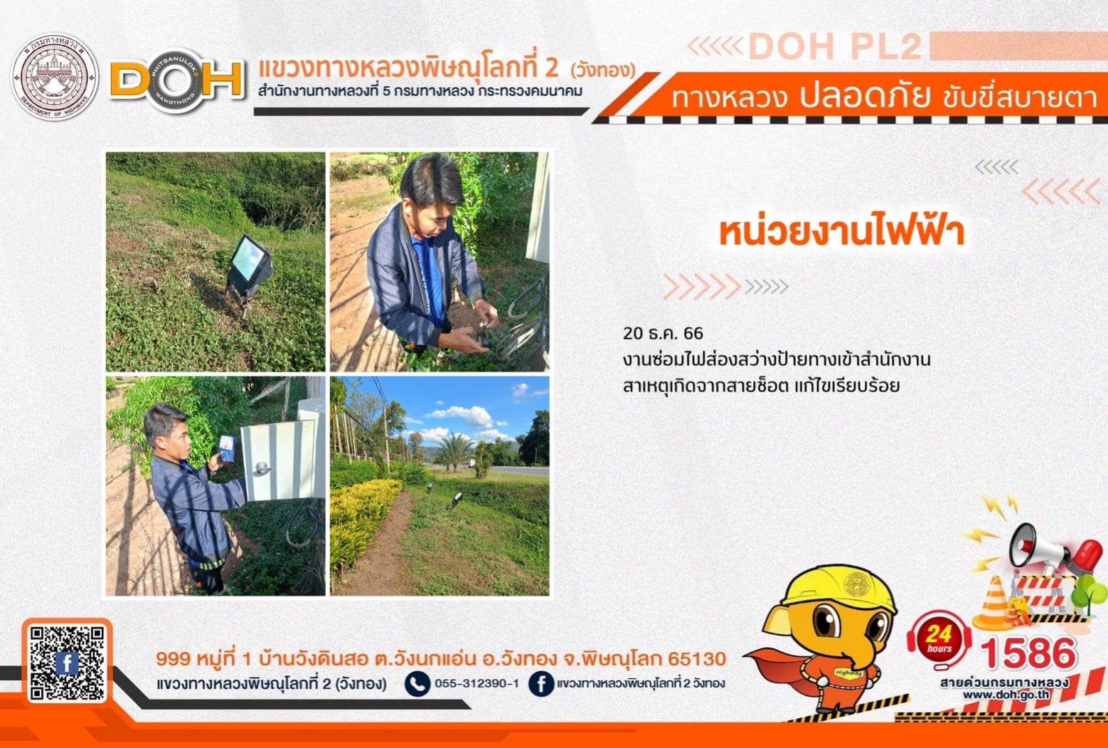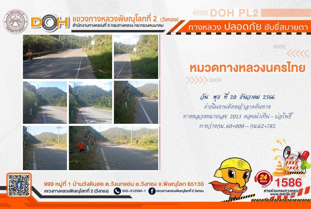 การปฏิบัติงานของ หมวดทางหลวง และ หน่วยงานในสังกัด เพื่ออำนวยความสะดวก และปลอดภัยให้กับประชาชนผู้ใช้เส้นทาง ประจำ วันพุธที่ 20 ธันวาคม 2566