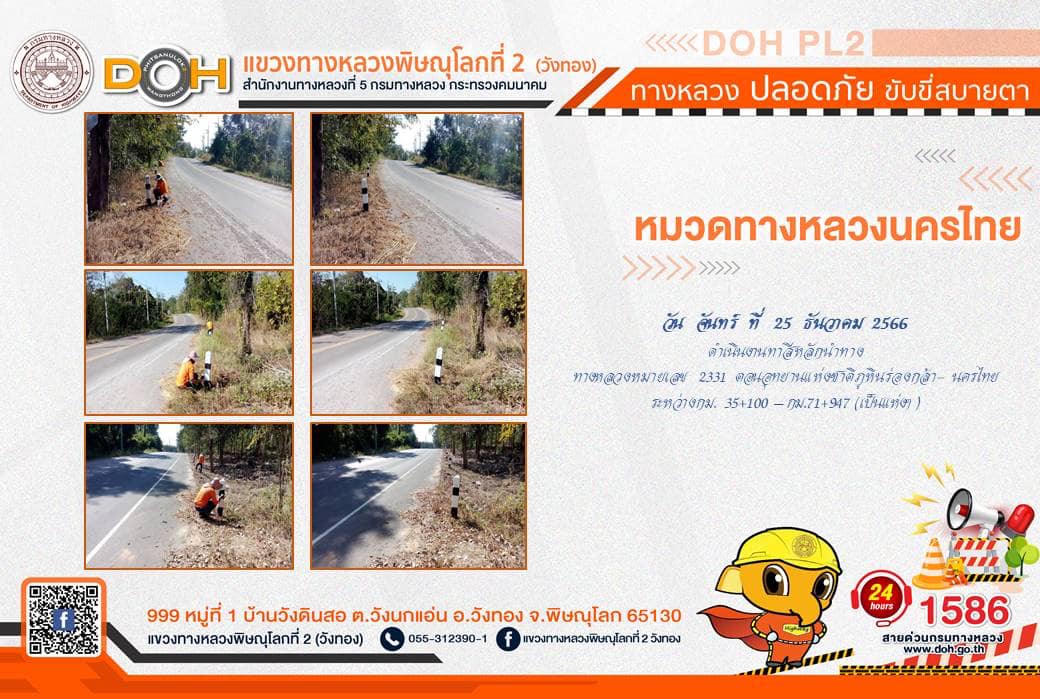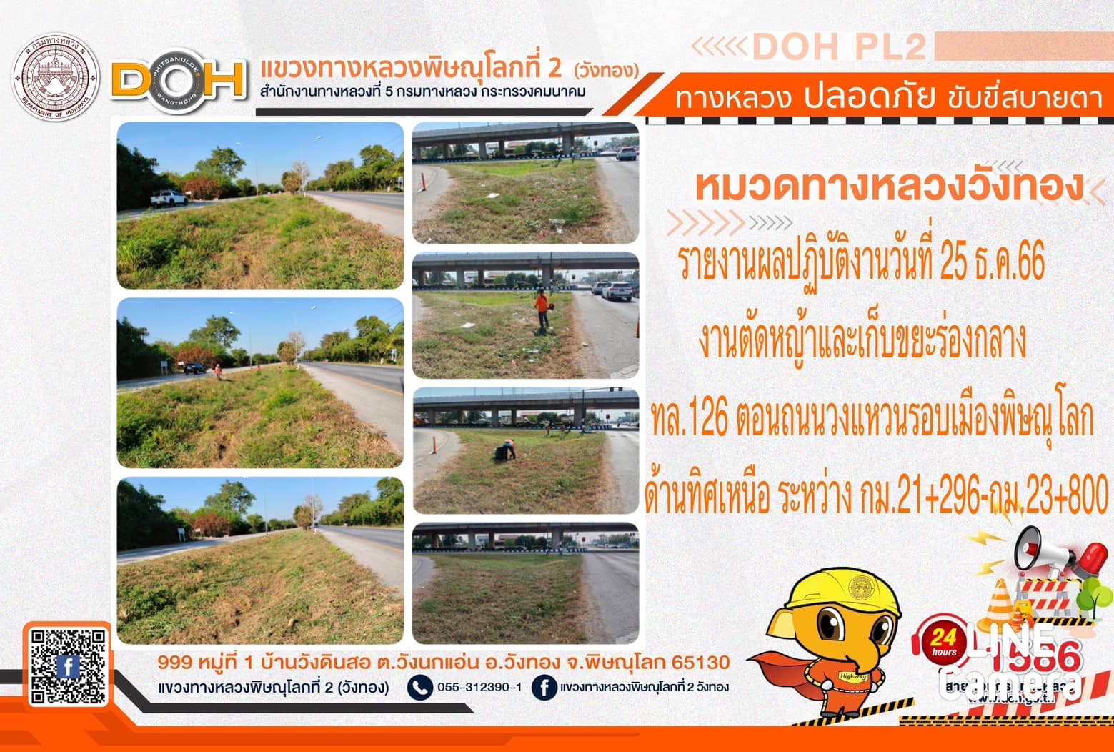 การปฏิบัติงานของ หมวดทางหลวง และ หน่วยงานในสังกัด เพื่ออำนวยความสะดวก และปลอดภัยให้กับประชาชนผู้ใช้เส้นทาง ประจำ วันจันทร์ที่ 25 ธันวาคม 2566