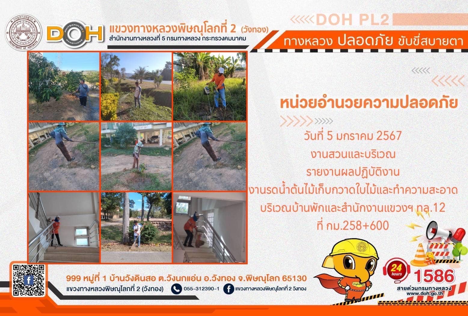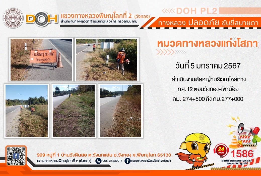 การปฏิบัติงานของ หมวดทางหลวง และ หน่วยงานในสังกัด เพื่ออำนวยความสะดวก และปลอดภัยให้กับประชาชนผู้ใช้เส้นทาง ประจำ วันศุกร์ที่ 5 มกราคม 2567