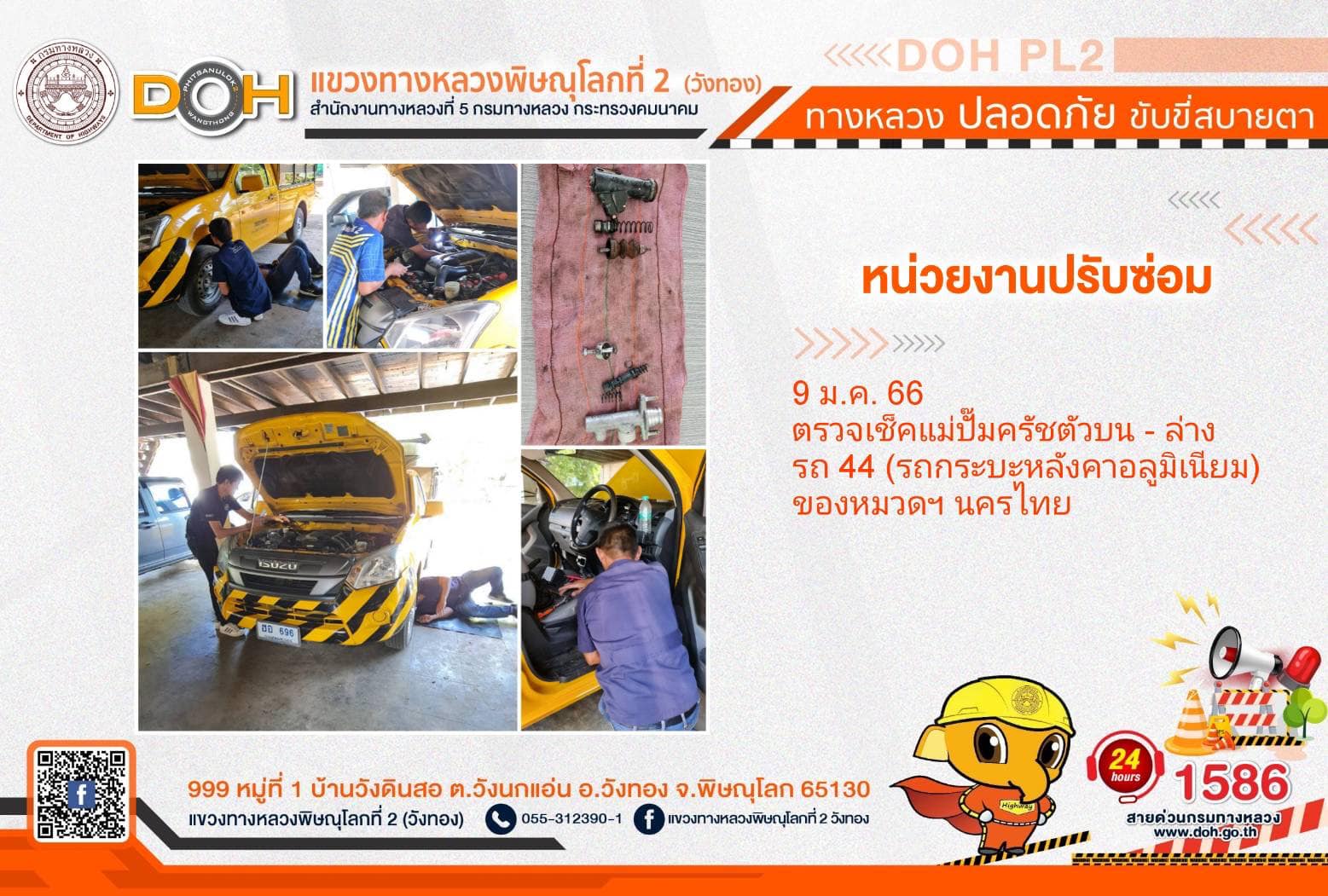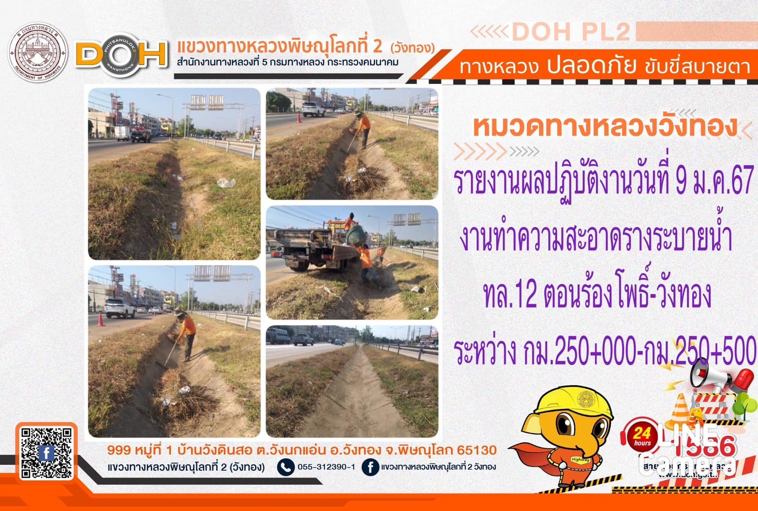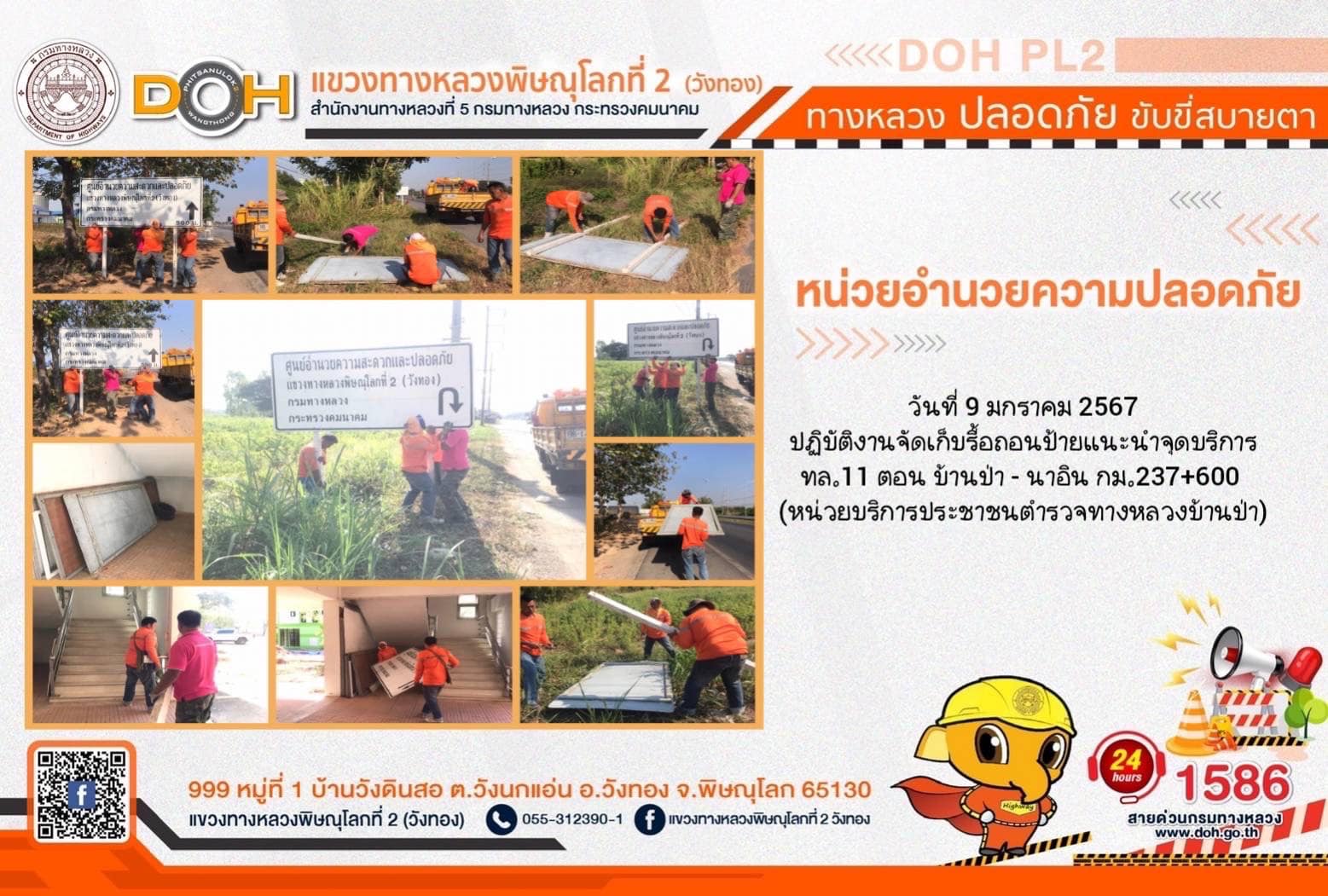 การปฏิบัติงานของ หมวดทางหลวง และ หน่วยงานในสังกัด เพื่ออำนวยความสะดวก และปลอดภัยให้กับประชาชนผู้ใช้เส้นทาง ประจำ วันอังคารที่ 9 มกราคม 2567