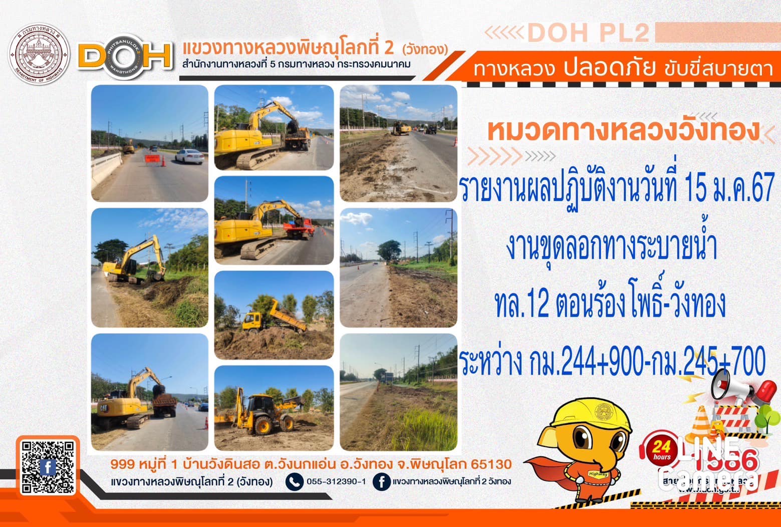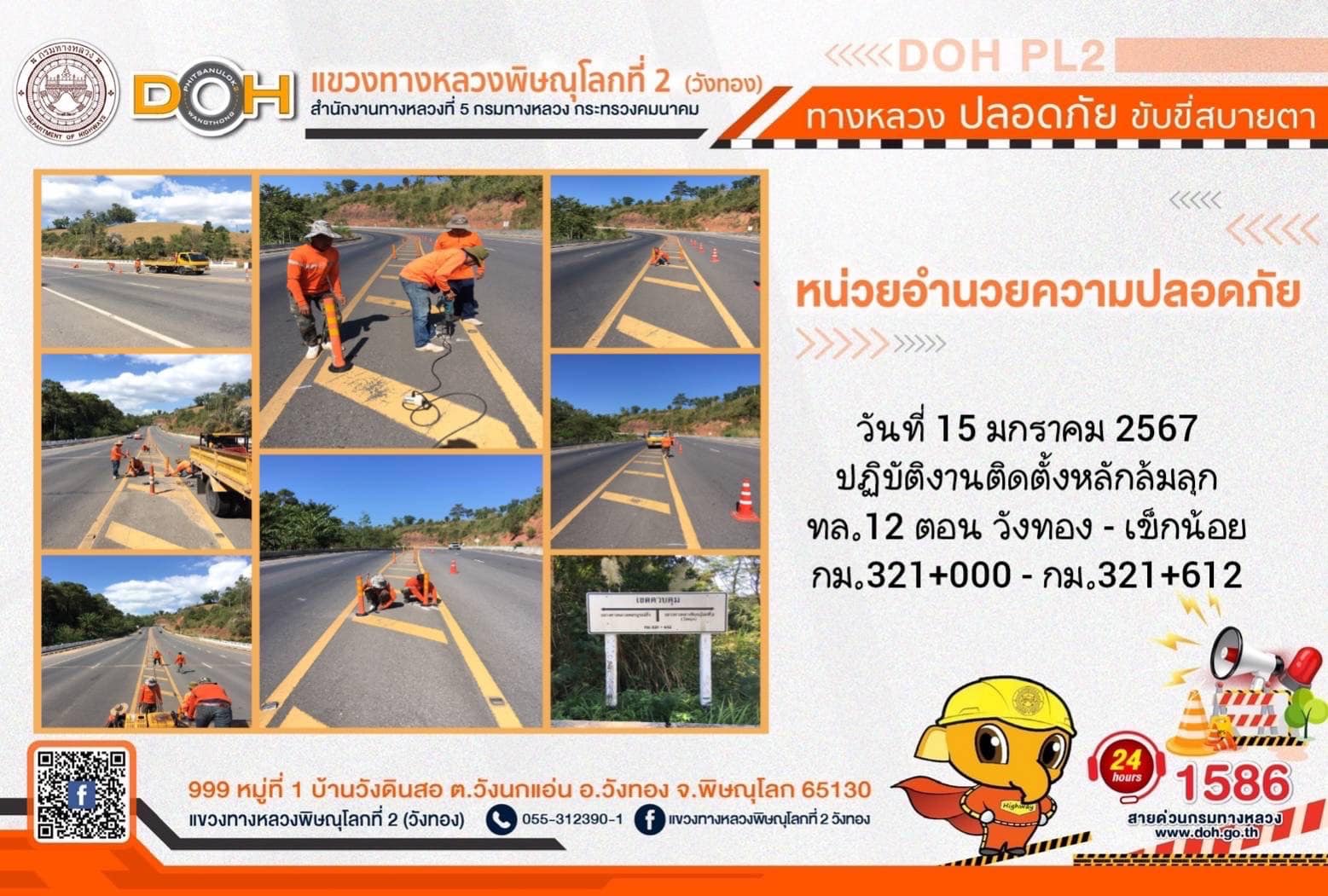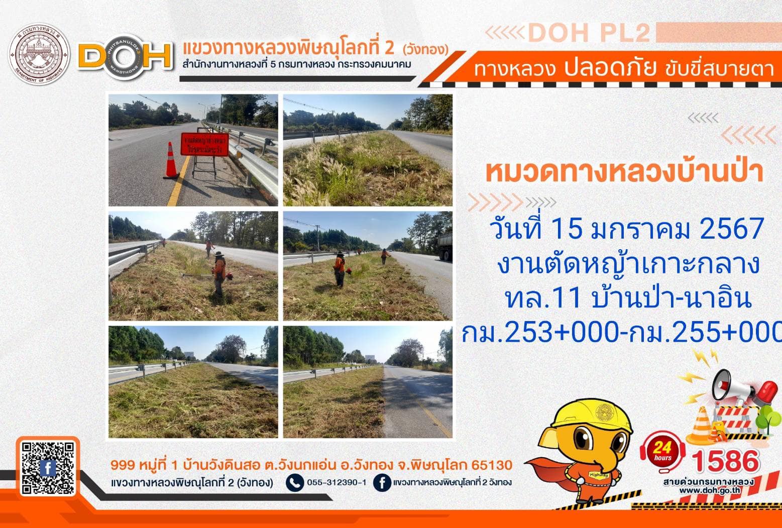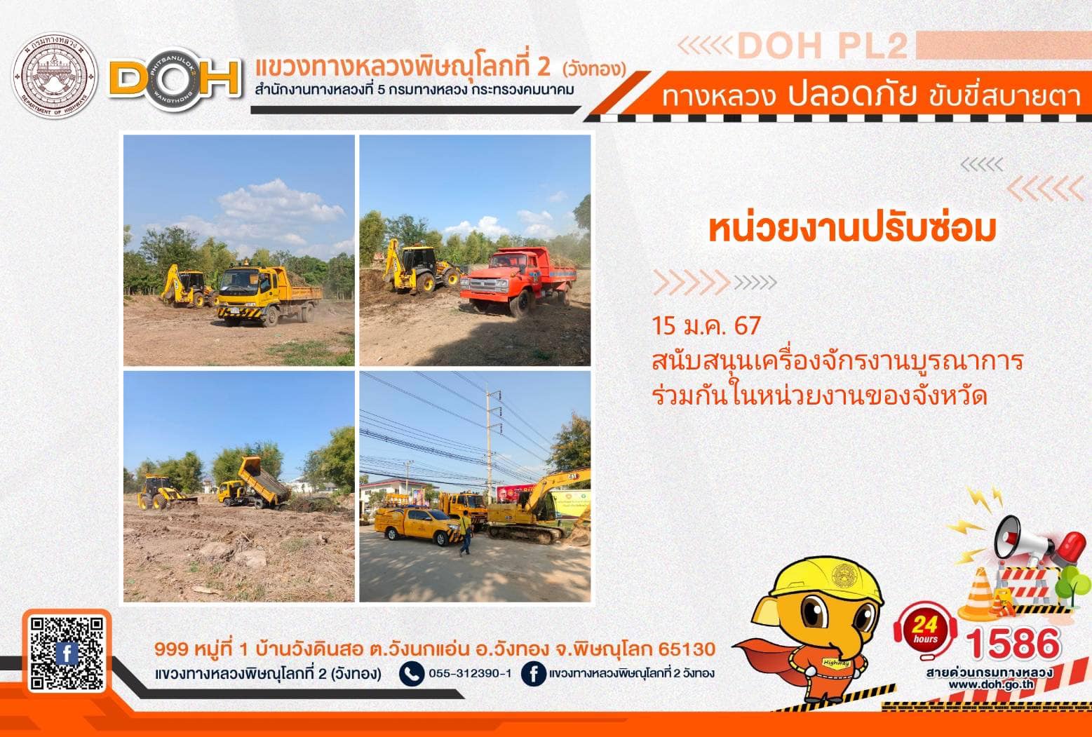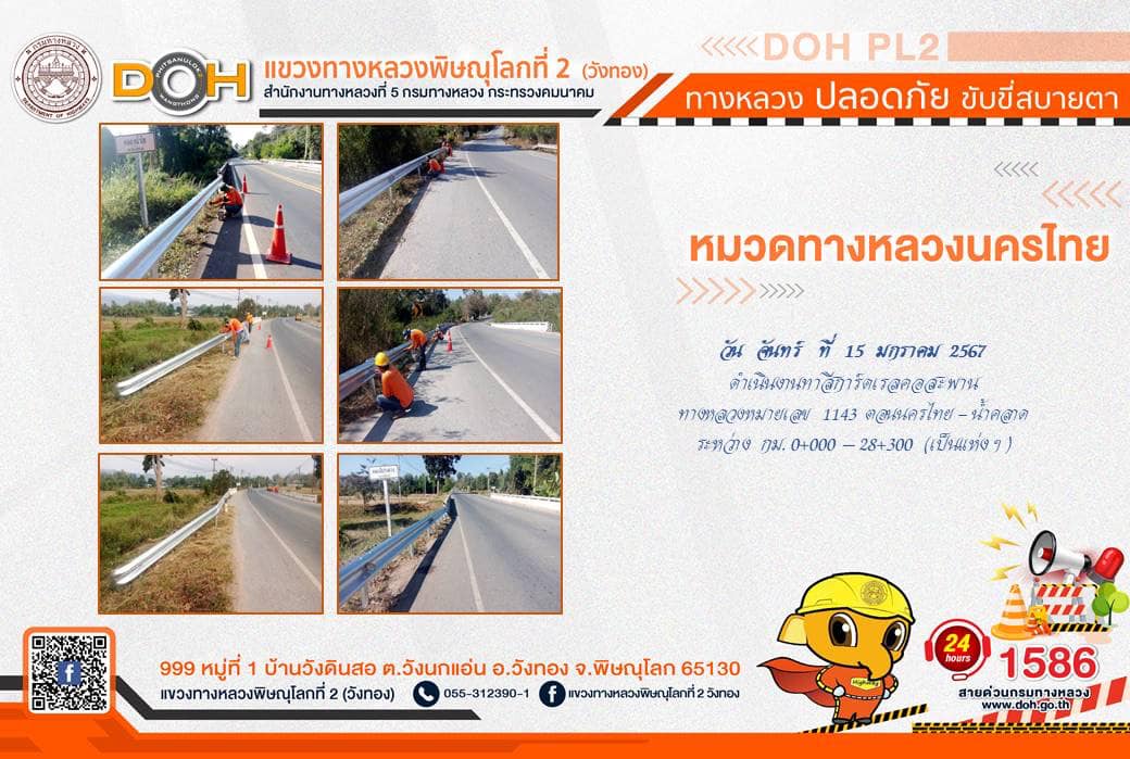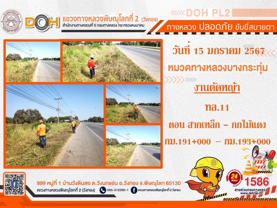 การปฏิบัติงานของ หมวดทางหลวง และ หน่วยงานในสังกัด เพื่ออำนวยความสะดวก และปลอดภัยให้กับประชาชนผู้ใช้เส้นทาง ประจำ วันจันทร์ที่ 15 มกราคม 2567