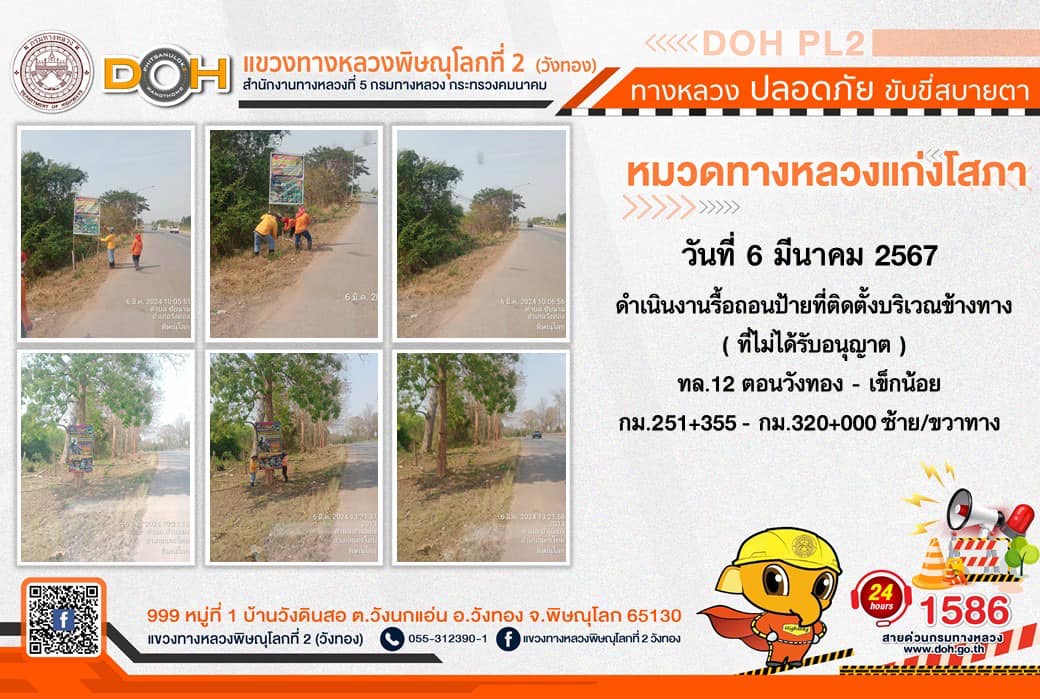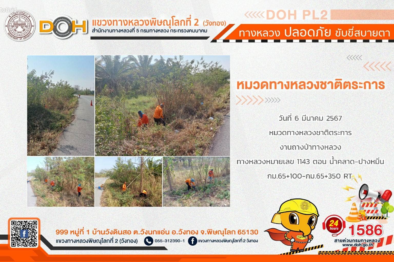 การปฏิบัติงานของ หมวดทางหลวง และ หน่วยงานในสังกัด เพื่ออำนวยความสะดวก และปลอดภัยให้กับประชาชนผู้ใช้เส้นทาง ประจำ วันพุธที่ 6 มีนาคม 2567