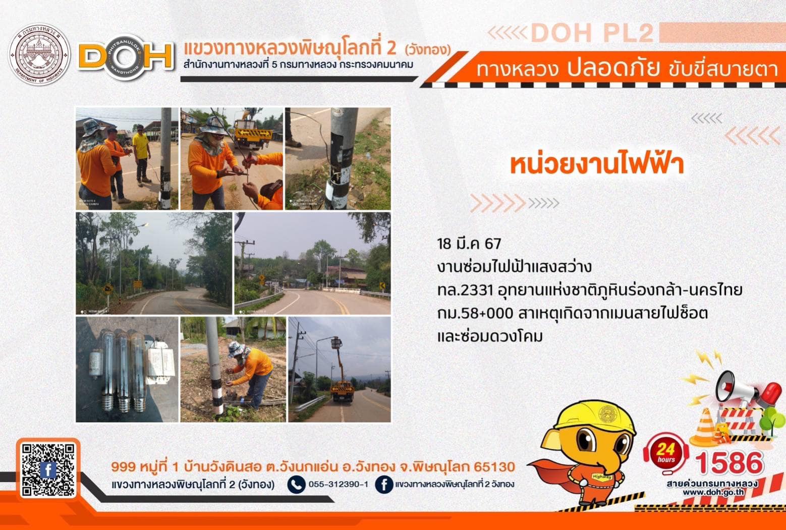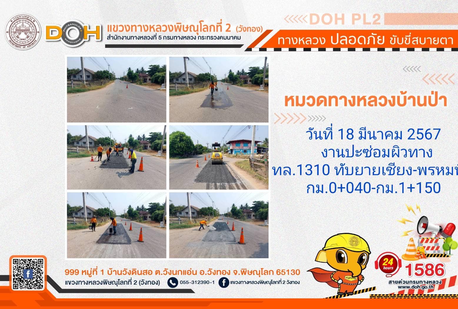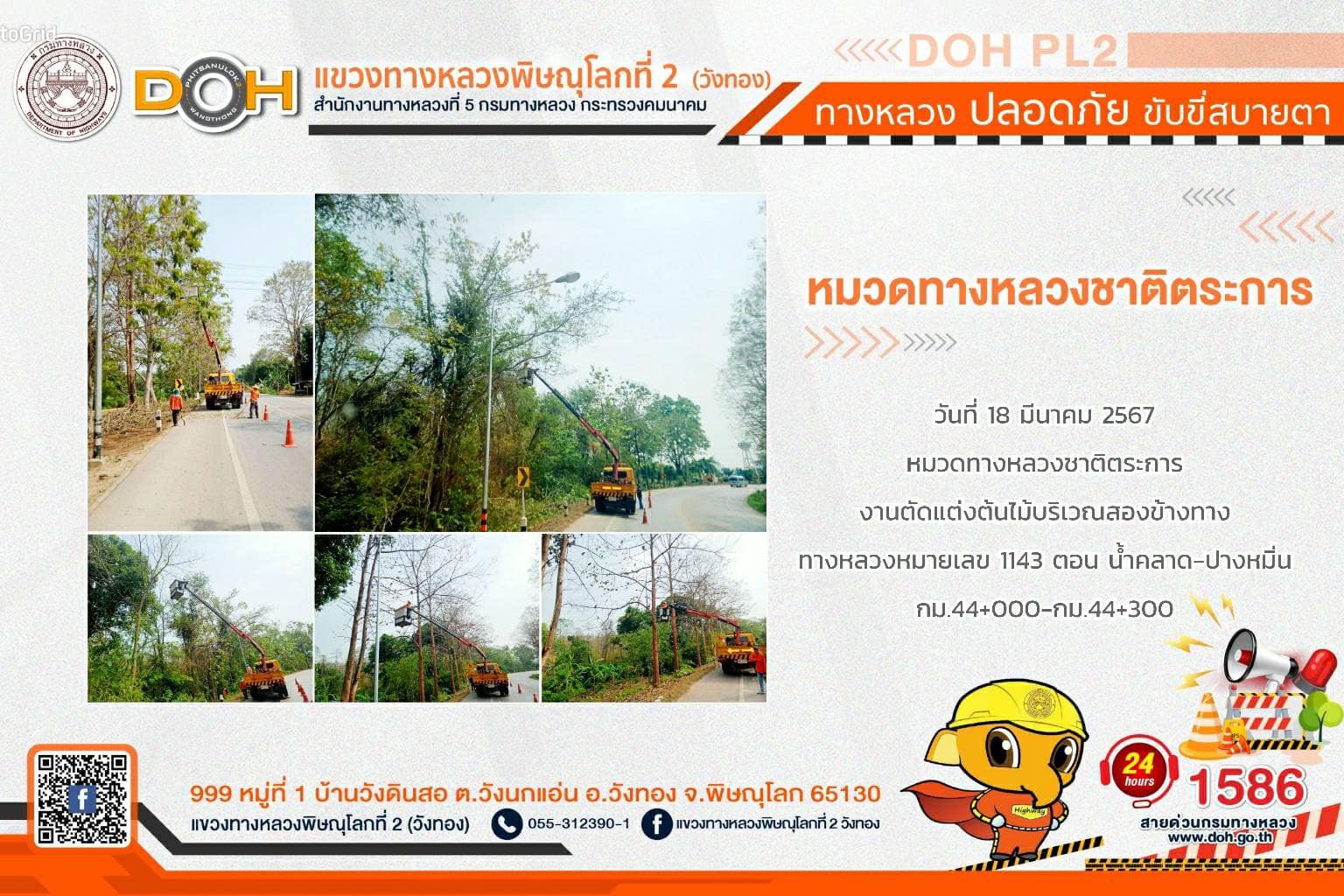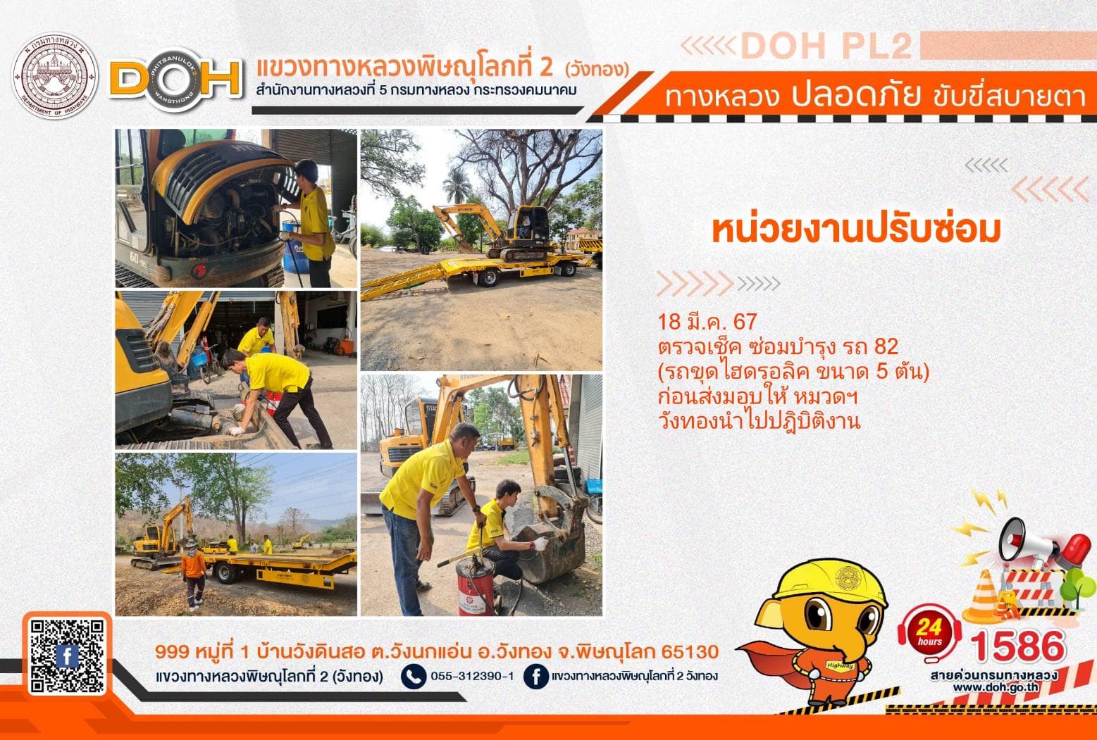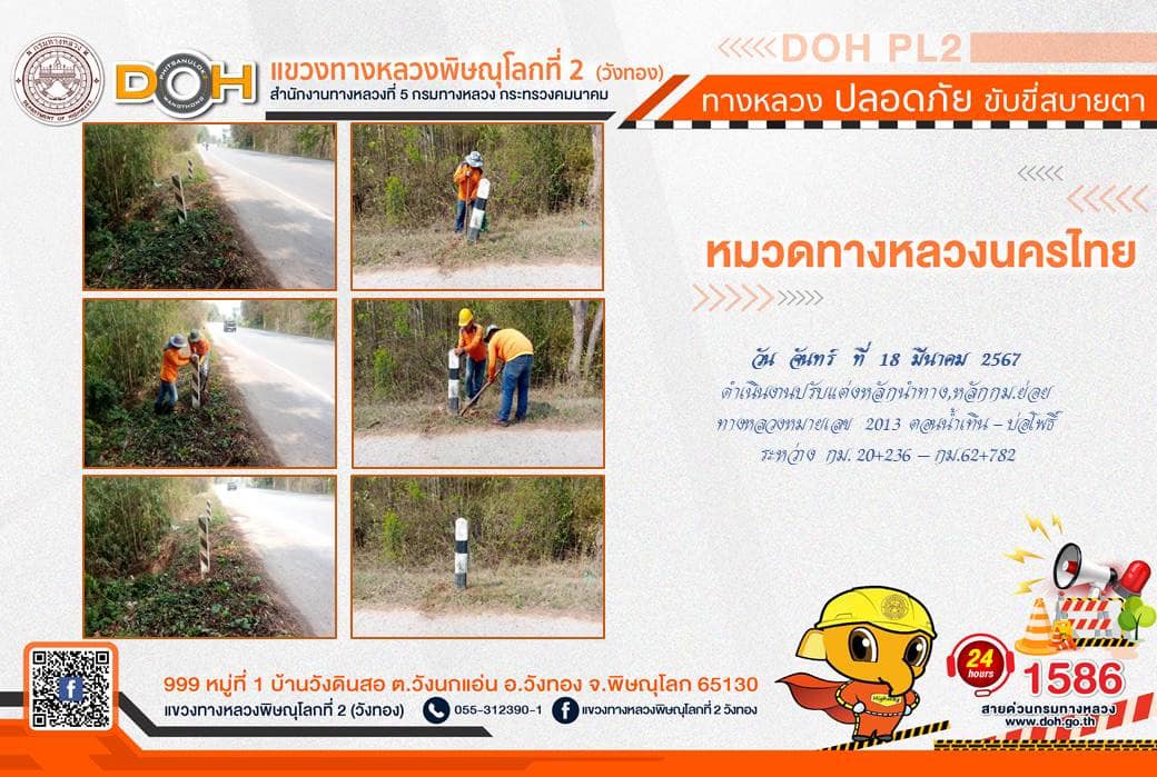 การปฏิบัติงานของ หมวดทางหลวง และ หน่วยงานในสังกัด เพื่ออำนวยความสะดวก และปลอดภัยให้กับประชาชนผู้ใช้เส้นทาง ประจำ วันจันทร์ที่ 18 มีนาคม 2567