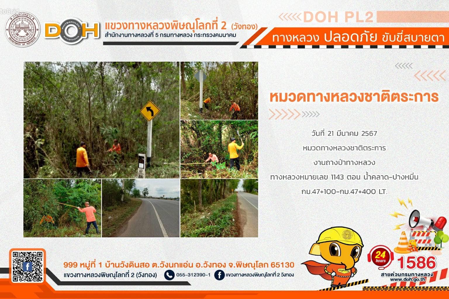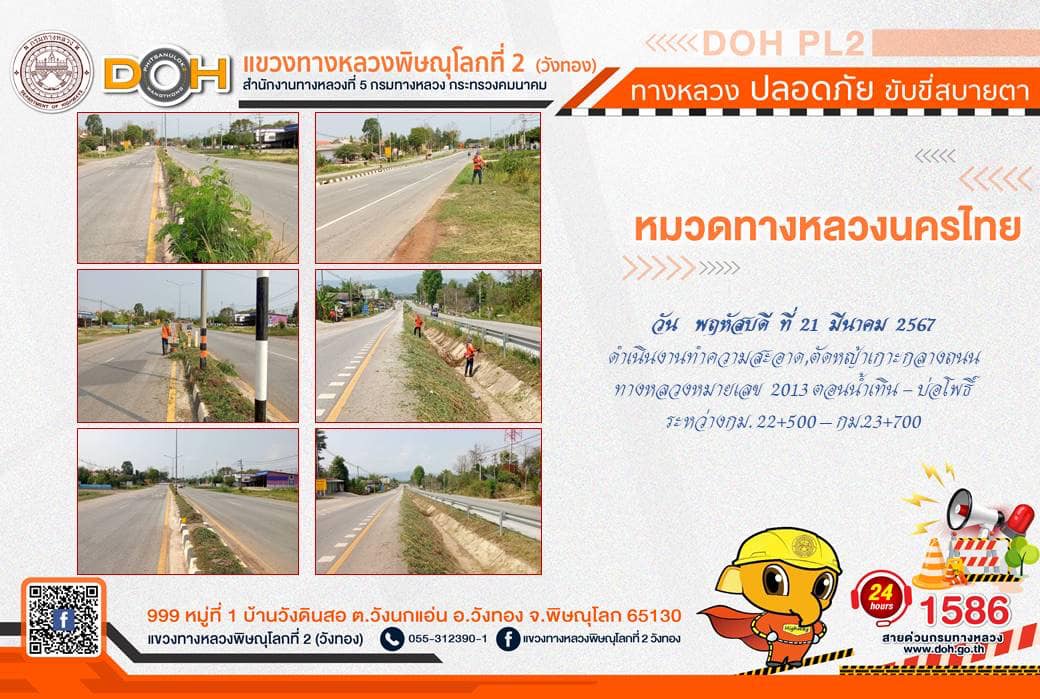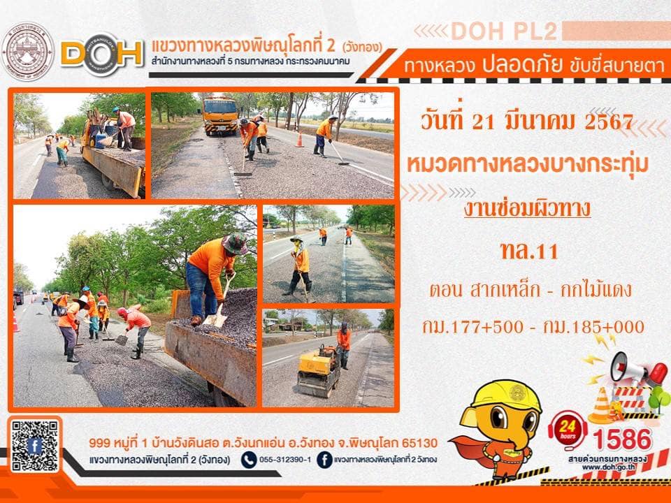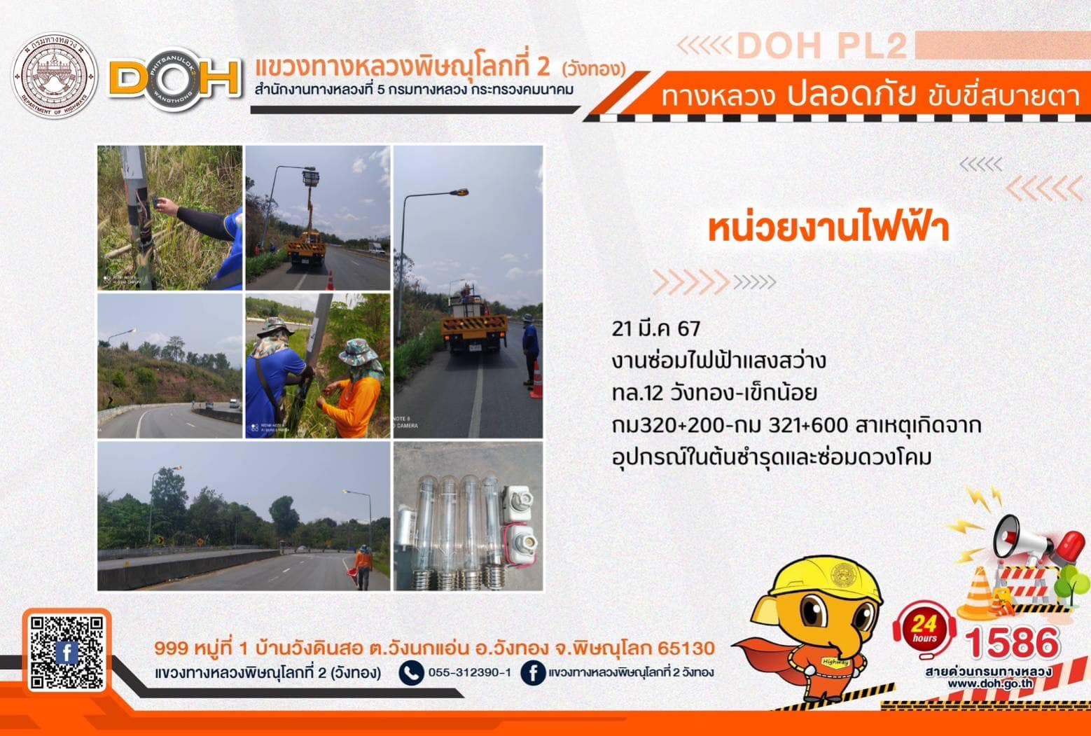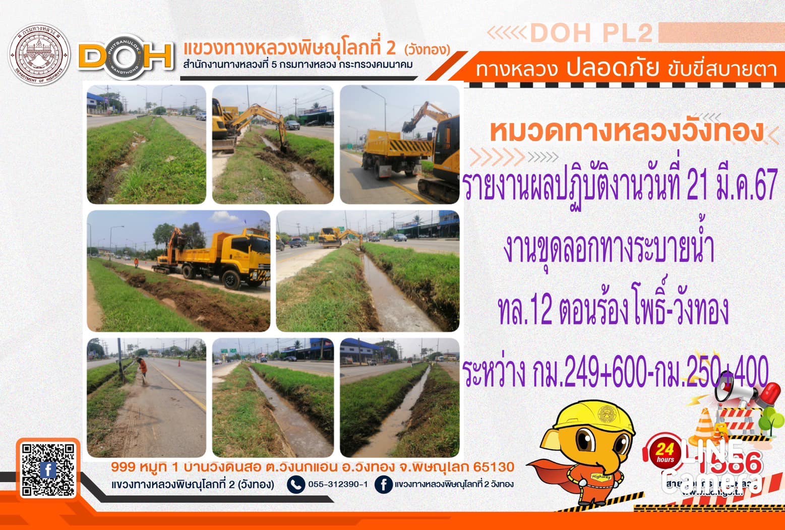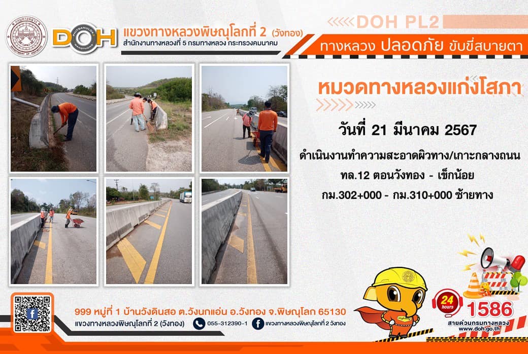 การปฏิบัติงานของ หมวดทางหลวง และ หน่วยงานในสังกัด เพื่ออำนวยความสะดวก และปลอดภัยให้กับประชาชนผู้ใช้เส้นทาง ประจำ วันพฤหัสบดีที่ 21 มีนาคม 2567