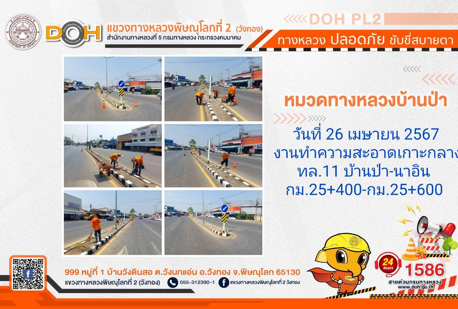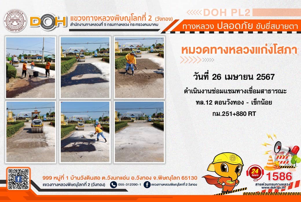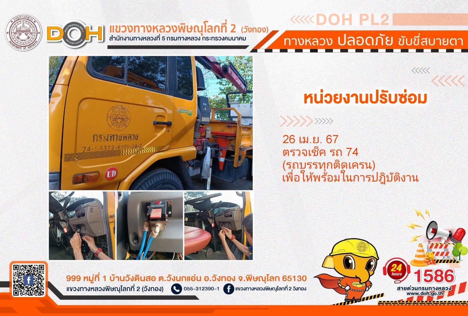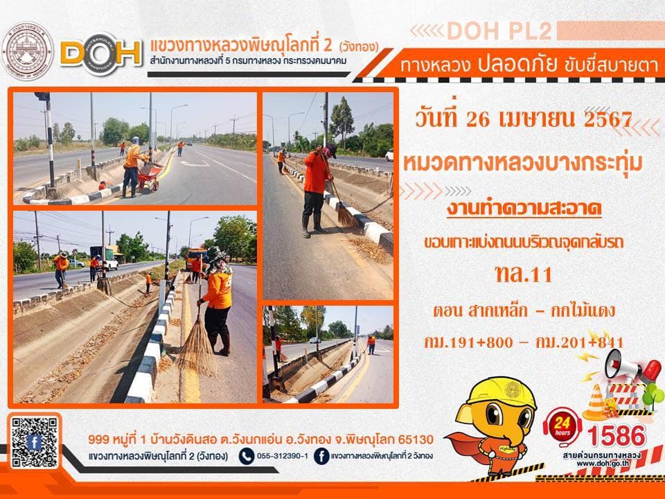 การปฏิบัติงานของ หมวดทางหลวง และ หน่วยงานในสังกัด เพื่ออำนวยความสะดวก และปลอดภัยให้กับประชาชนผู้ใช้เส้นทาง ประจำ วันศุกร์ที่ 26 เมษายน 2567