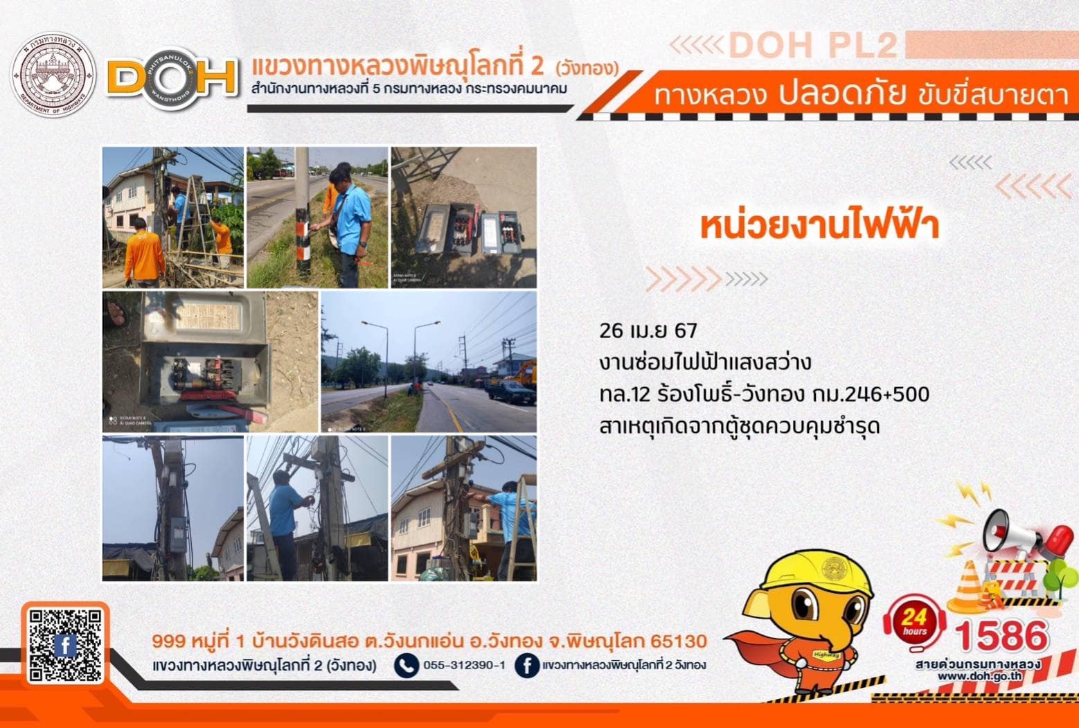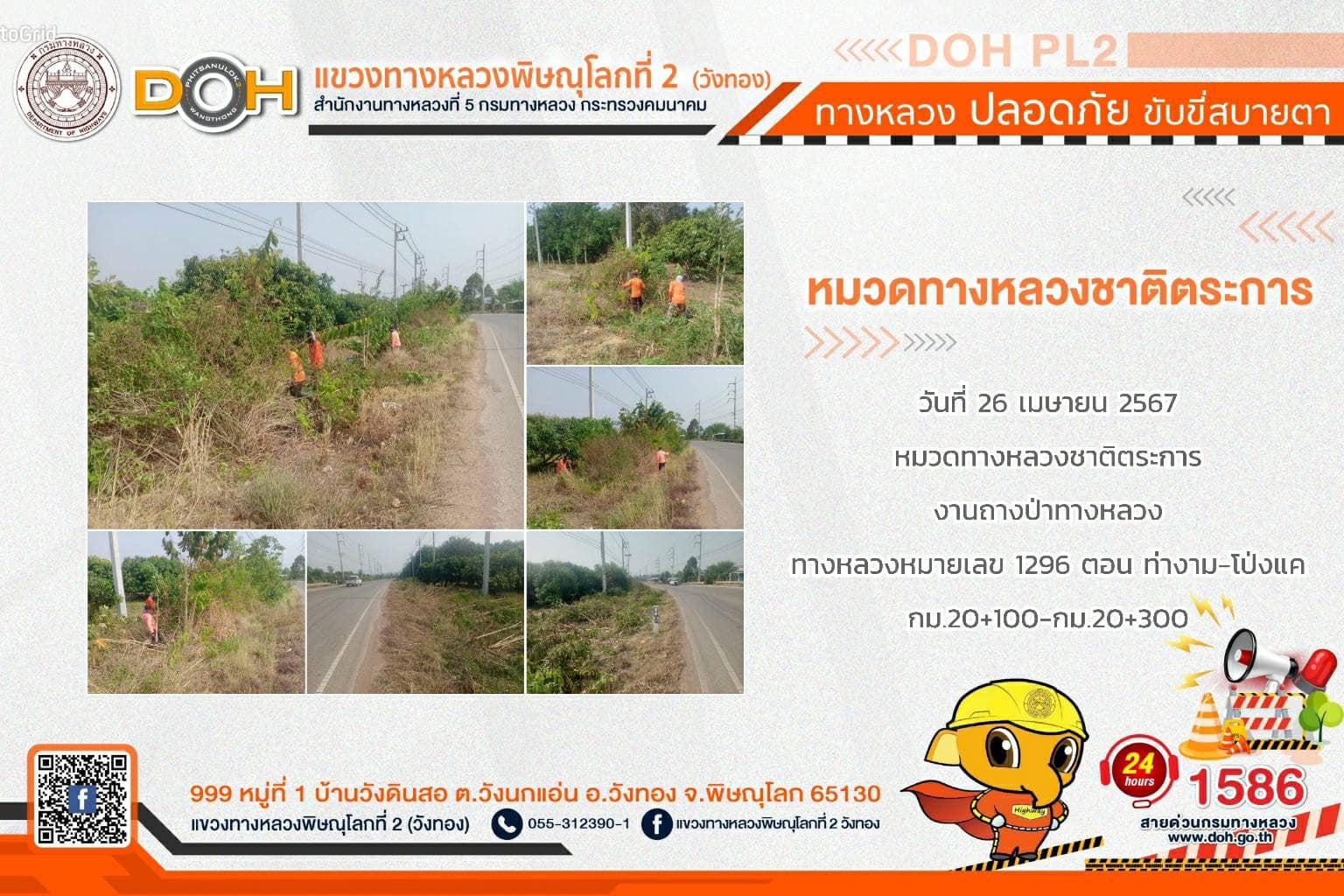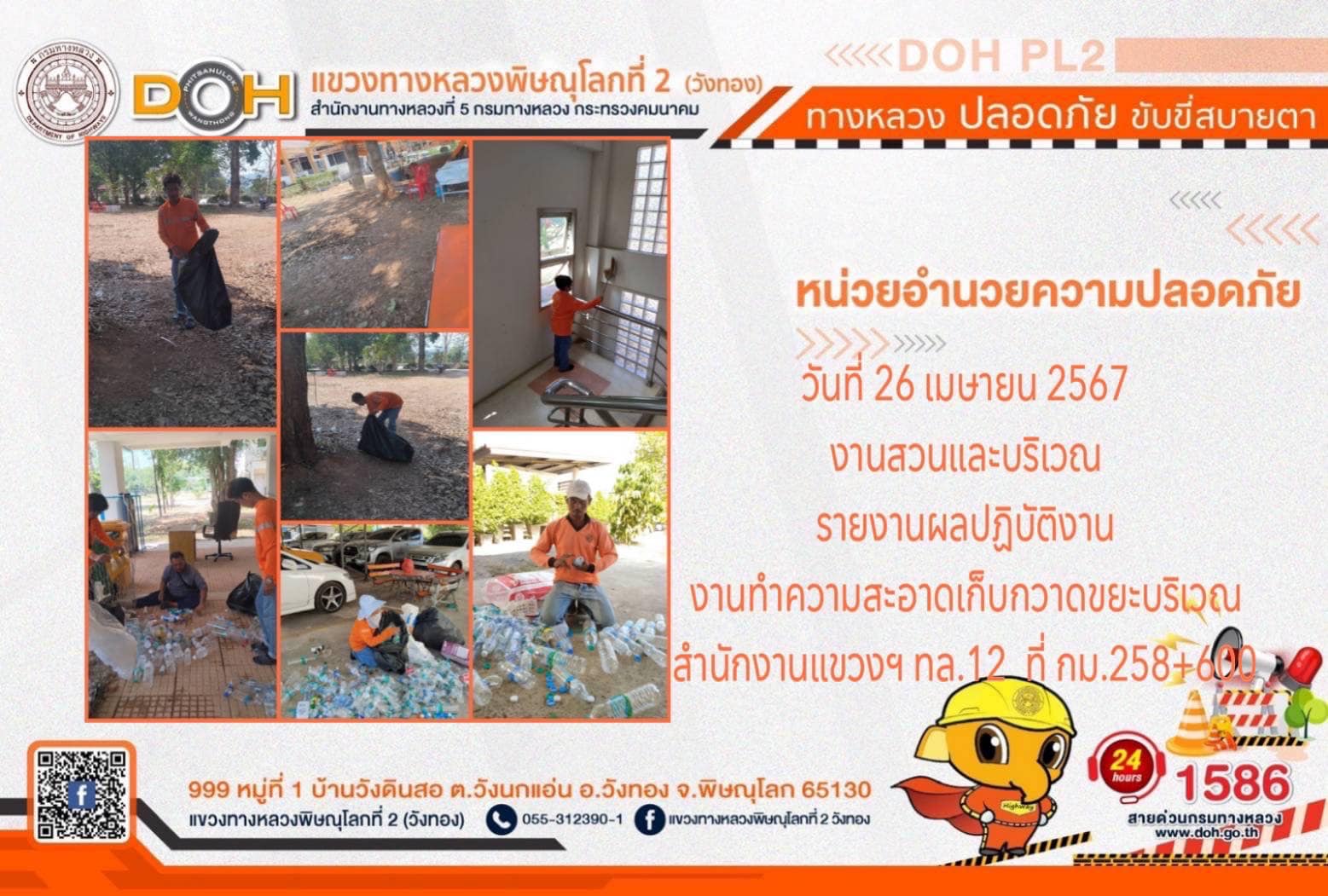 การปฏิบัติงานของ หมวดทางหลวง และ หน่วยงานในสังกัด เพื่ออำนวยความสะดวก และปลอดภัยให้กับประชาชนผู้ใช้เส้นทาง ประจำ วันศุกร์ที่ 26 เมษายน 2567