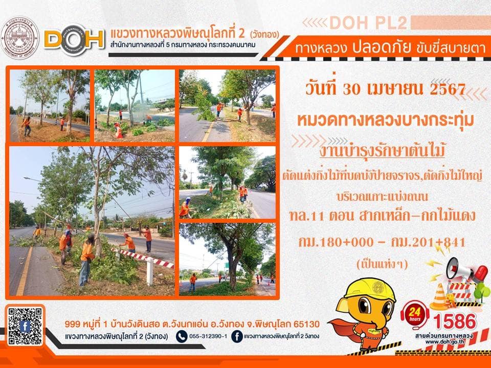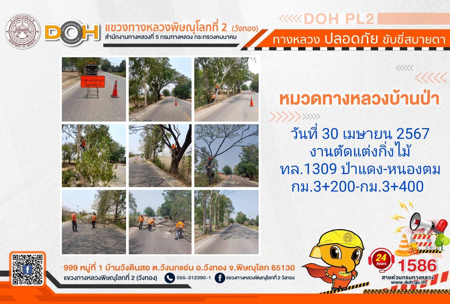 การปฏิบัติงานของ หมวดทางหลวง และ หน่วยงานในสังกัด เพื่ออำนวยความสะดวก และปลอดภัยให้กับประชาชนผู้ใช้เส้นทาง ประจำ วันอังคารที่ 30 เมษายน 2567