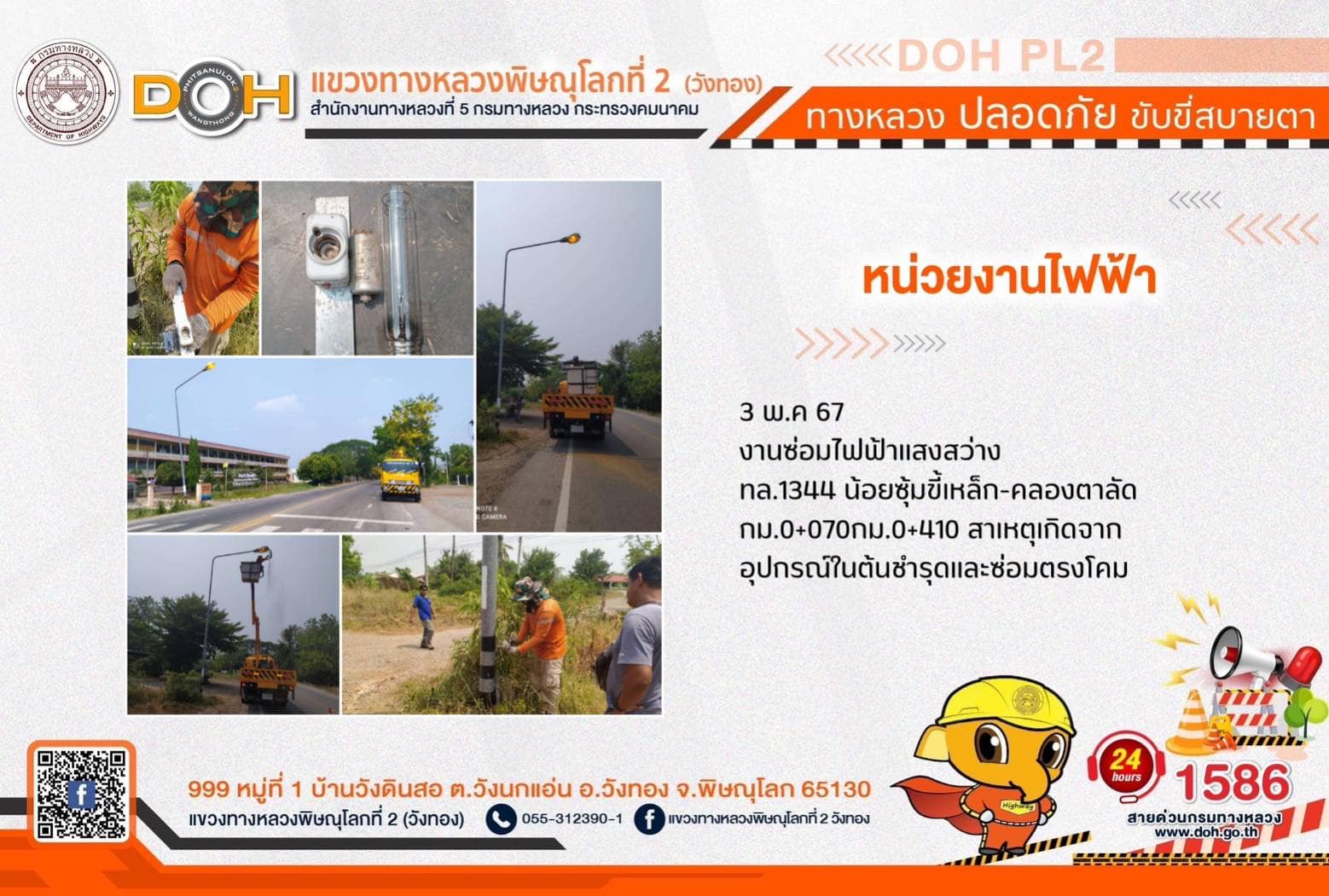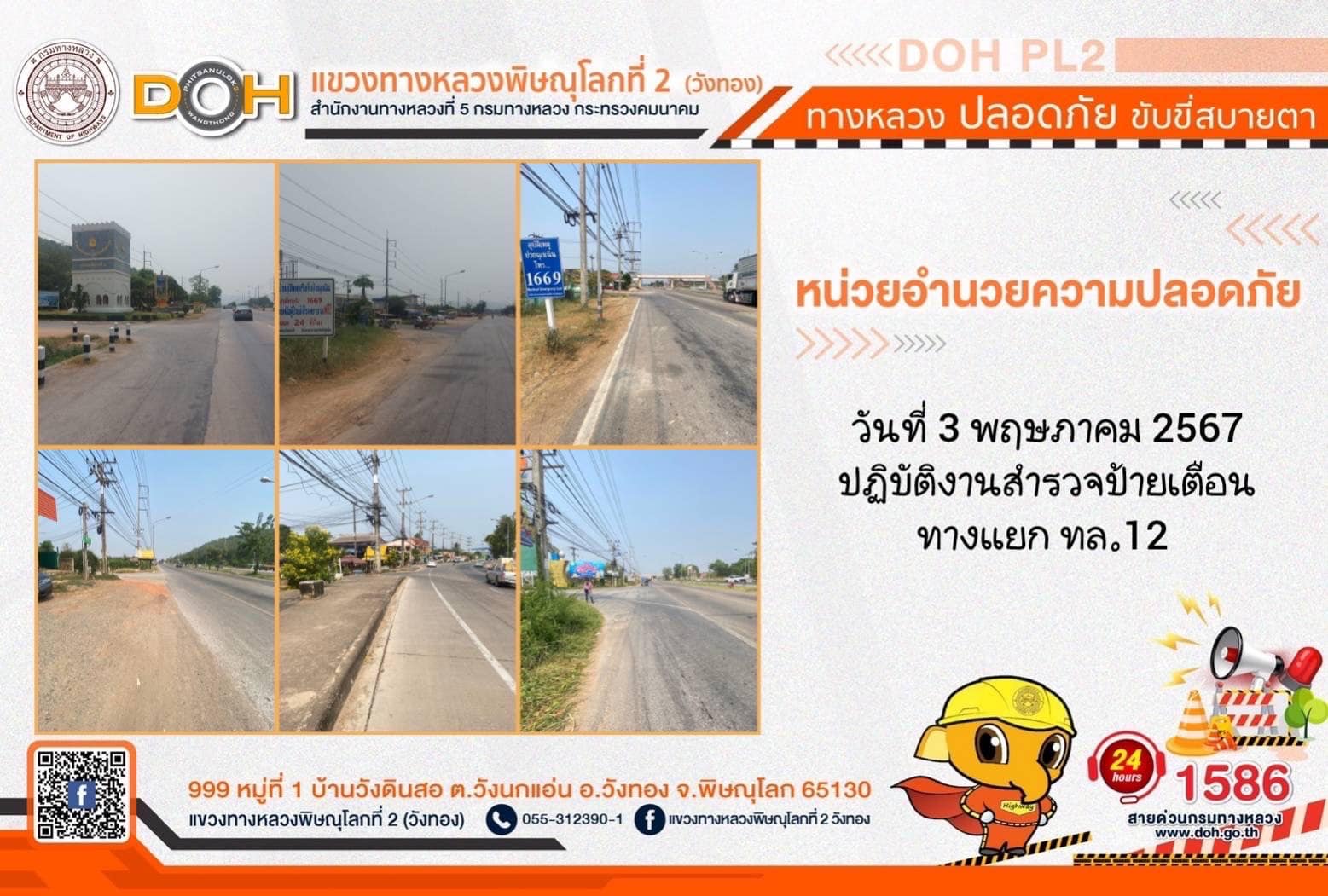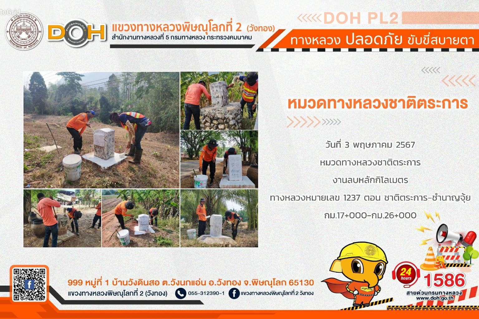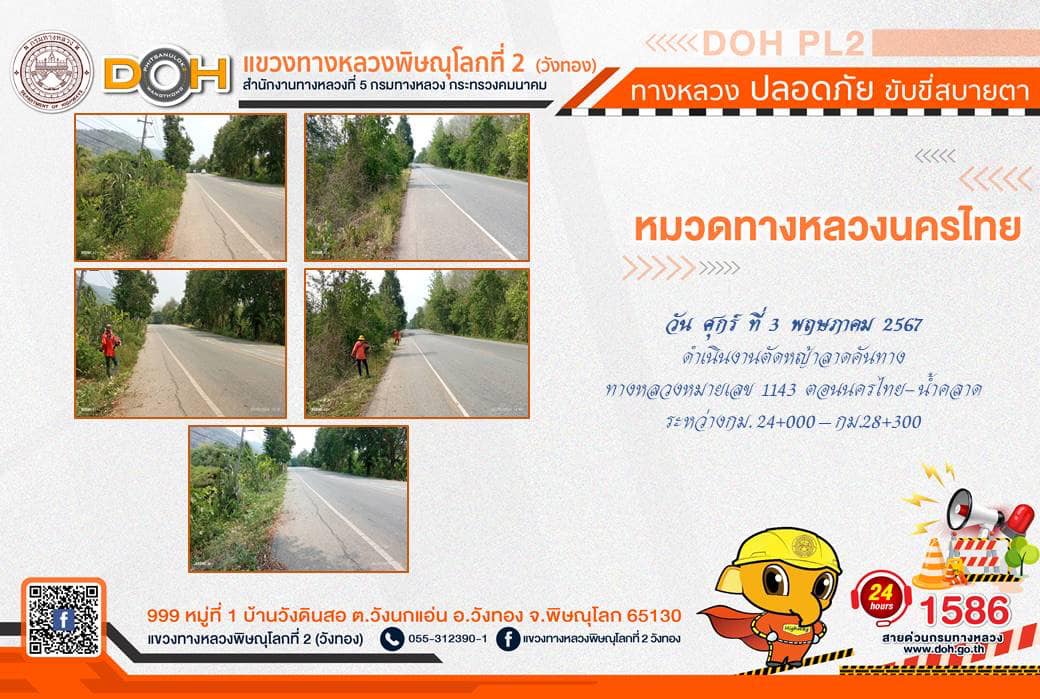 การปฏิบัติงานของ หมวดทางหลวง และ หน่วยงานในสังกัด เพื่ออำนวยความสะดวก และปลอดภัยให้กับประชาชนผู้ใช้เส้นทาง ประจำ วันศุกร์ที่ 3 พฤษภาคม 2567