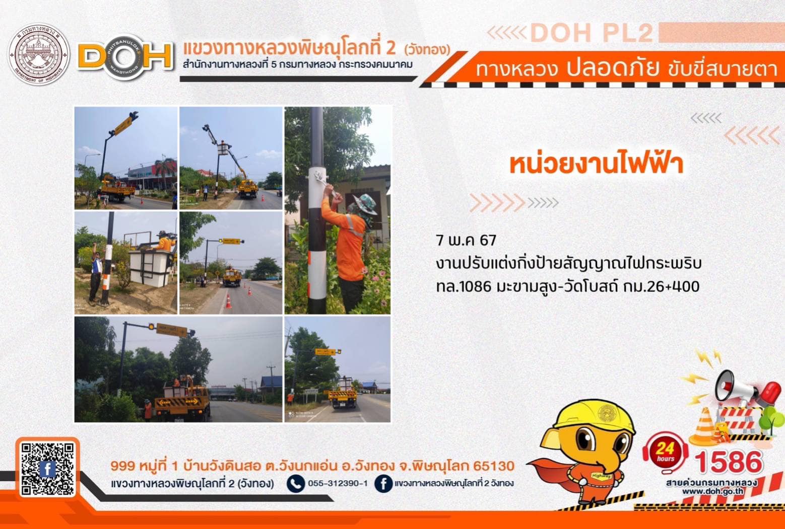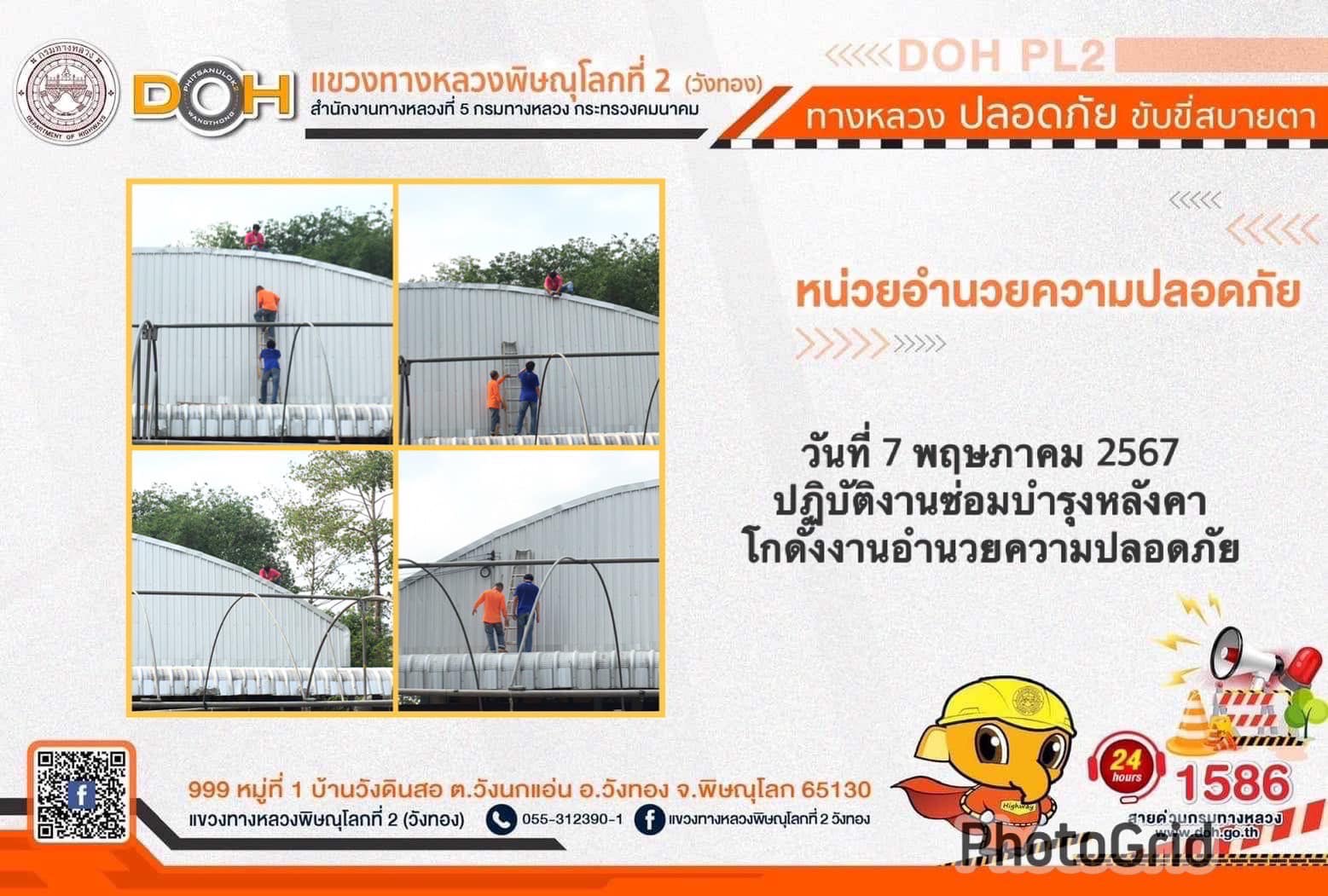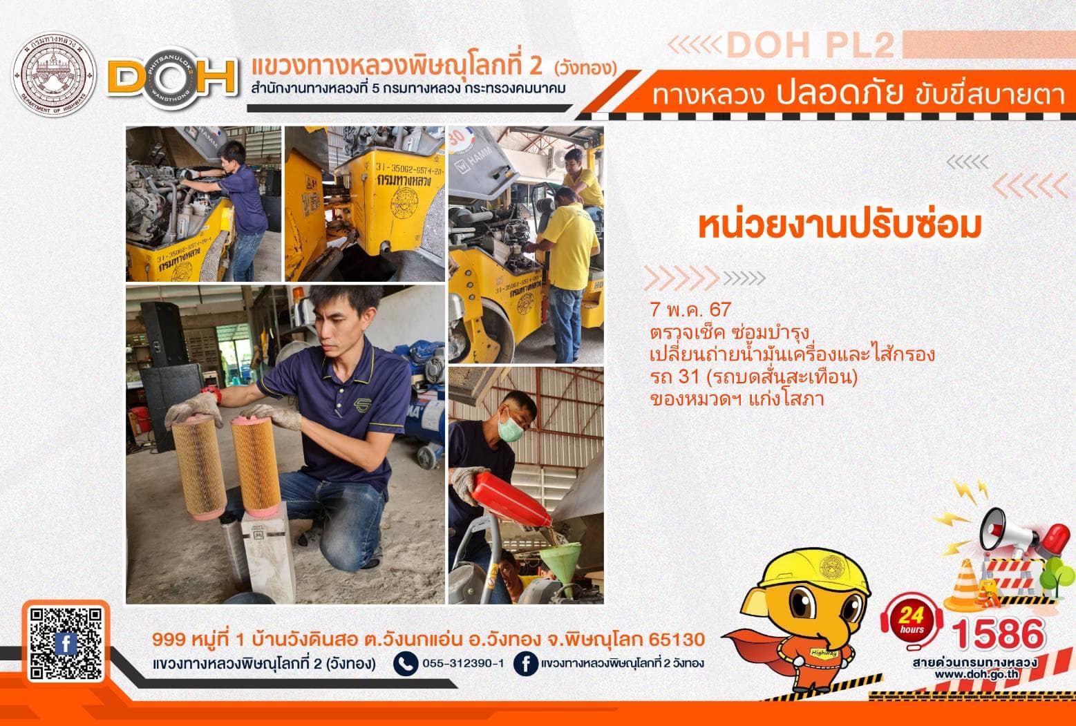การปฏิบัติงานของ หมวดทางหลวง และ หน่วยงานในสังกัด เพื่ออำนวยความสะดวก และปลอดภัยให้กับประชาชนผู้ใช้เส้นทาง ประจำ วันอังคารที่ 7 พฤษภาคม 2567