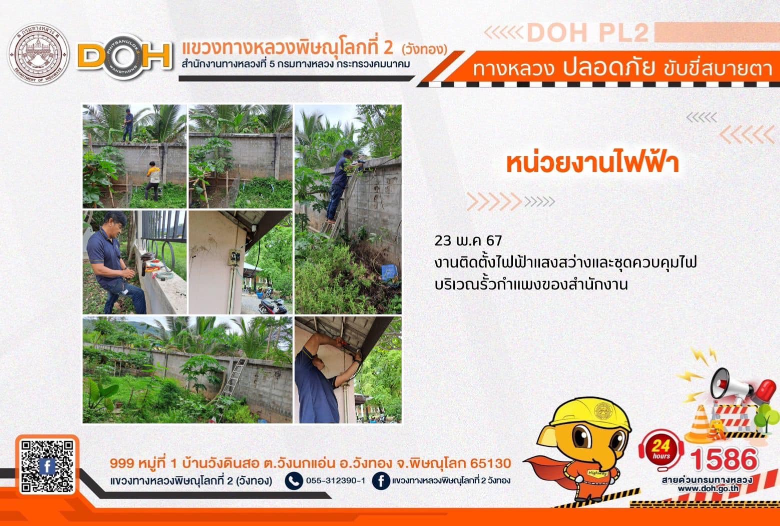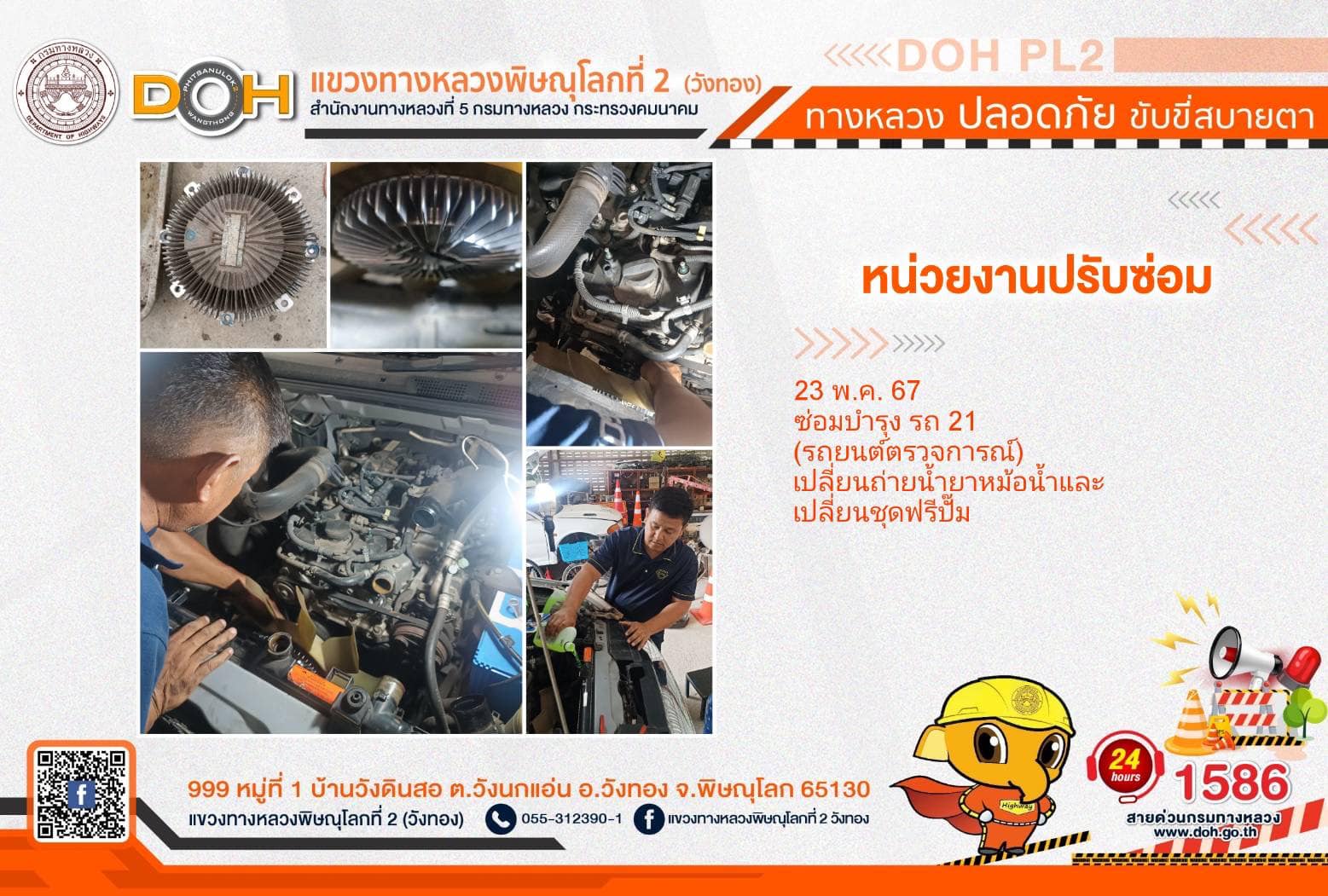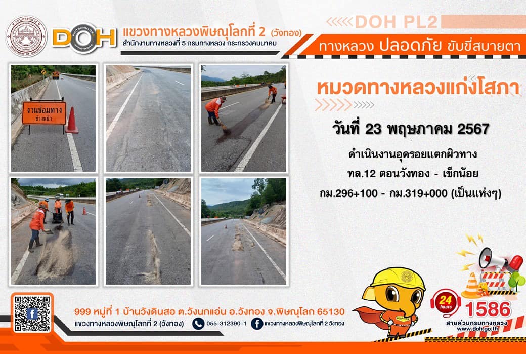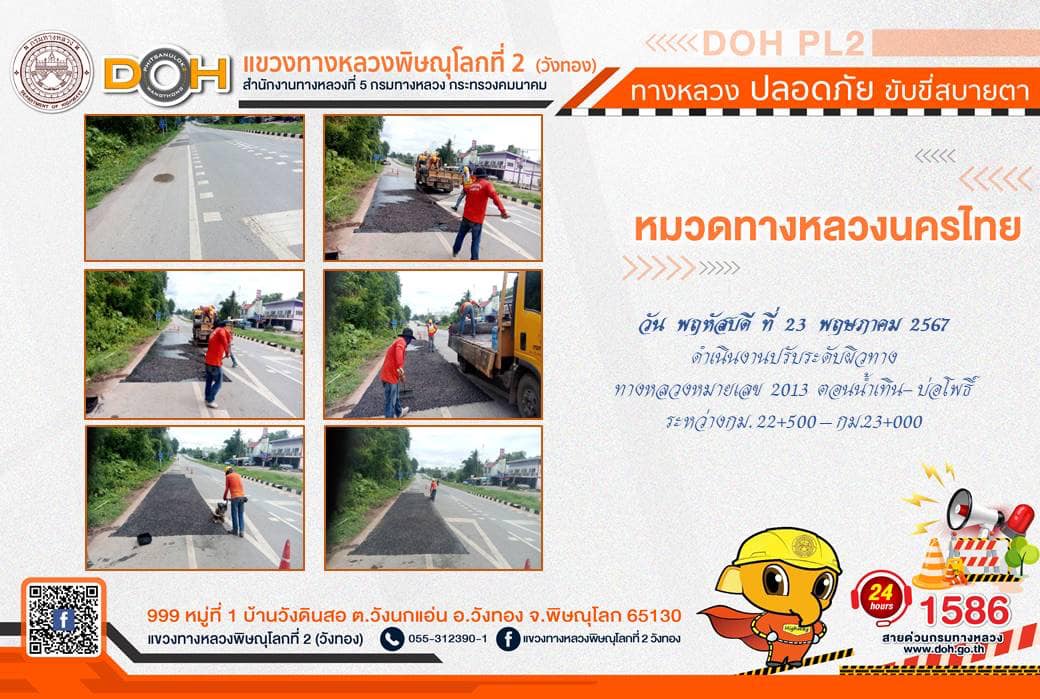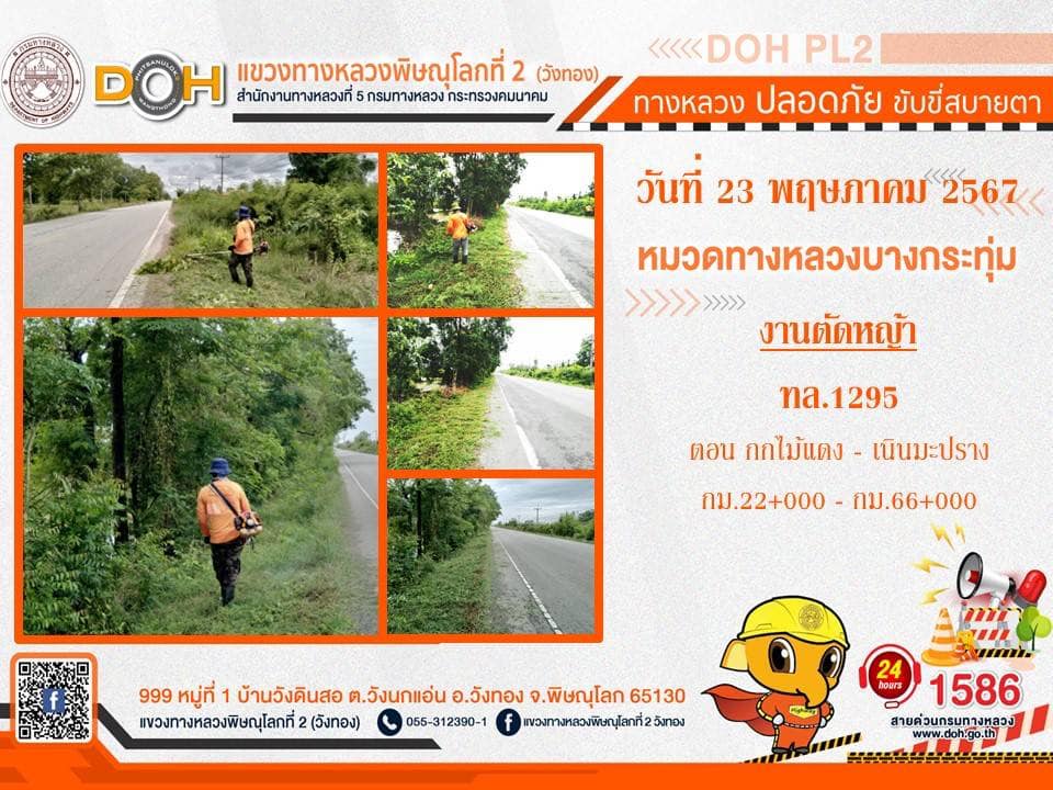 การปฏิบัติงานของ หมวดทางหลวง และ หน่วยงานในสังกัด เพื่ออำนวยความสะดวก และปลอดภัยให้กับประชาชนผู้ใช้เส้นทาง ประจำ วันพฤหัสบดีที่ 23 พฤษภาคม 2567
