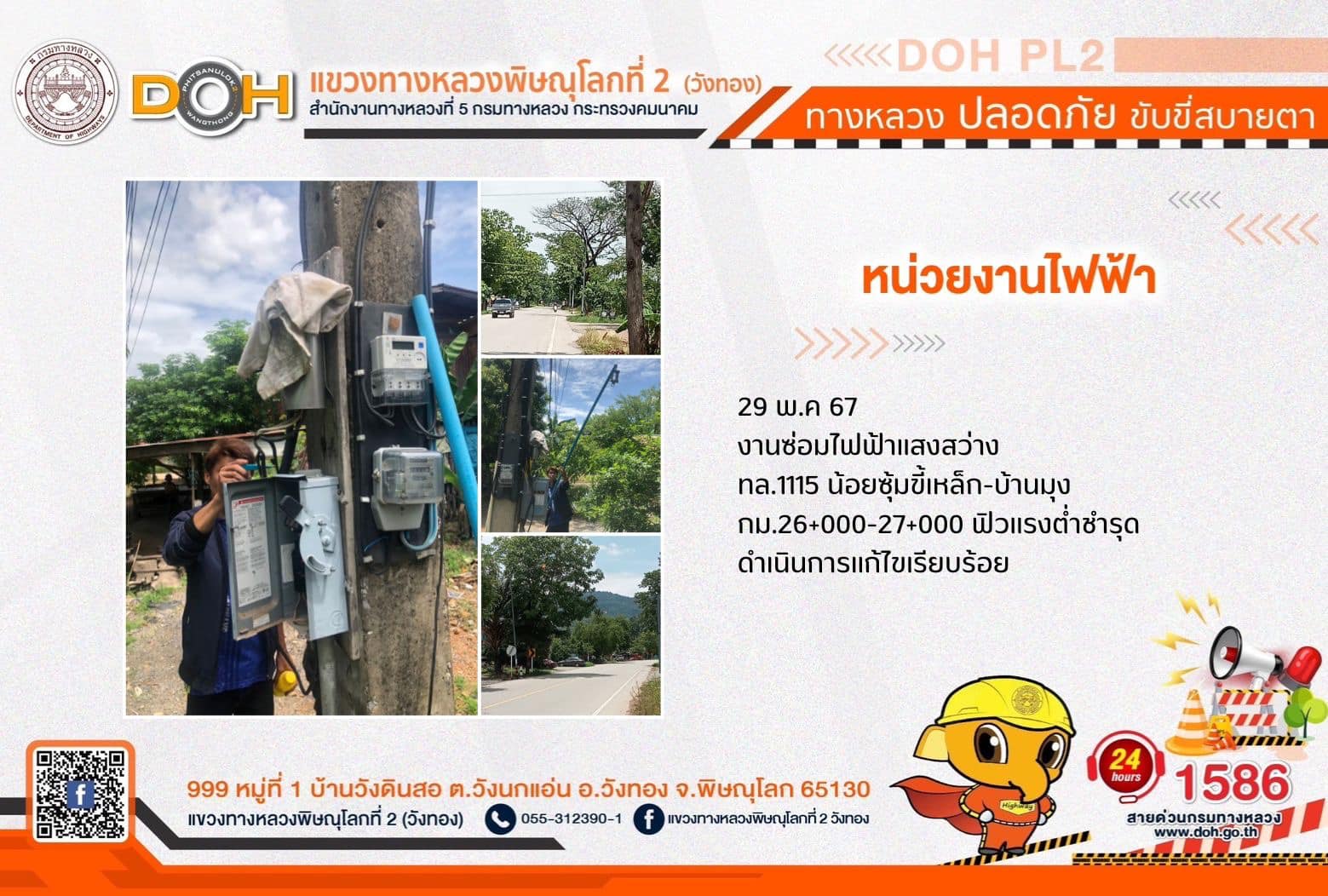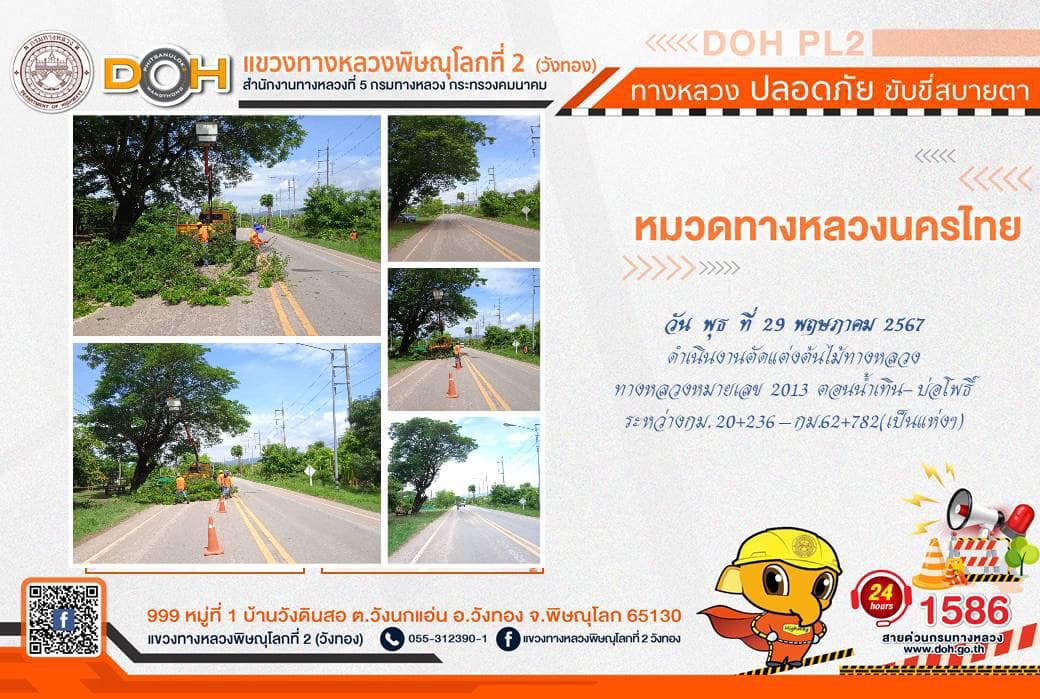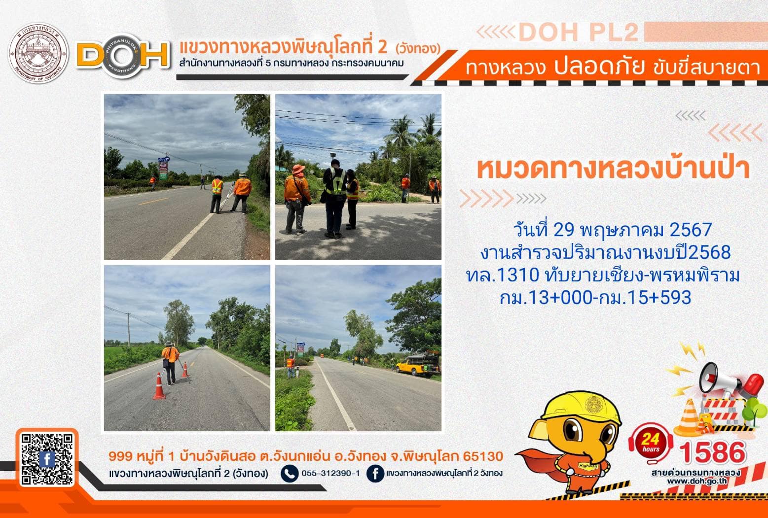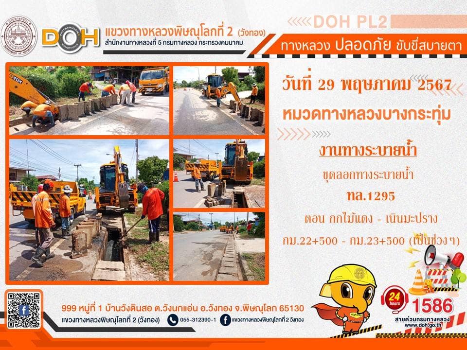 การปฏิบัติงานของ หมวดทางหลวง และ หน่วยงานในสังกัด เพื่ออำนวยความสะดวก และปลอดภัยให้กับประชาชนผู้ใช้เส้นทาง ประจำ วันพุธที่ 29 พฤษภาคม 2567