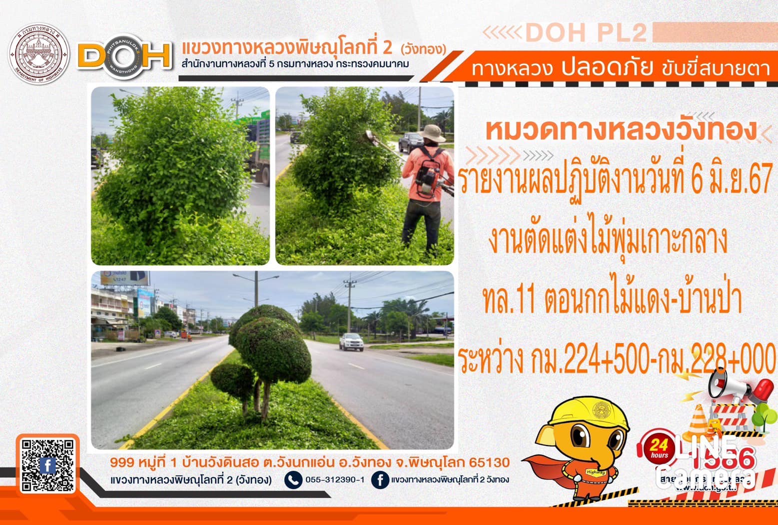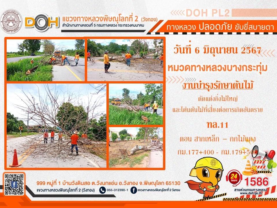 การปฏิบัติงานของ หมวดทางหลวง และ หน่วยงานในสังกัด เพื่ออำนวยความสะดวก และปลอดภัยให้กับประชาชนผู้ใช้เส้นทาง ประจำ วันพฤหัสบดีที่ 6 มิถุนายน 2567