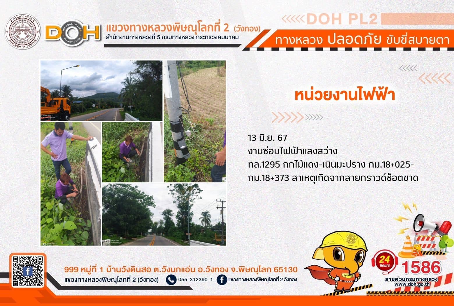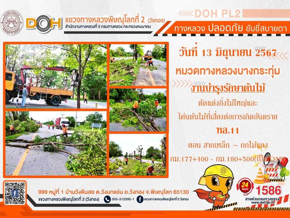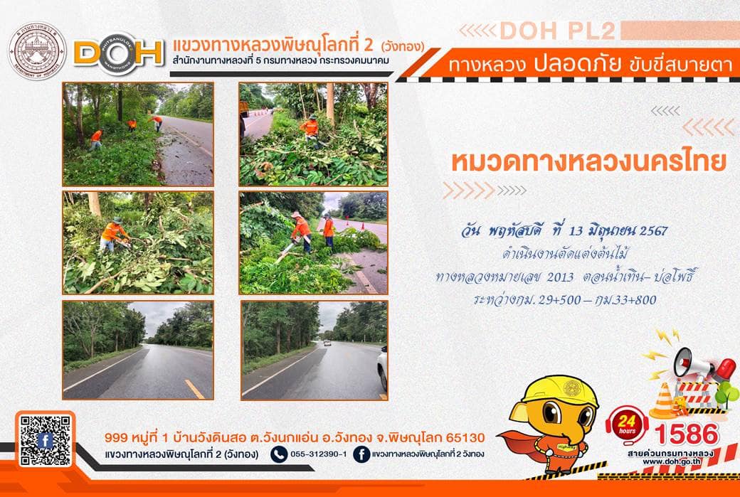 การปฏิบัติงานของ หมวดทางหลวง และ หน่วยงานในสังกัด เพื่ออำนวยความสะดวก และปลอดภัยให้กับประชาชนผู้ใช้เส้นทาง ประจำ วันพฤหัสบดีที่ 13 มิถุนายน 2567