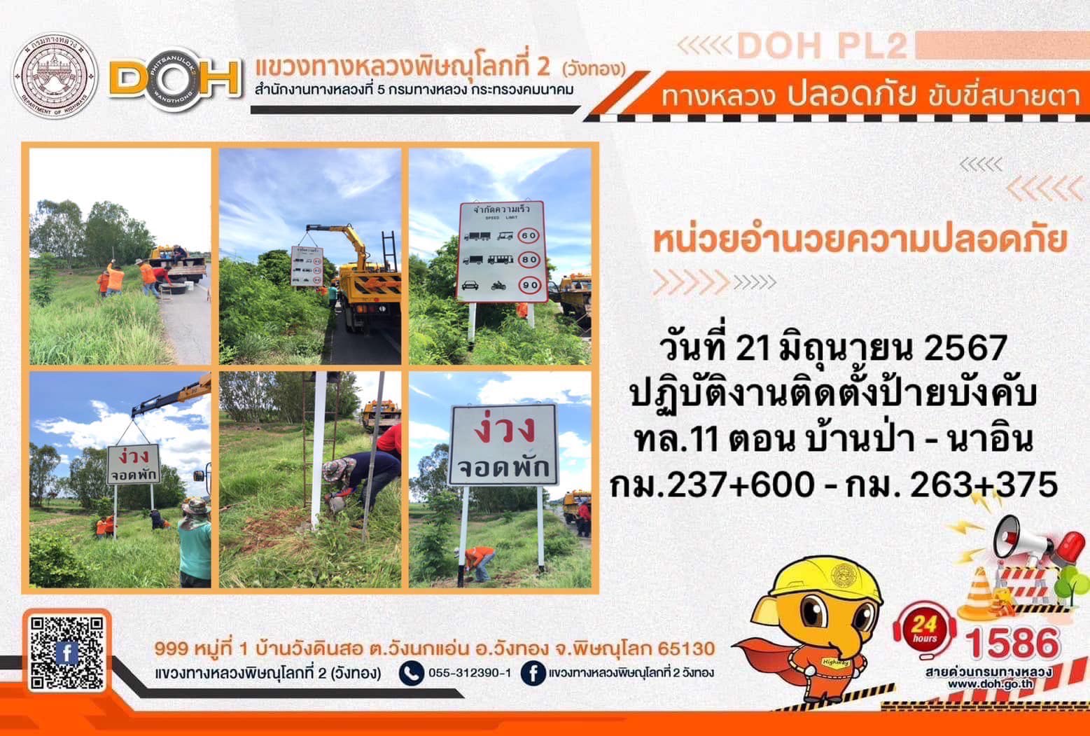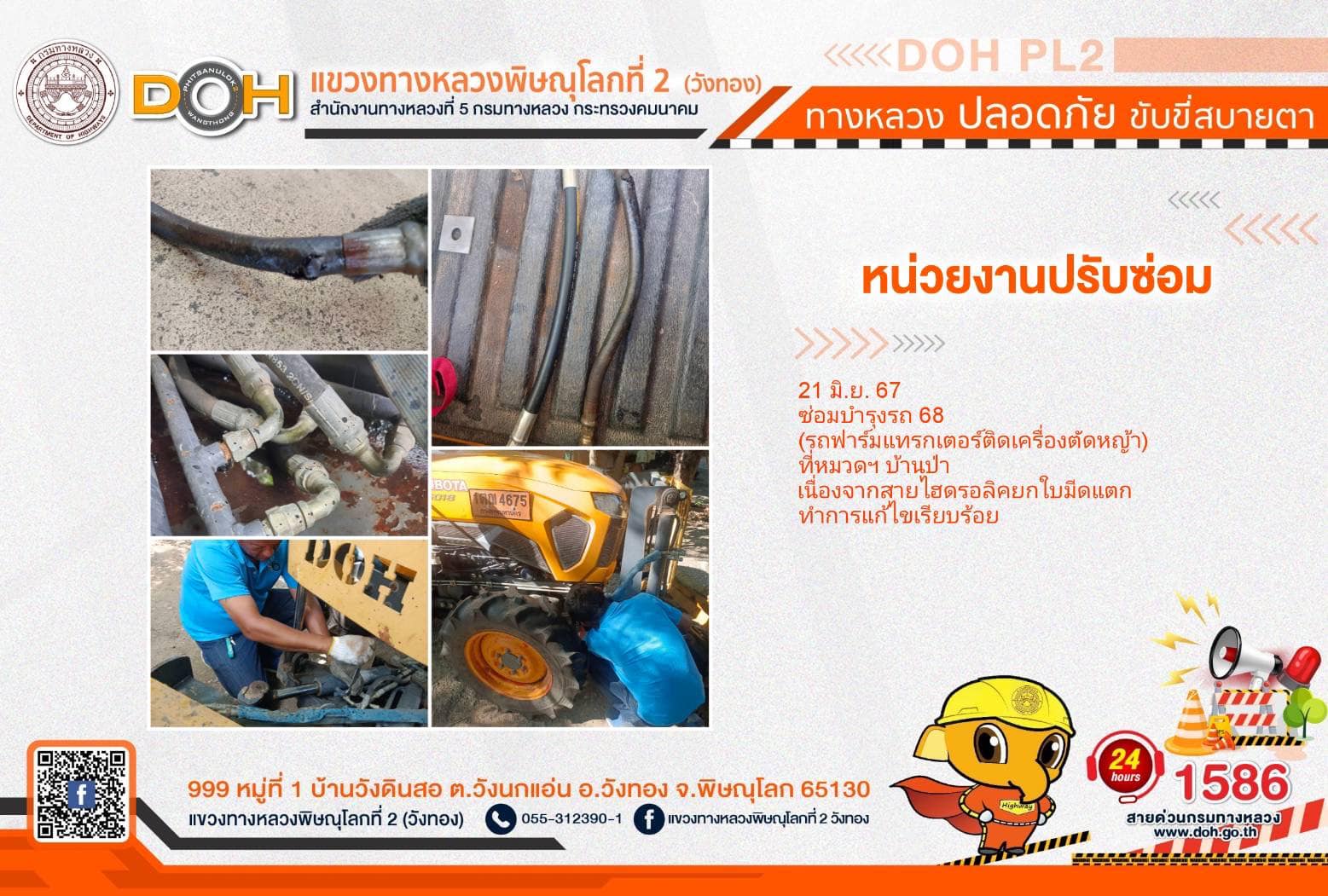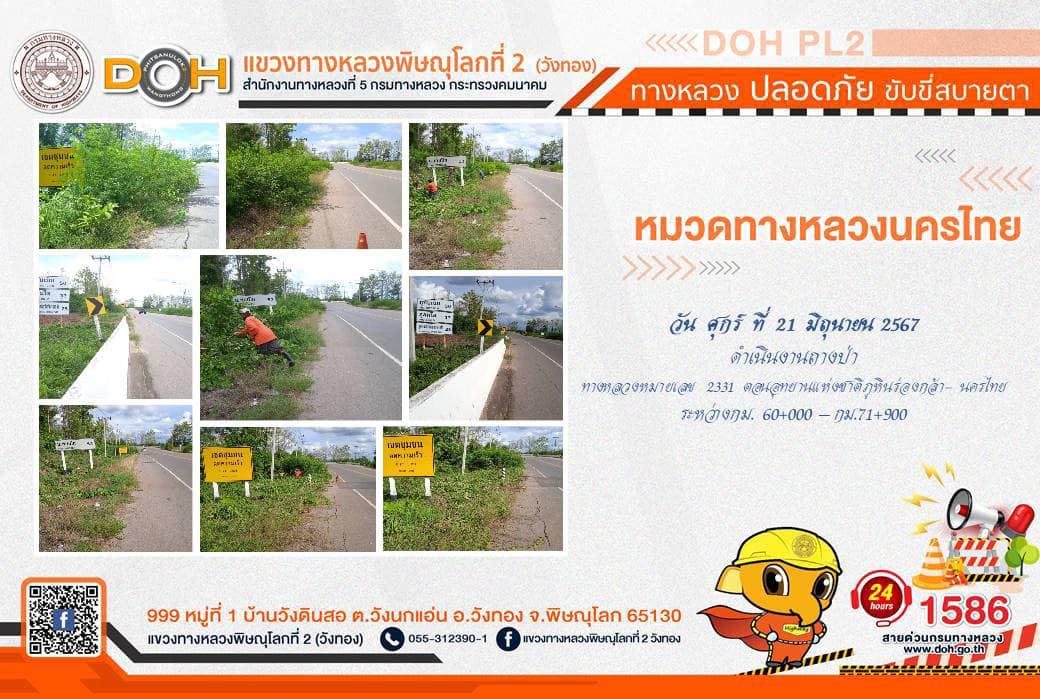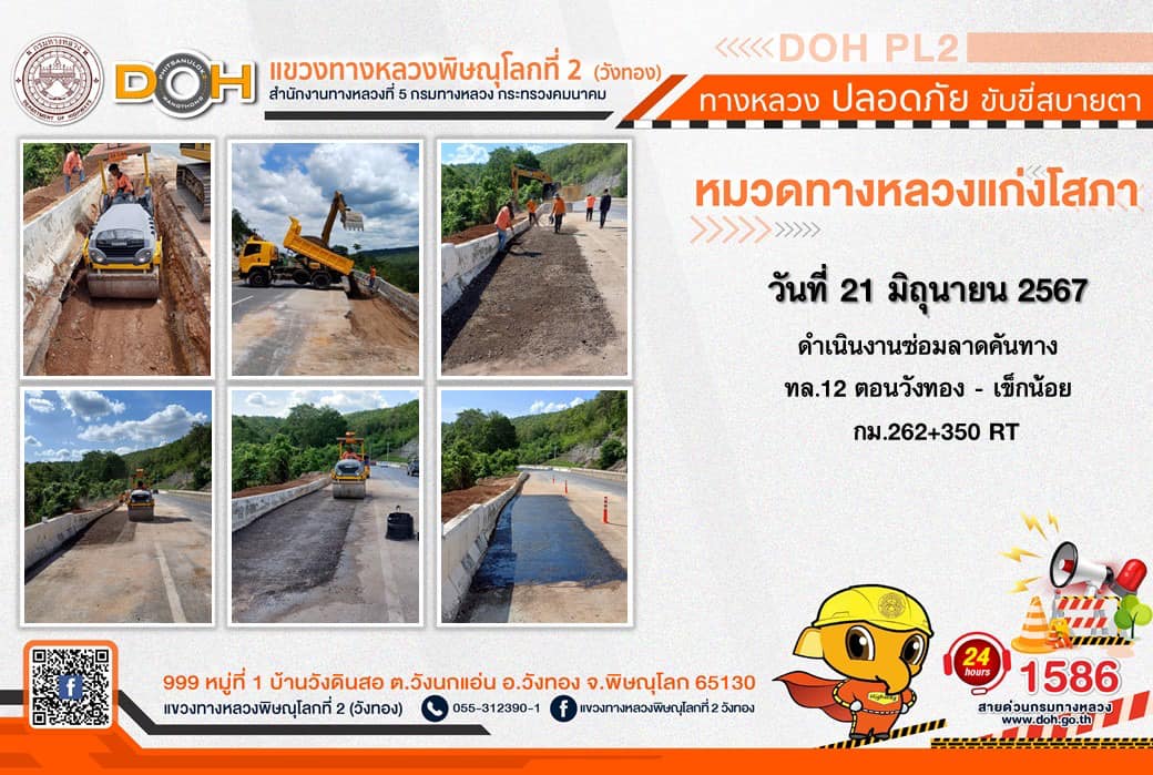 การปฏิบัติงานของ หมวดทางหลวง และ หน่วยงานในสังกัด เพื่ออำนวยความสะดวก และปลอดภัยให้กับประชาชนผู้ใช้เส้นทาง ประจำ วันศุกร์ที่ 21 มิถุนายน 2567