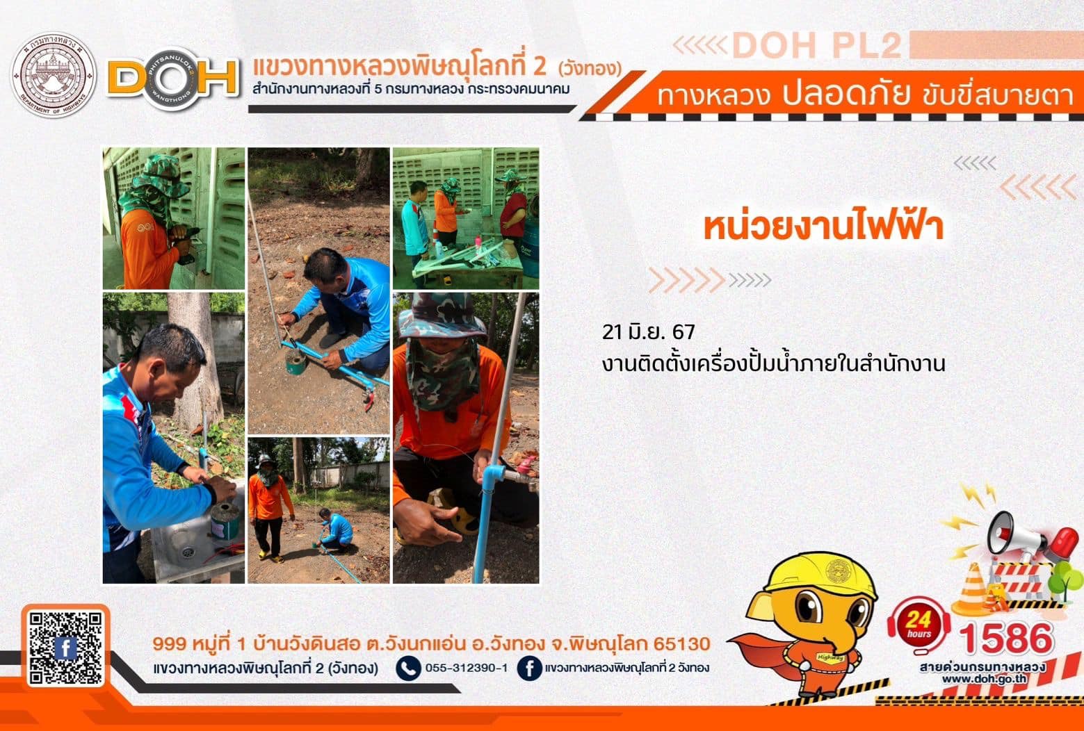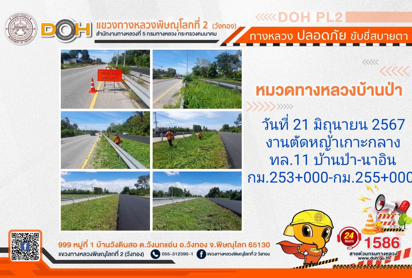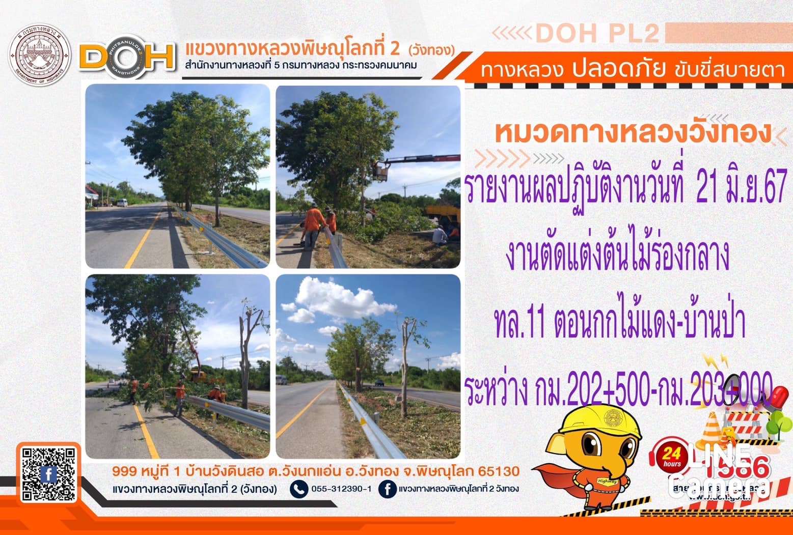 การปฏิบัติงานของ หมวดทางหลวง และ หน่วยงานในสังกัด เพื่ออำนวยความสะดวก และปลอดภัยให้กับประชาชนผู้ใช้เส้นทาง ประจำ วันศุกร์ที่ 21 มิถุนายน 2567