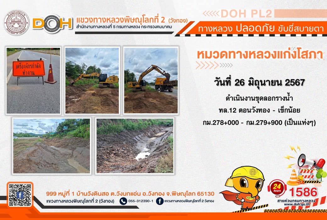 การปฏิบัติงานของ หมวดทางหลวง และ หน่วยงานในสังกัด เพื่ออำนวยความสะดวก และปลอดภัยให้กับประชาชนผู้ใช้เส้นทาง ประจำ วันพุธที่ 26 มิถุนายน 2567