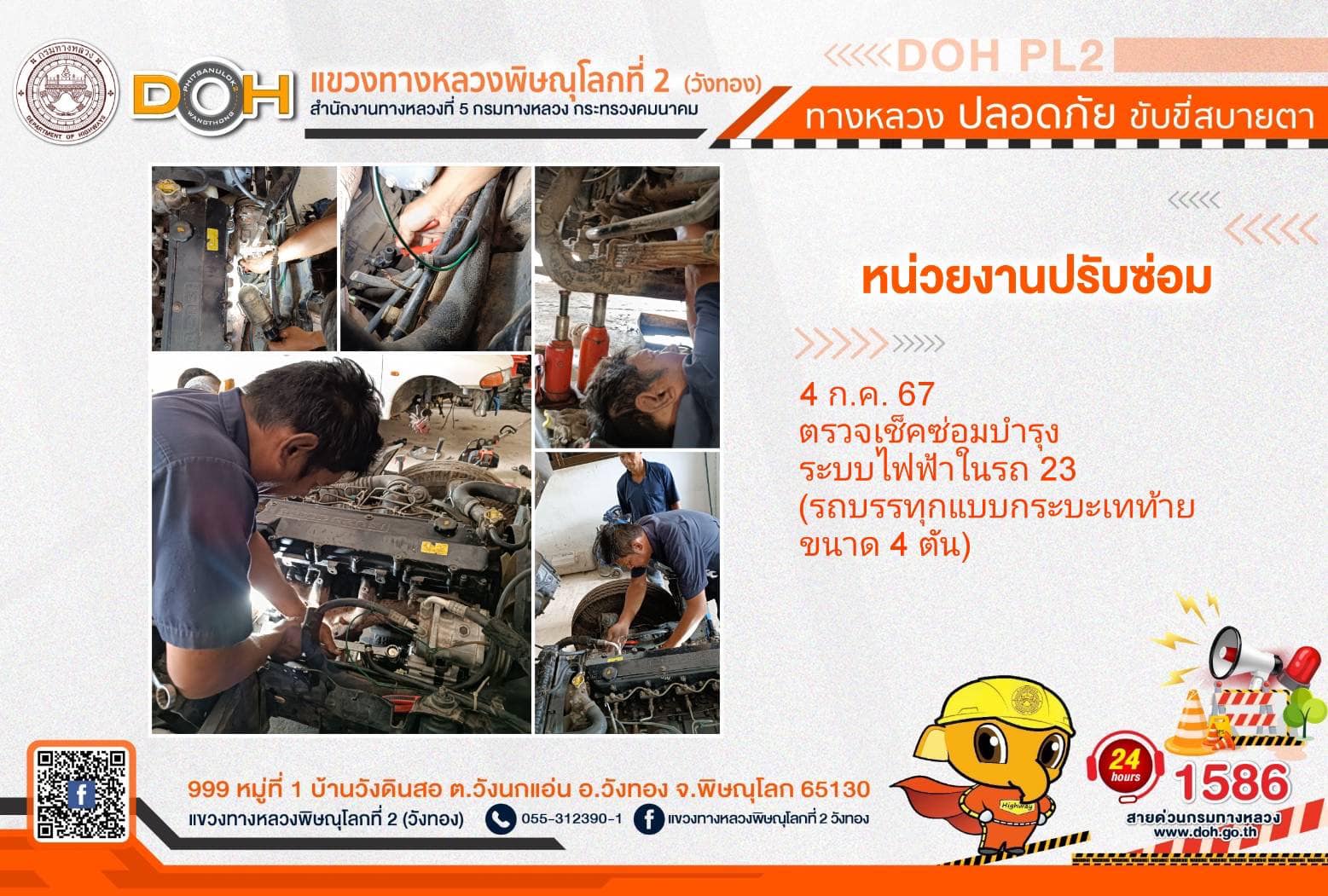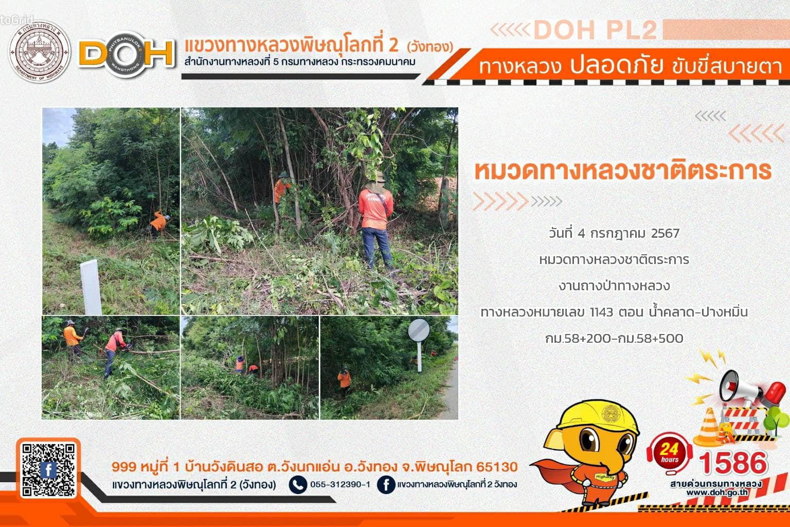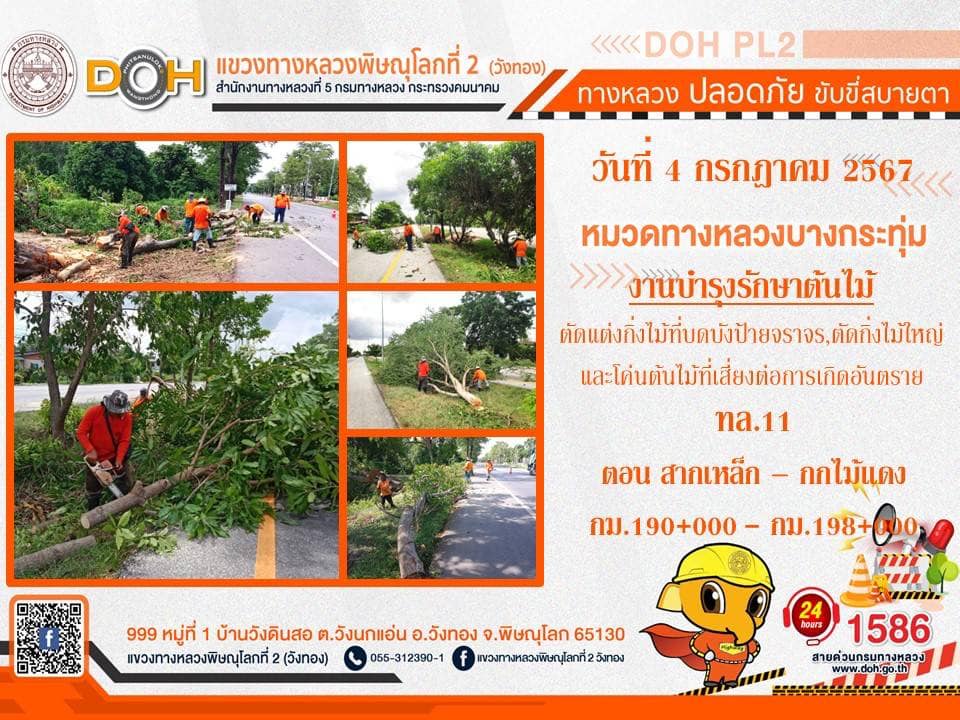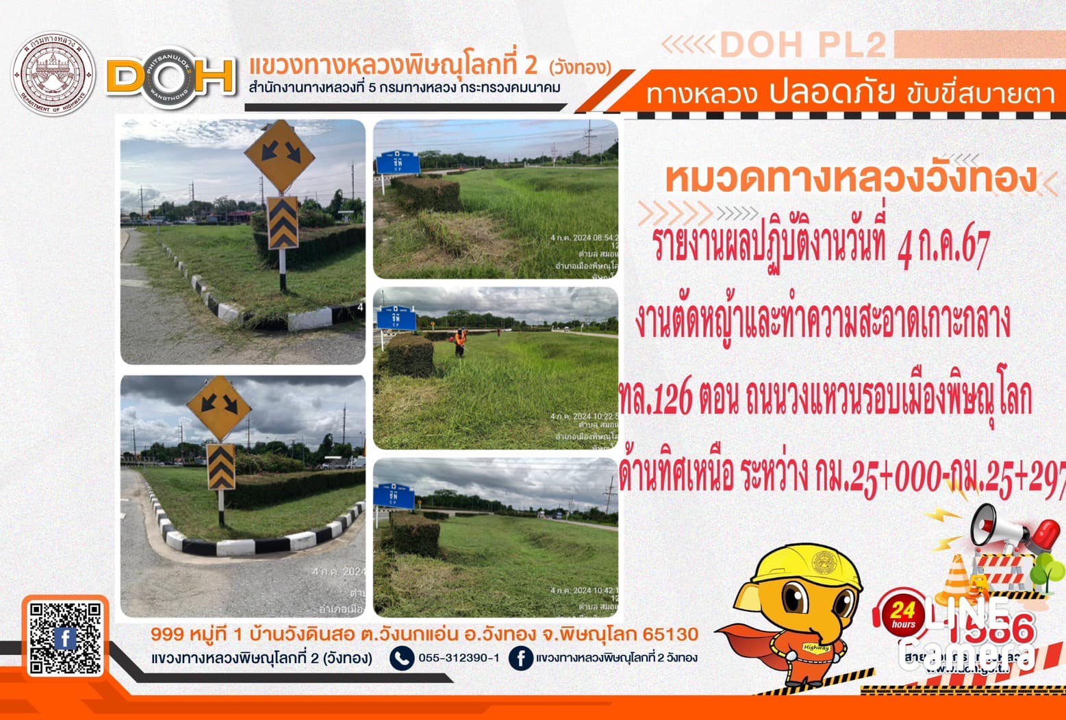 การปฏิบัติงานของ หมวดทางหลวง และ หน่วยงานในสังกัด เพื่ออำนวยความสะดวก และปลอดภัยให้กับประชาชนผู้ใช้เส้นทาง ประจำ วันพพฤหัสบดีที่ 4 กรกฎาคม 2567