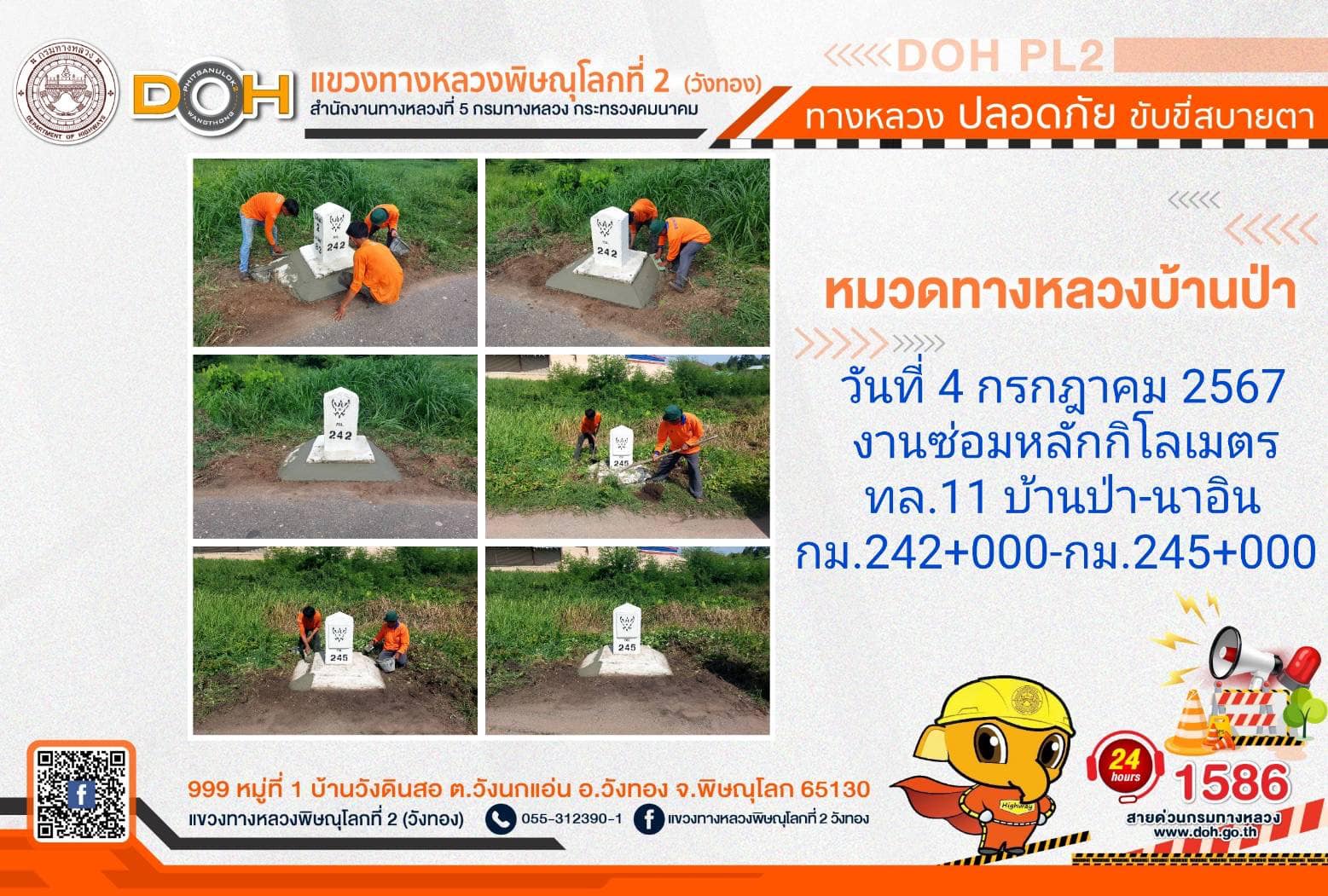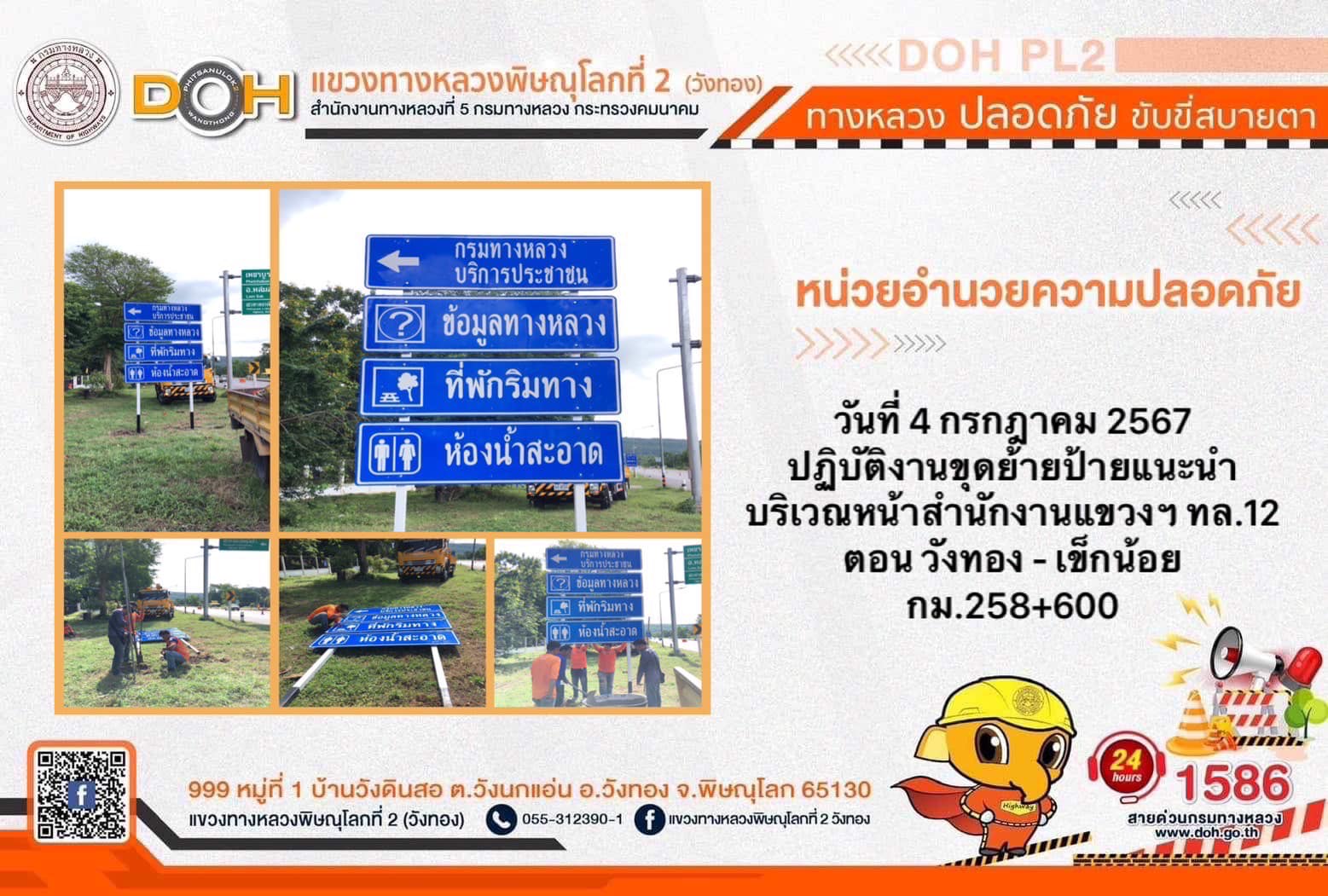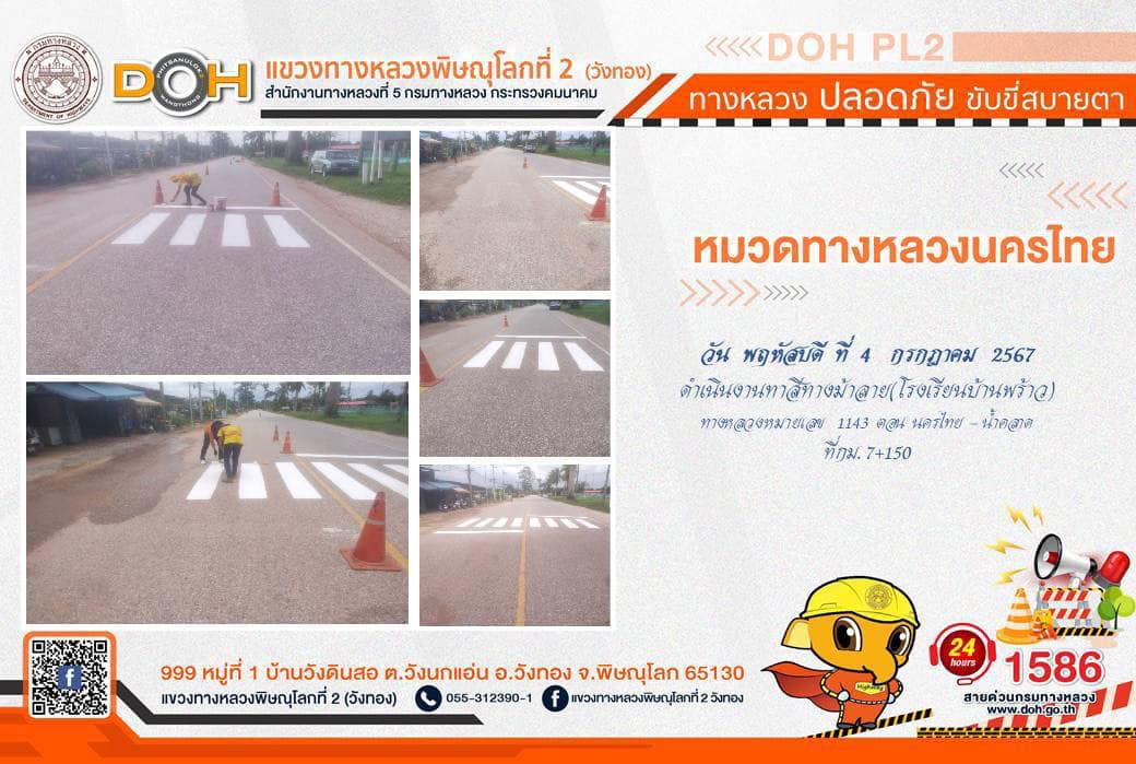 การปฏิบัติงานของ หมวดทางหลวง และ หน่วยงานในสังกัด เพื่ออำนวยความสะดวก และปลอดภัยให้กับประชาชนผู้ใช้เส้นทาง ประจำ วันพพฤหัสบดีที่ 4 กรกฎาคม 2567