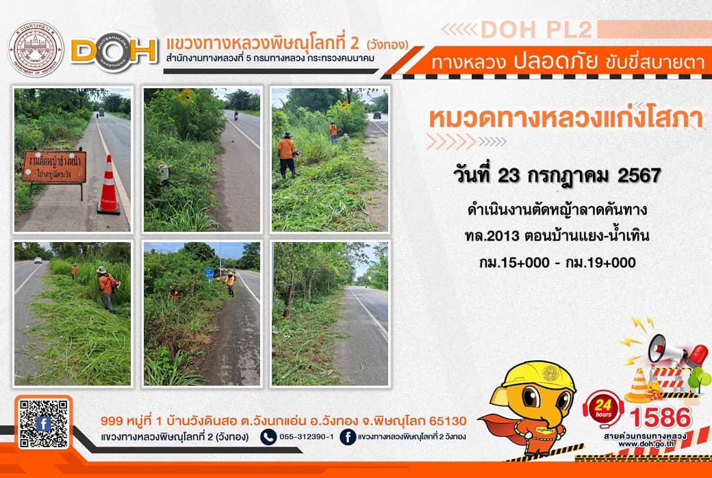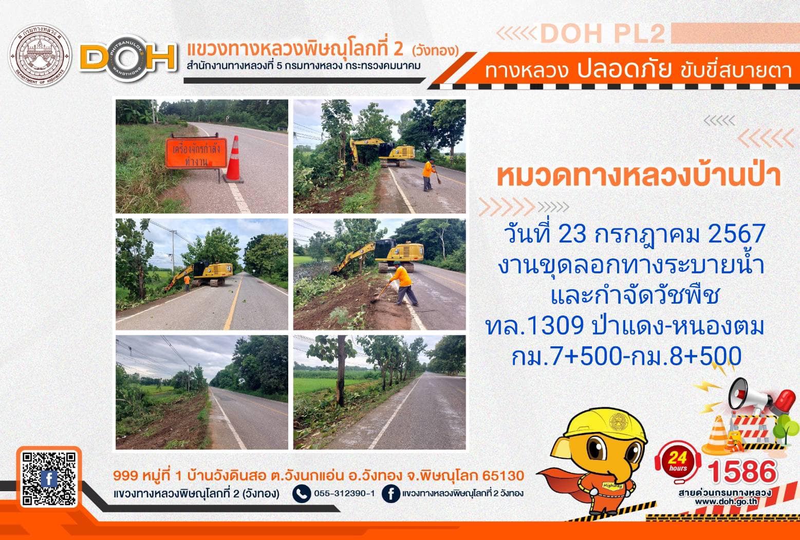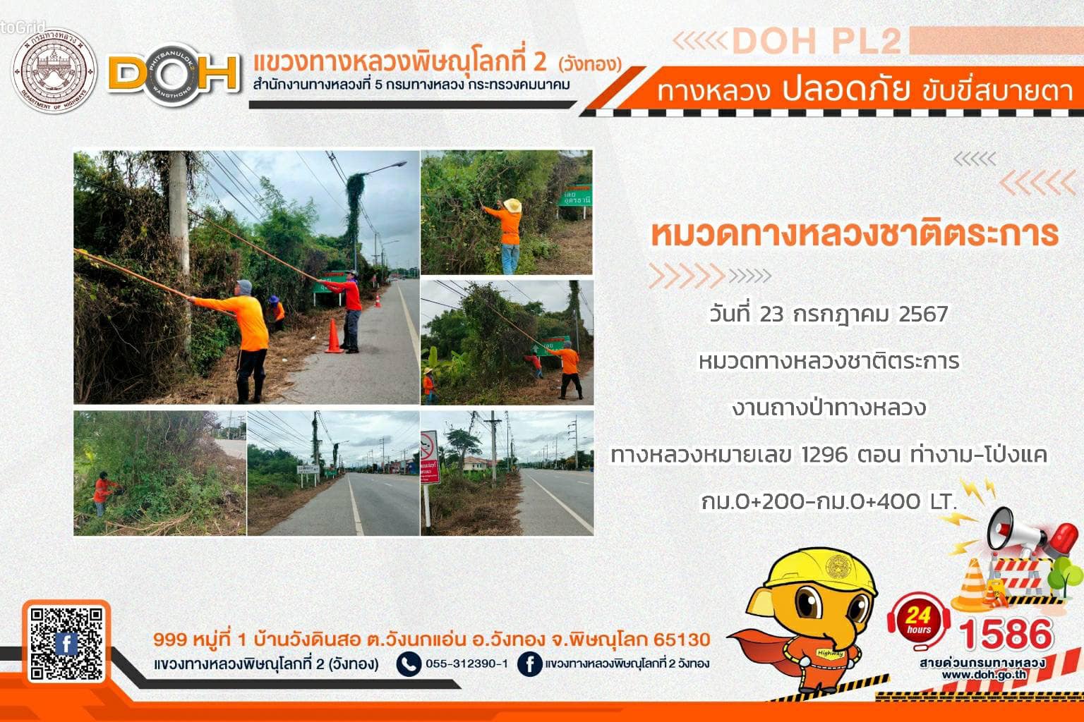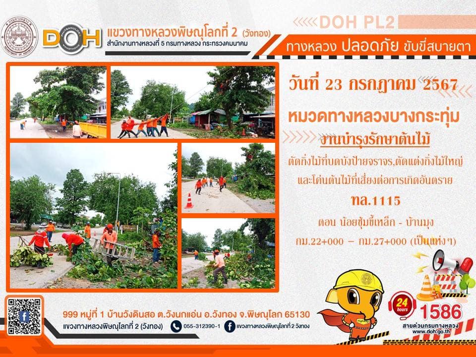 การปฏิบัติงานของ หมวดทางหลวง และ หน่วยงานในสังกัด เพื่ออำนวยความสะดวก และปลอดภัยให้กับประชาชนผู้ใช้เส้นทาง ประจำ วันอังคารที่ 23 กรกฎาคม 2567
