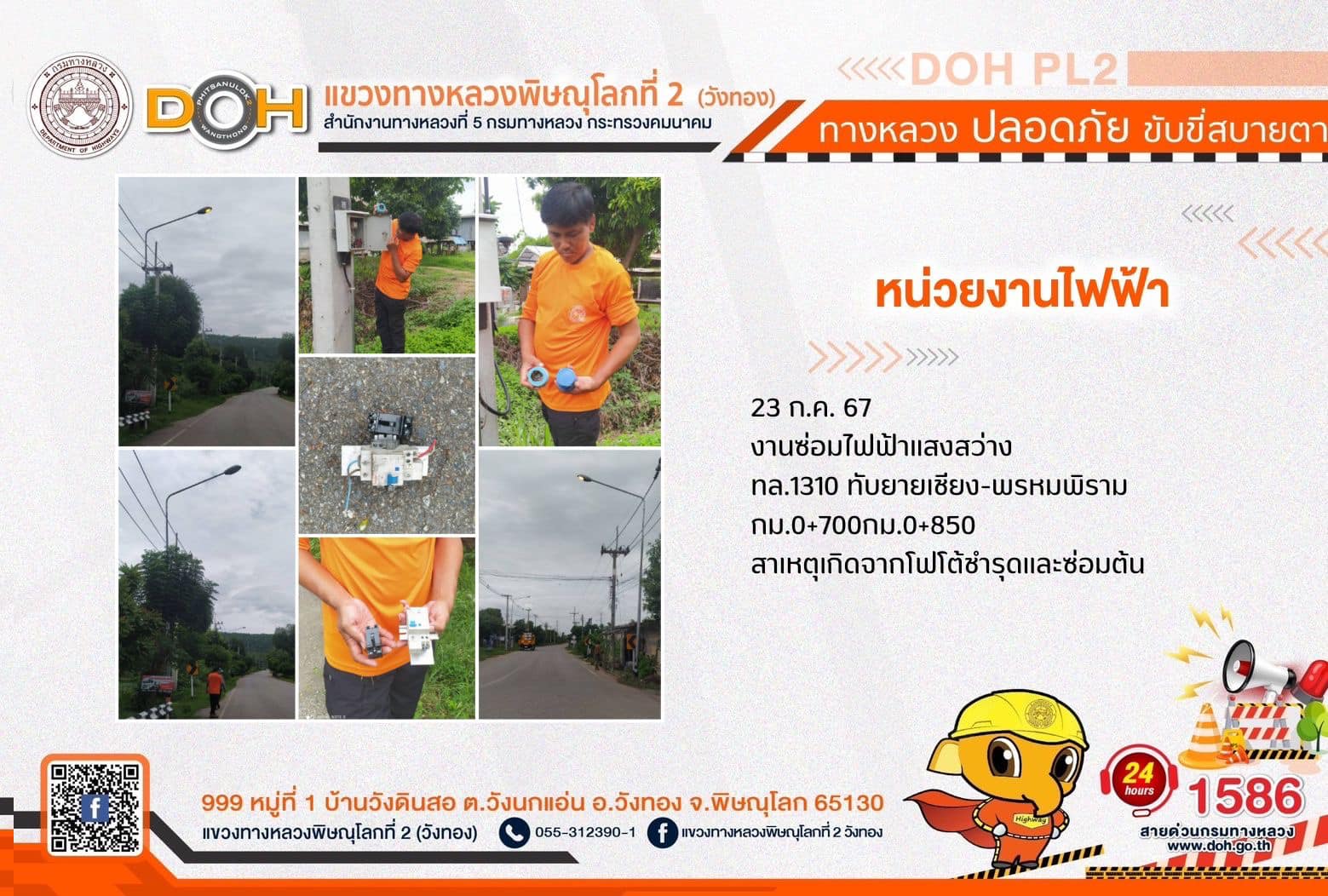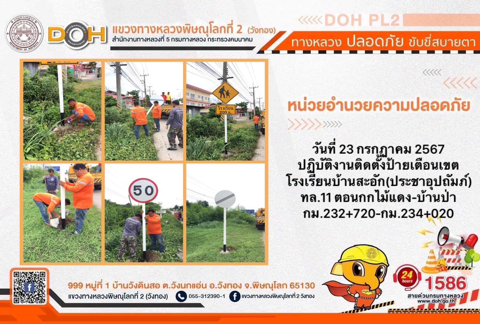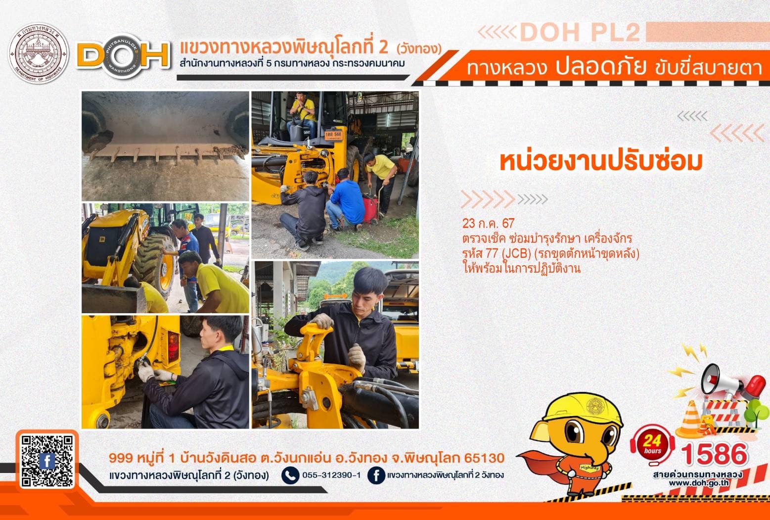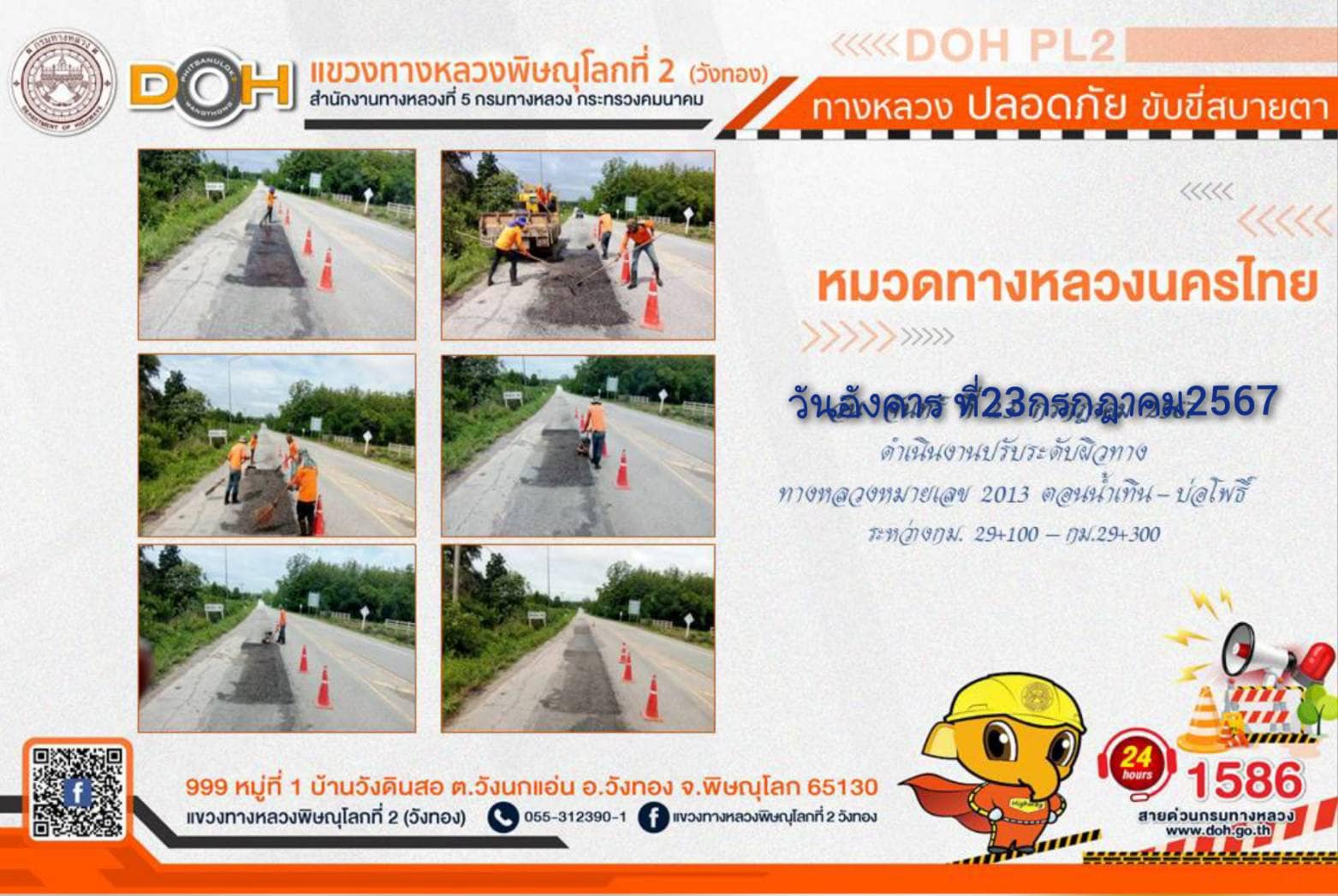การปฏิบัติงานของ หมวดทางหลวง และ หน่วยงานในสังกัด เพื่ออำนวยความสะดวก และปลอดภัยให้กับประชาชนผู้ใช้เส้นทาง ประจำ วันอังคารที่ 23 กรกฎาคม 2567