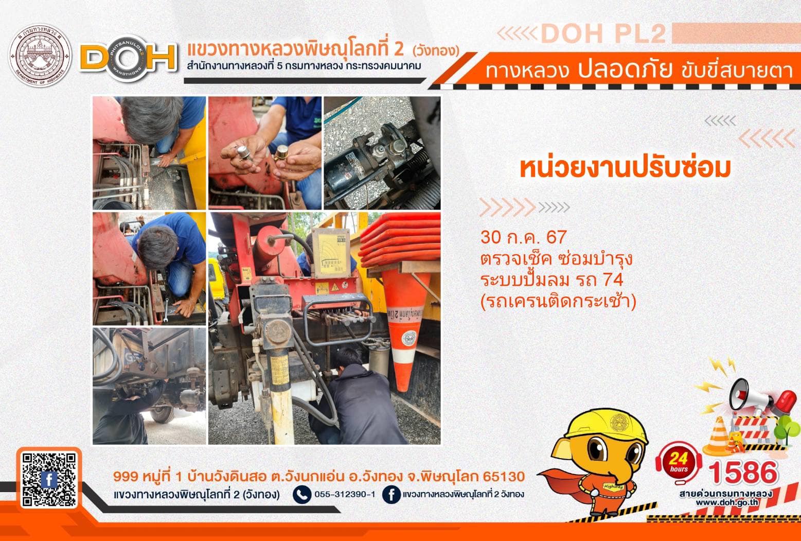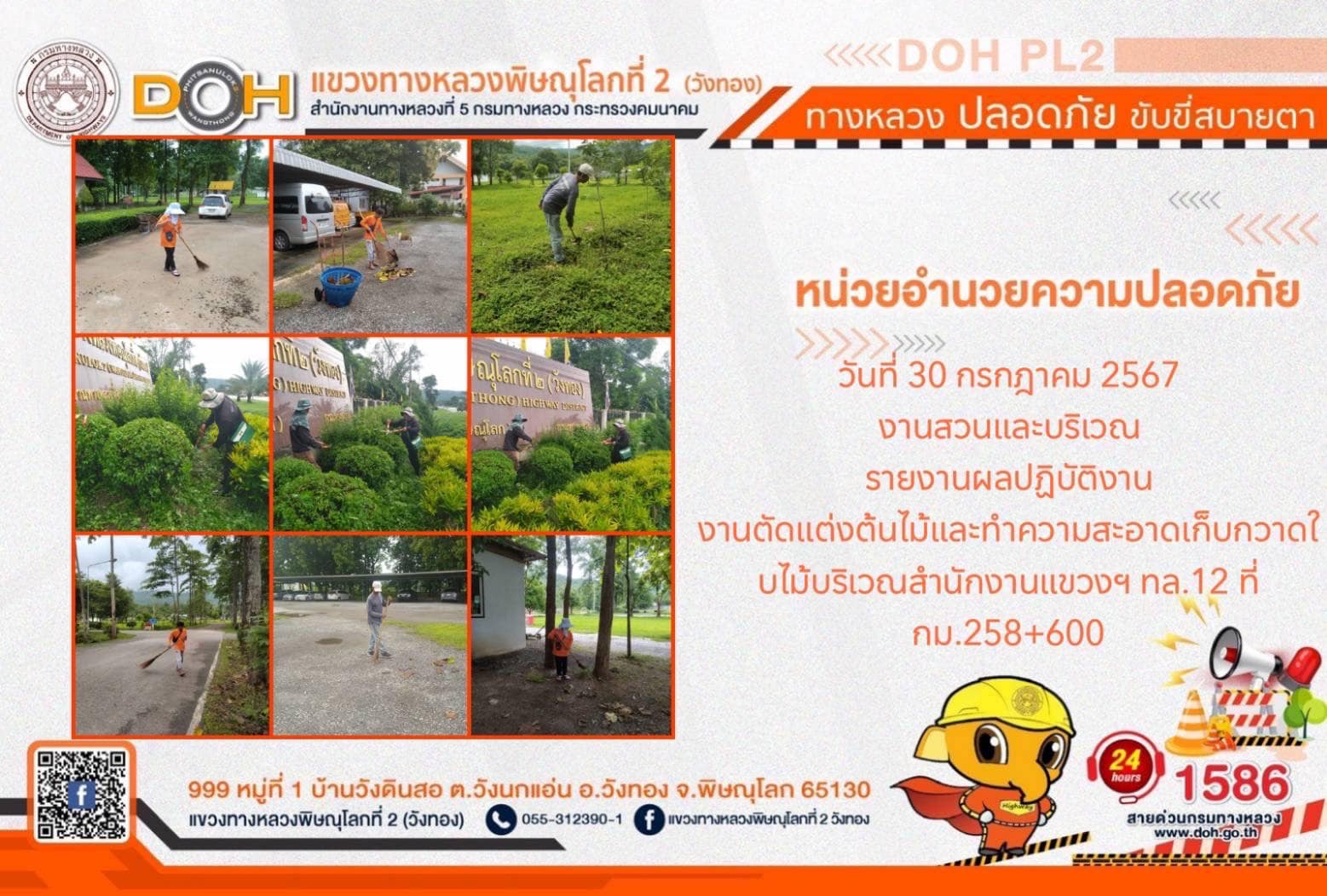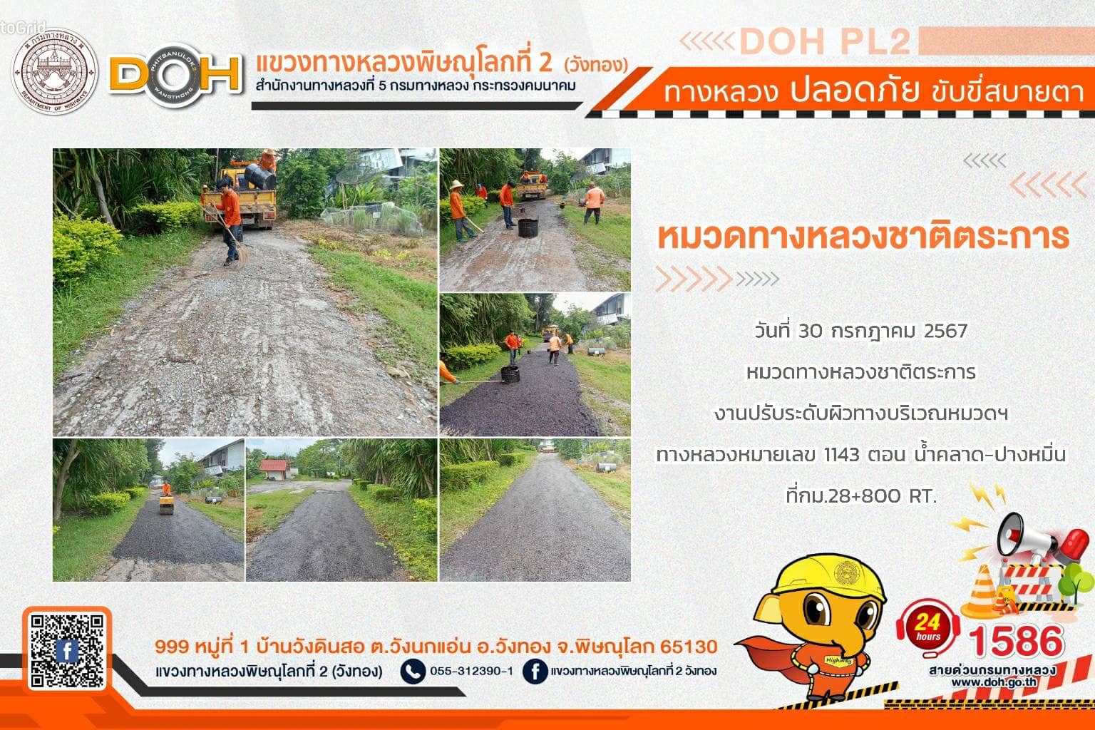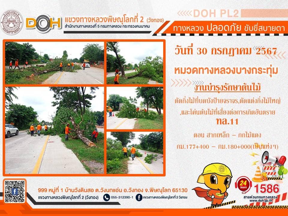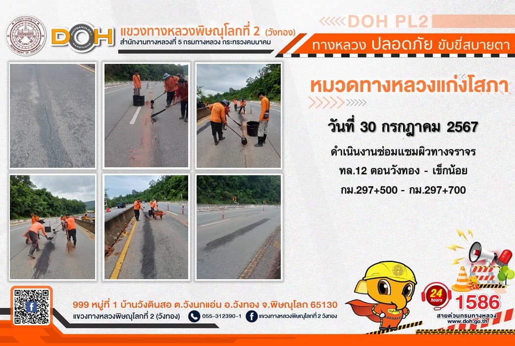 การปฏิบัติงานของ หมวดทางหลวง และ หน่วยงานในสังกัด เพื่ออำนวยความสะดวก และปลอดภัยให้กับประชาชนผู้ใช้เส้นทาง ประจำ วันอังคารที่ 30 กรกฎาคม 2567
