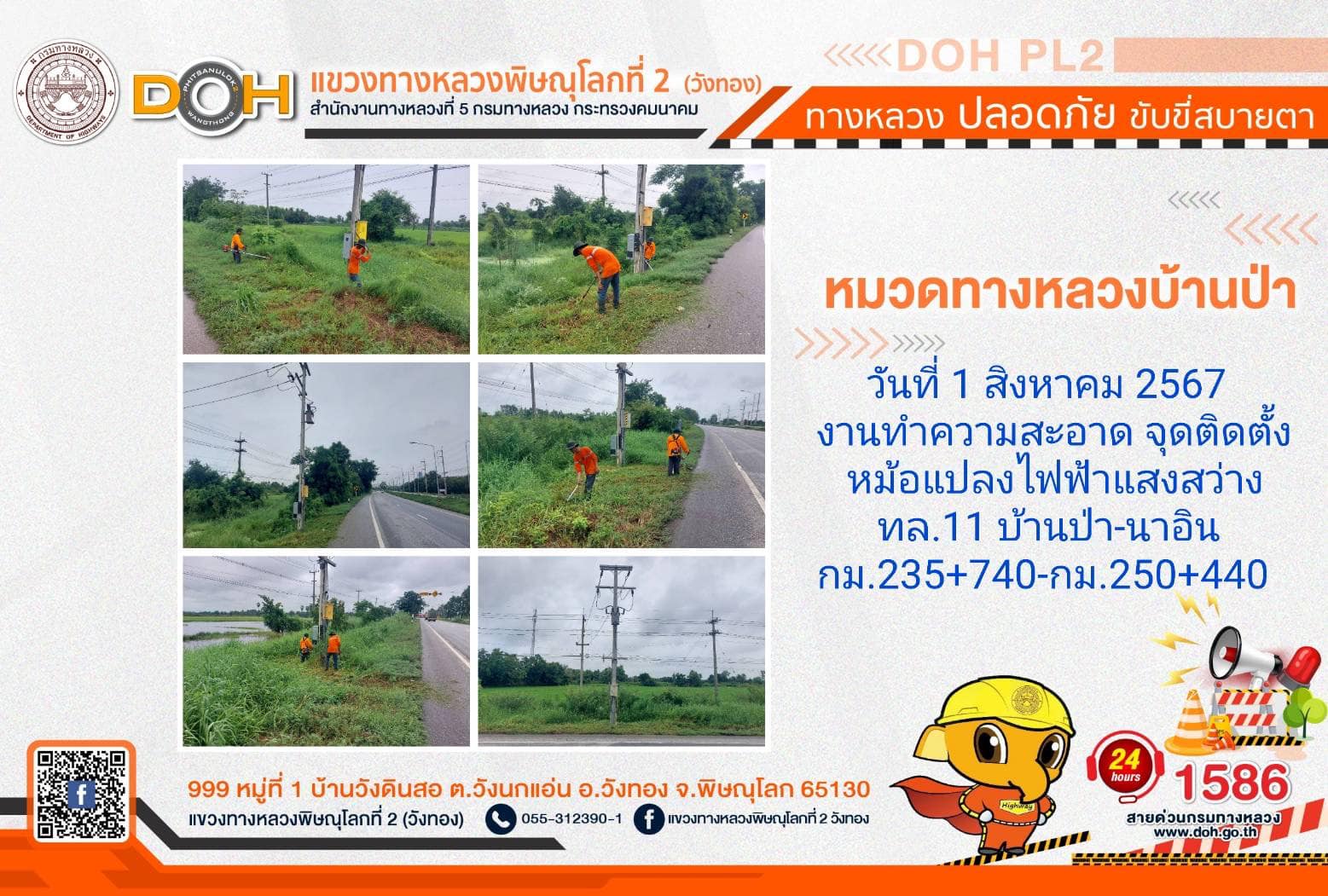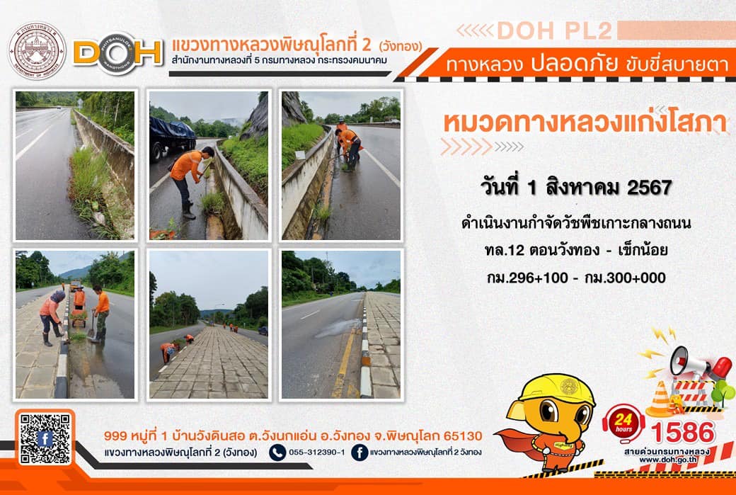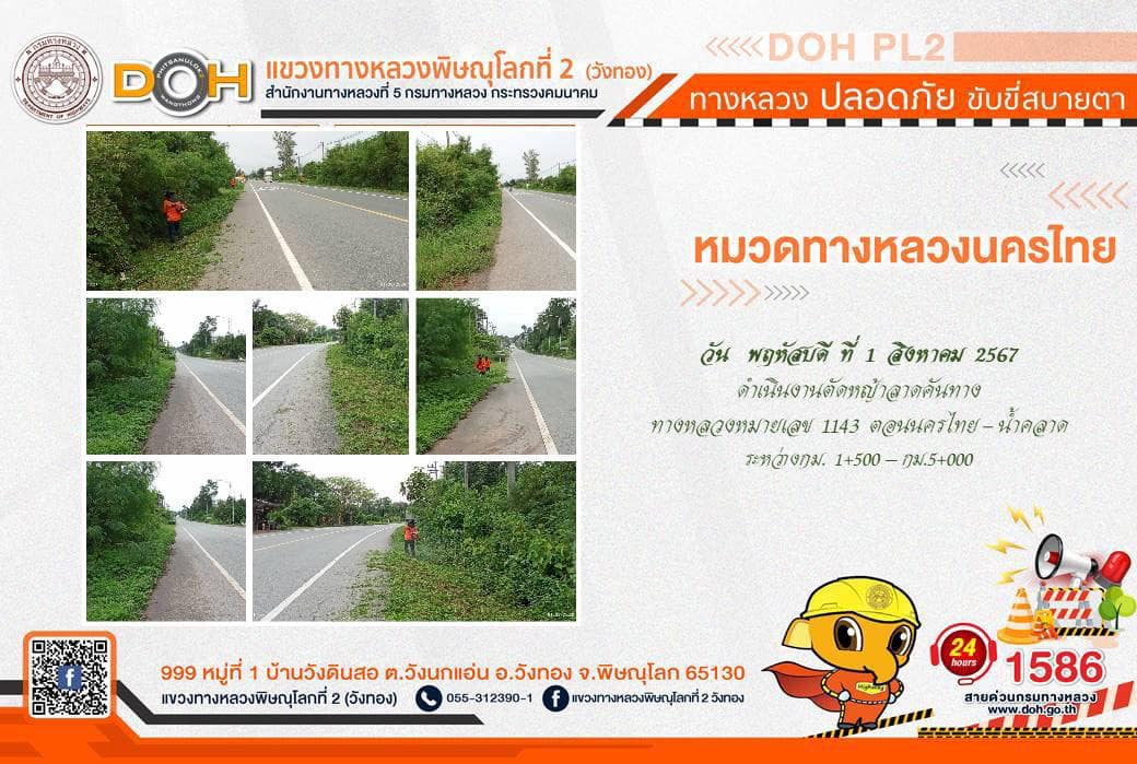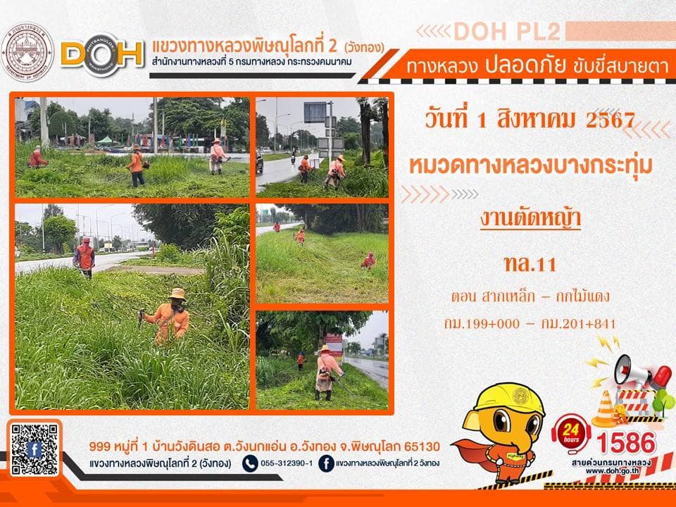 การปฏิบัติงานของ หมวดทางหลวง และ หน่วยงานในสังกัด เพื่ออำนวยความสะดวก และปลอดภัยให้กับประชาชนผู้ใช้เส้นทาง ประจำ วันพฤหัสบดีที่ 1 สิงหาคม 2567