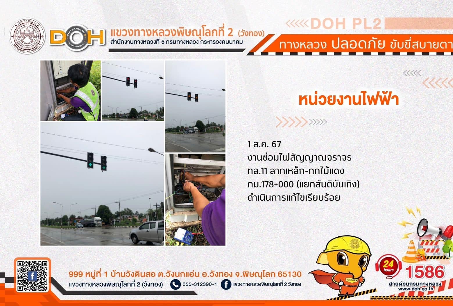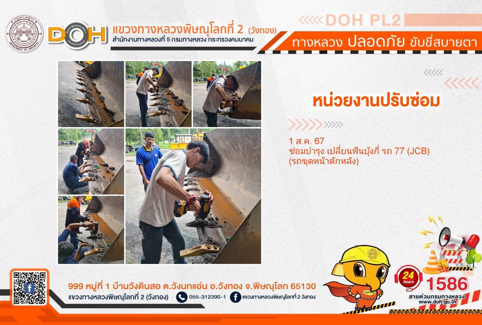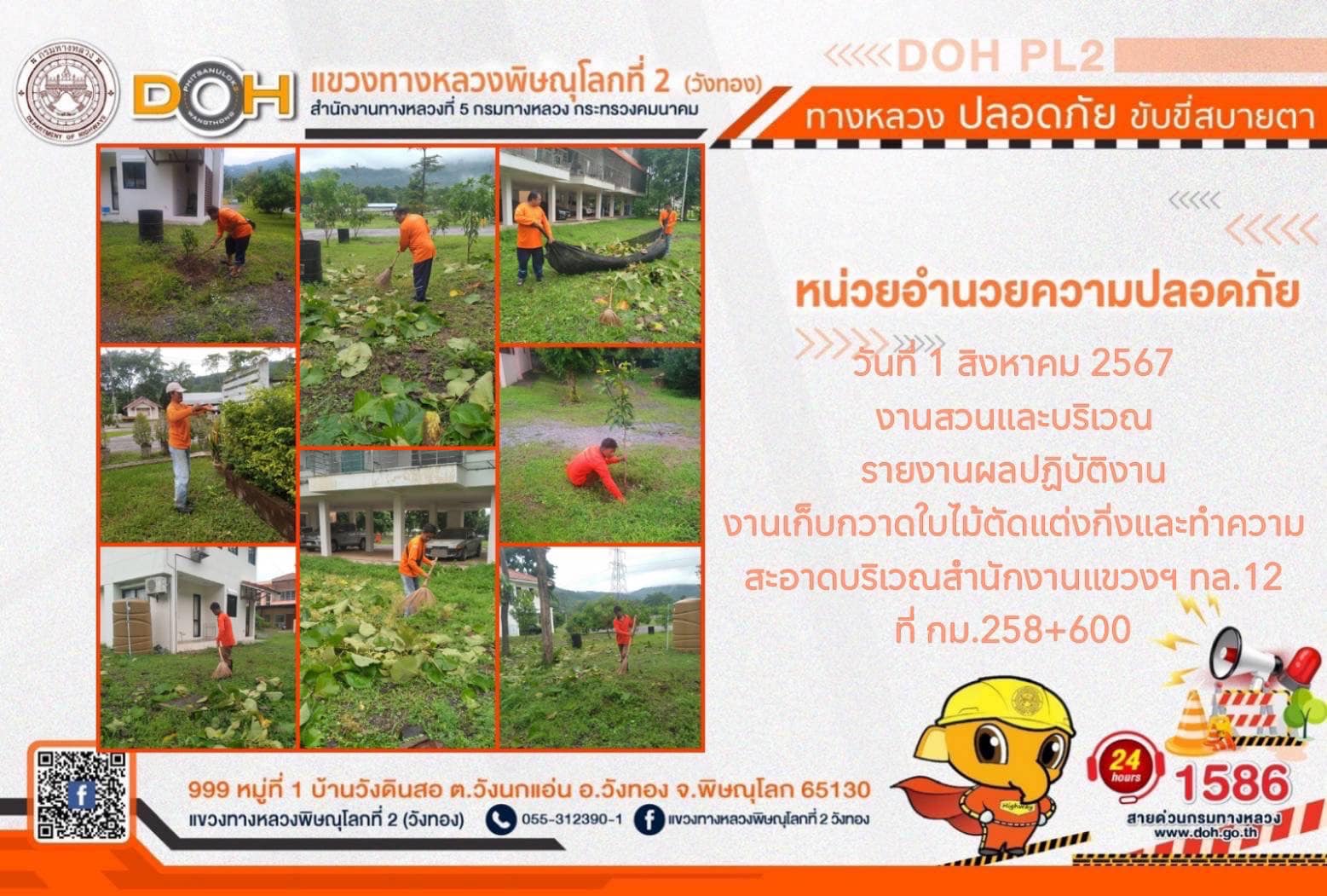 การปฏิบัติงานของ หมวดทางหลวง และ หน่วยงานในสังกัด เพื่ออำนวยความสะดวก และปลอดภัยให้กับประชาชนผู้ใช้เส้นทาง ประจำ วันพฤหัสบดีที่ 1 สิงหาคม 2567