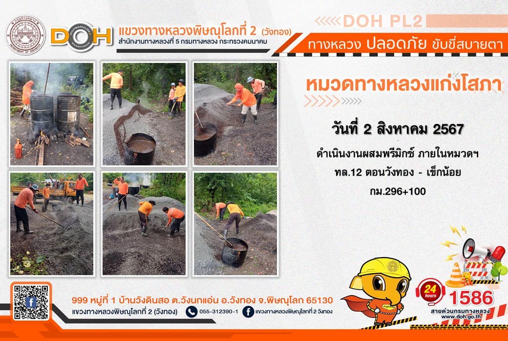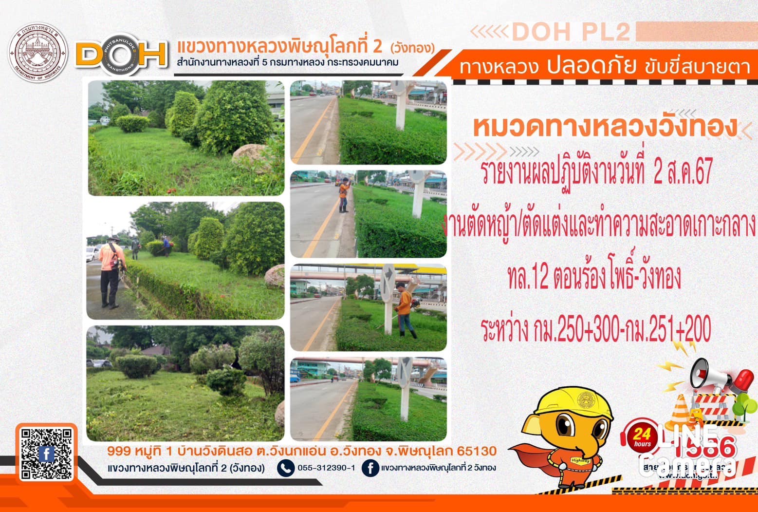 การปฏิบัติงานของ หมวดทางหลวง และ หน่วยงานในสังกัด เพื่ออำนวยความสะดวก และปลอดภัยให้กับประชาชนผู้ใช้เส้นทาง ประจำ วันศุกร์ที่ 2 สิงหาคม 2567