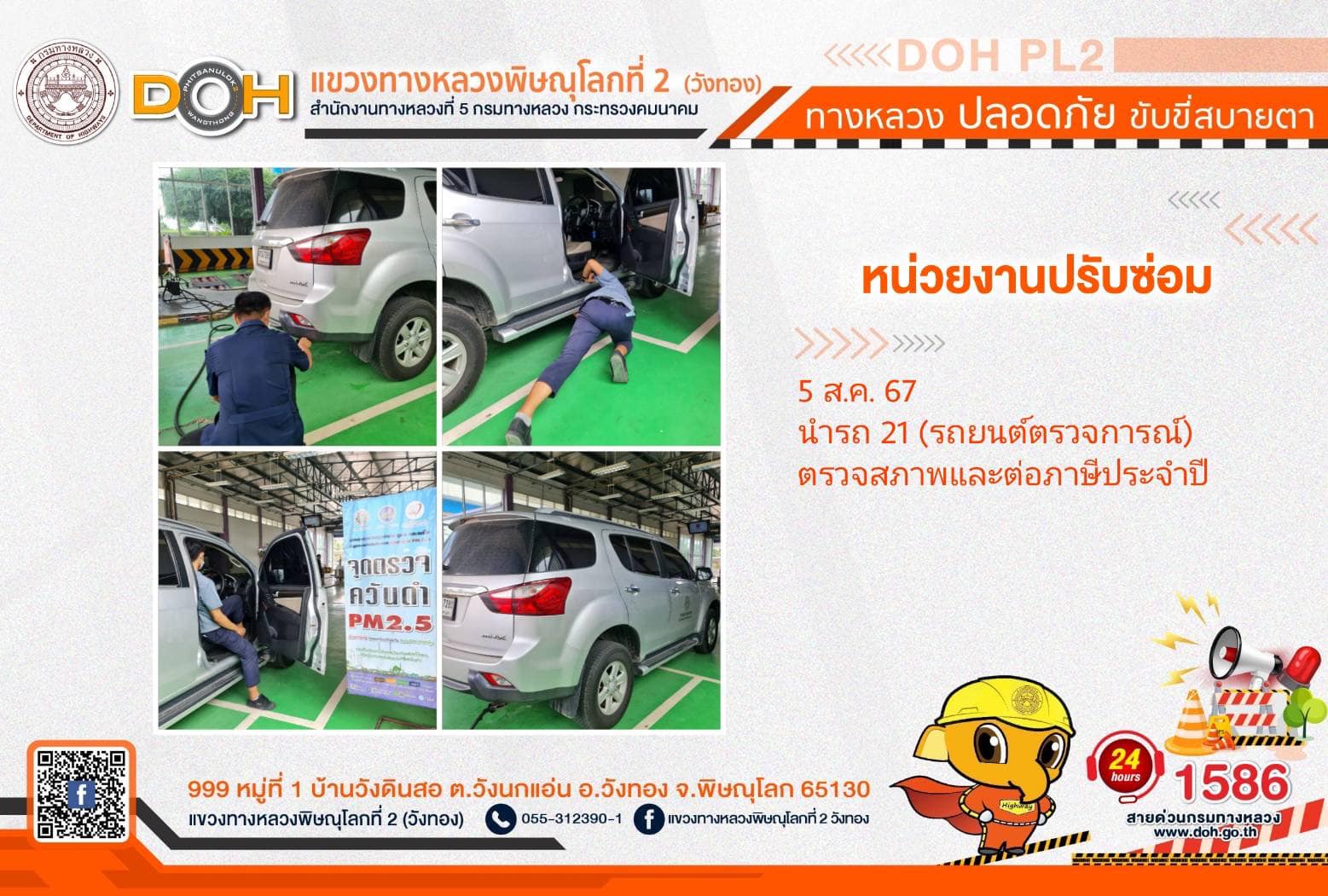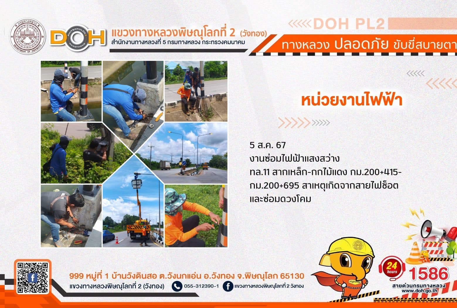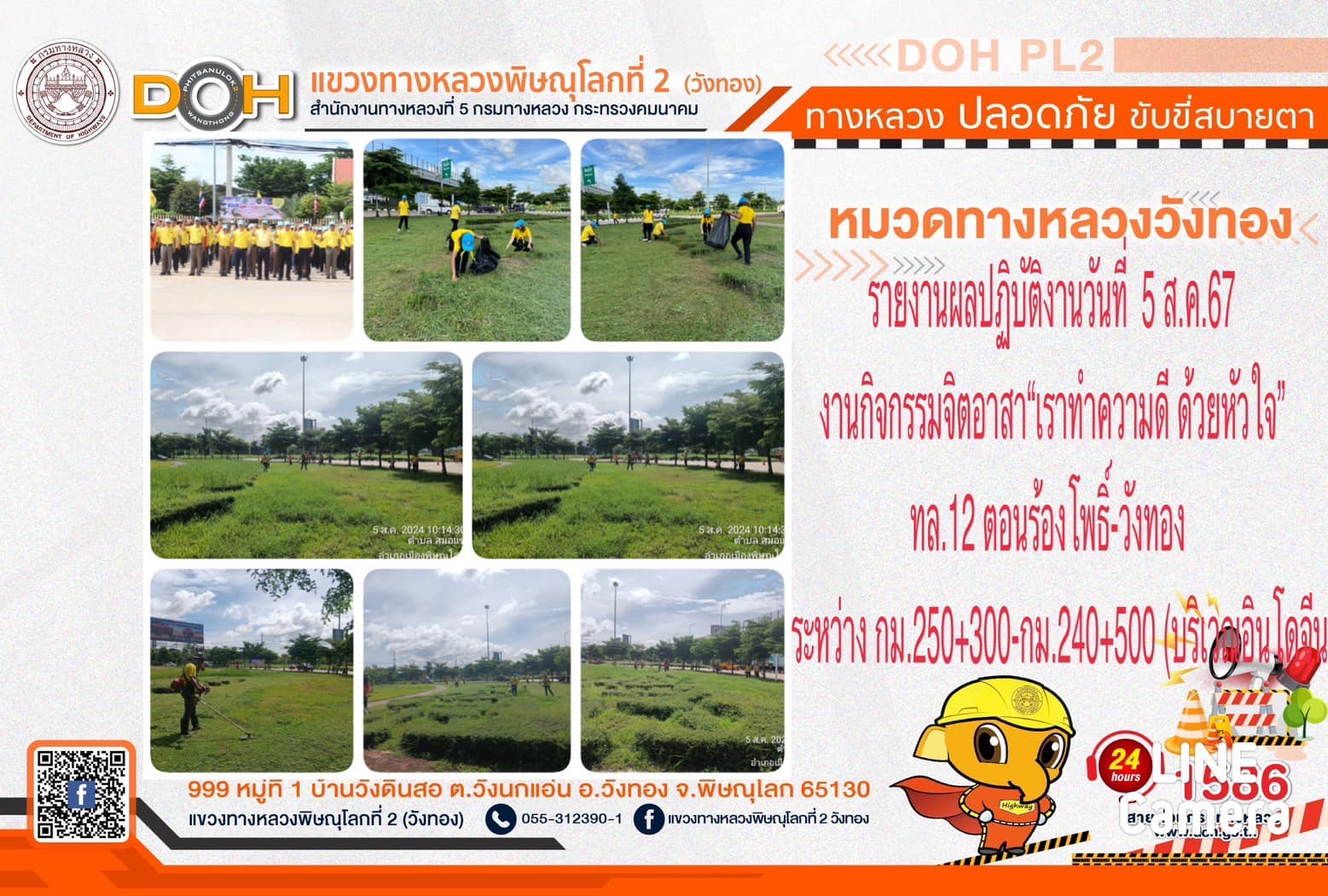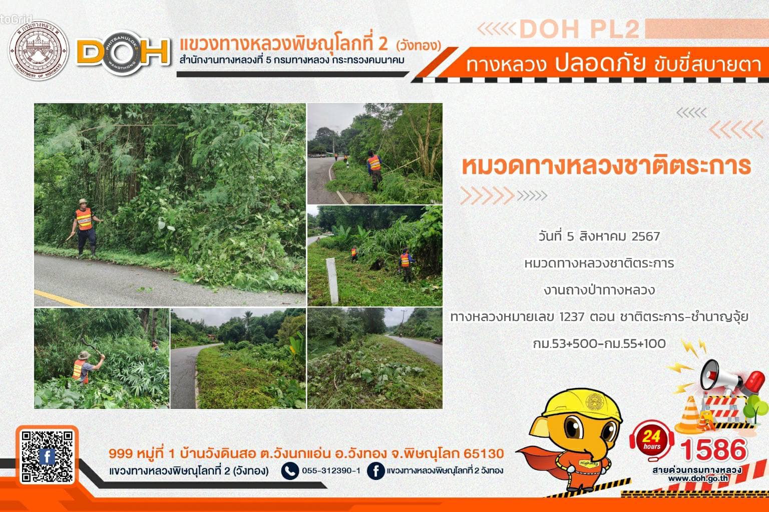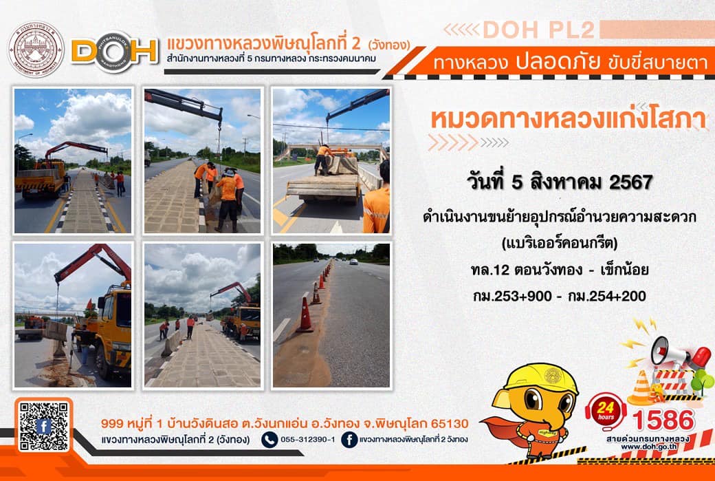 การปฏิบัติงานของ หมวดทางหลวง และ หน่วยงานในสังกัด เพื่ออำนวยความสะดวก และปลอดภัยให้กับประชาชนผู้ใช้เส้นทาง ประจำ วันจันทร์ที่ 5 สิงหาคม 2567
