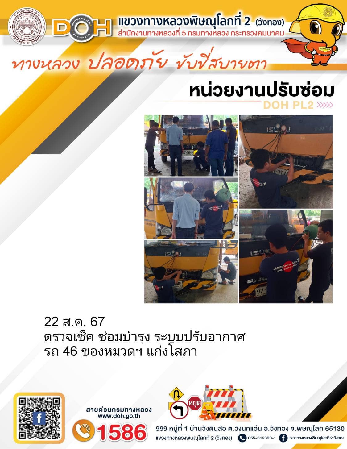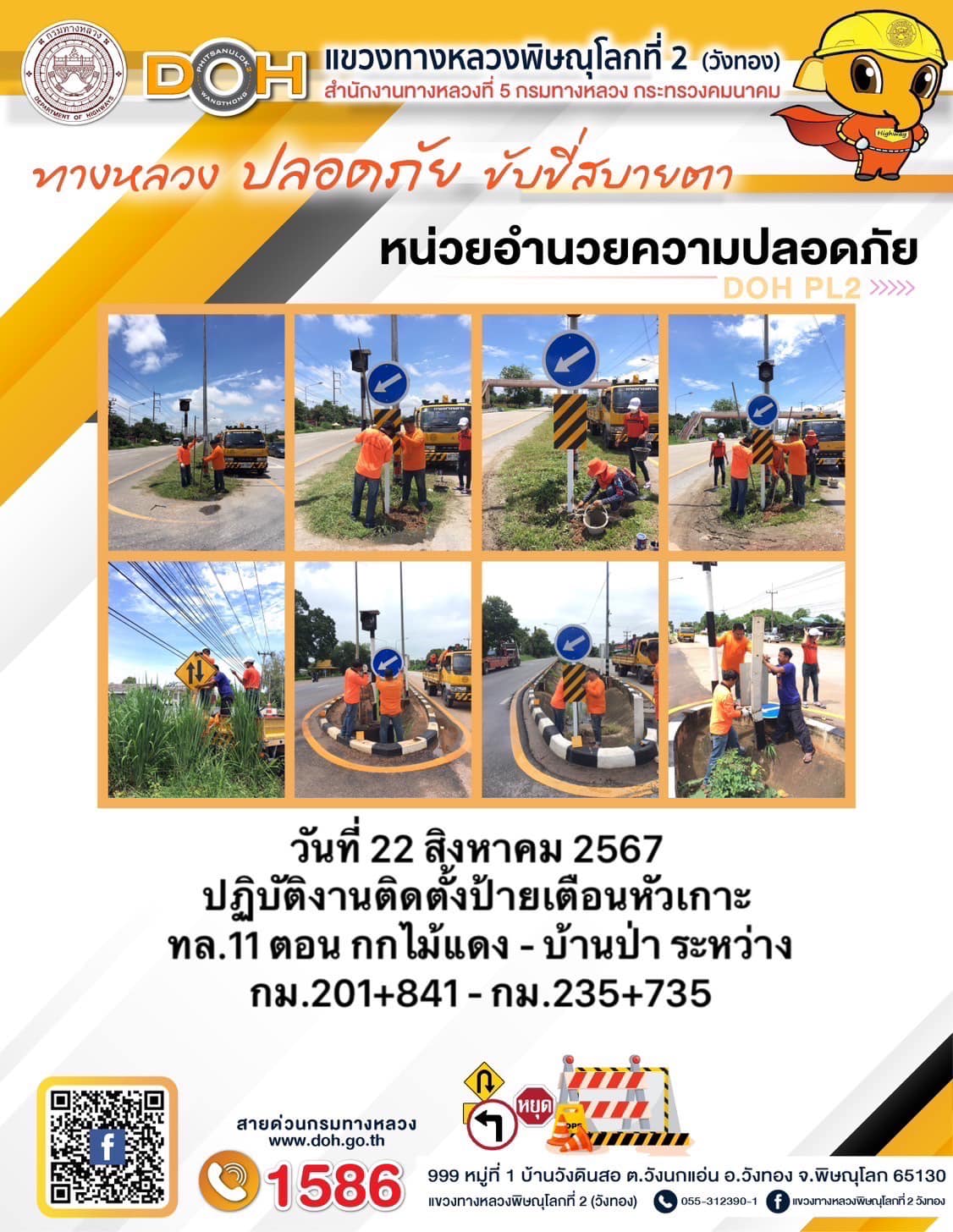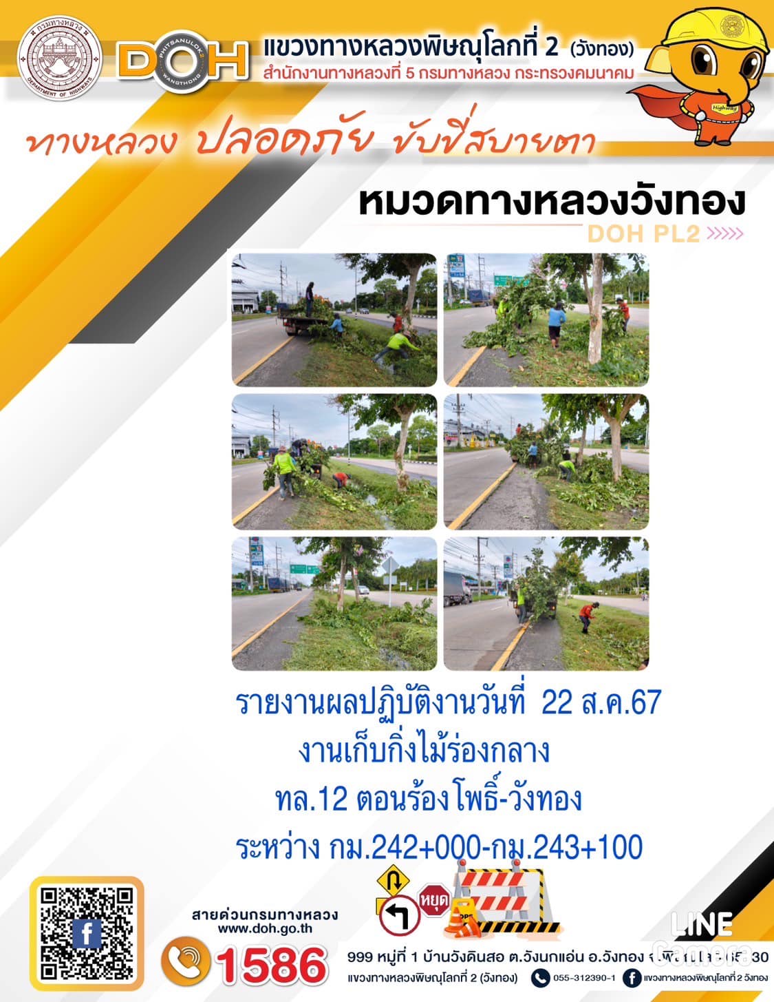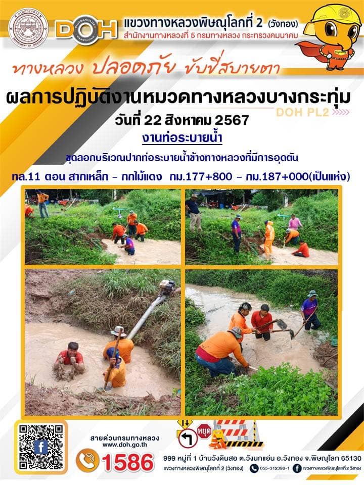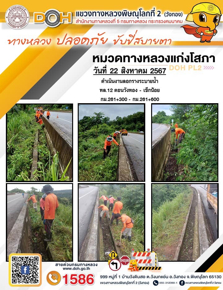 การปฏิบัติงานของ หมวดทางหลวง และ หน่วยงานในสังกัด เพื่ออำนวยความสะดวก และปลอดภัยให้กับประชาชนผู้ใช้เส้นทาง ประจำ วันพฤหัสบดีที่ 22 สิงหาคม 2567