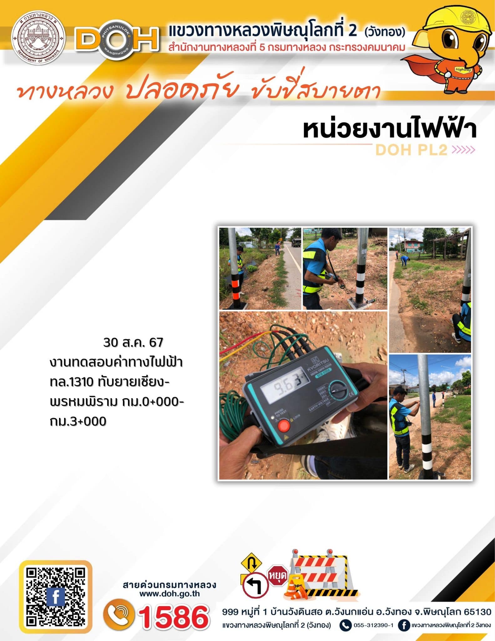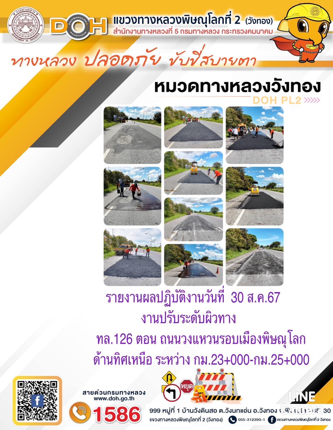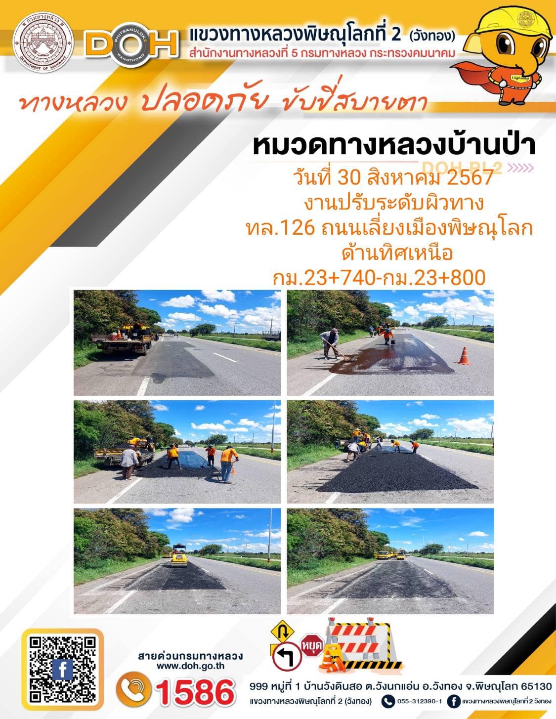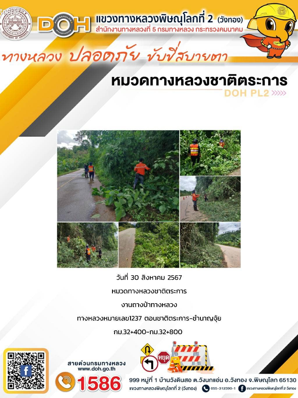 การปฏิบัติงานของ หมวดทางหลวง และ หน่วยงานในสังกัด เพื่ออำนวยความสะดวก และปลอดภัยให้กับประชาชนผู้ใช้เส้นทาง ประจำ วันศุกร์ที่ 30 สิงหาคม 2567
