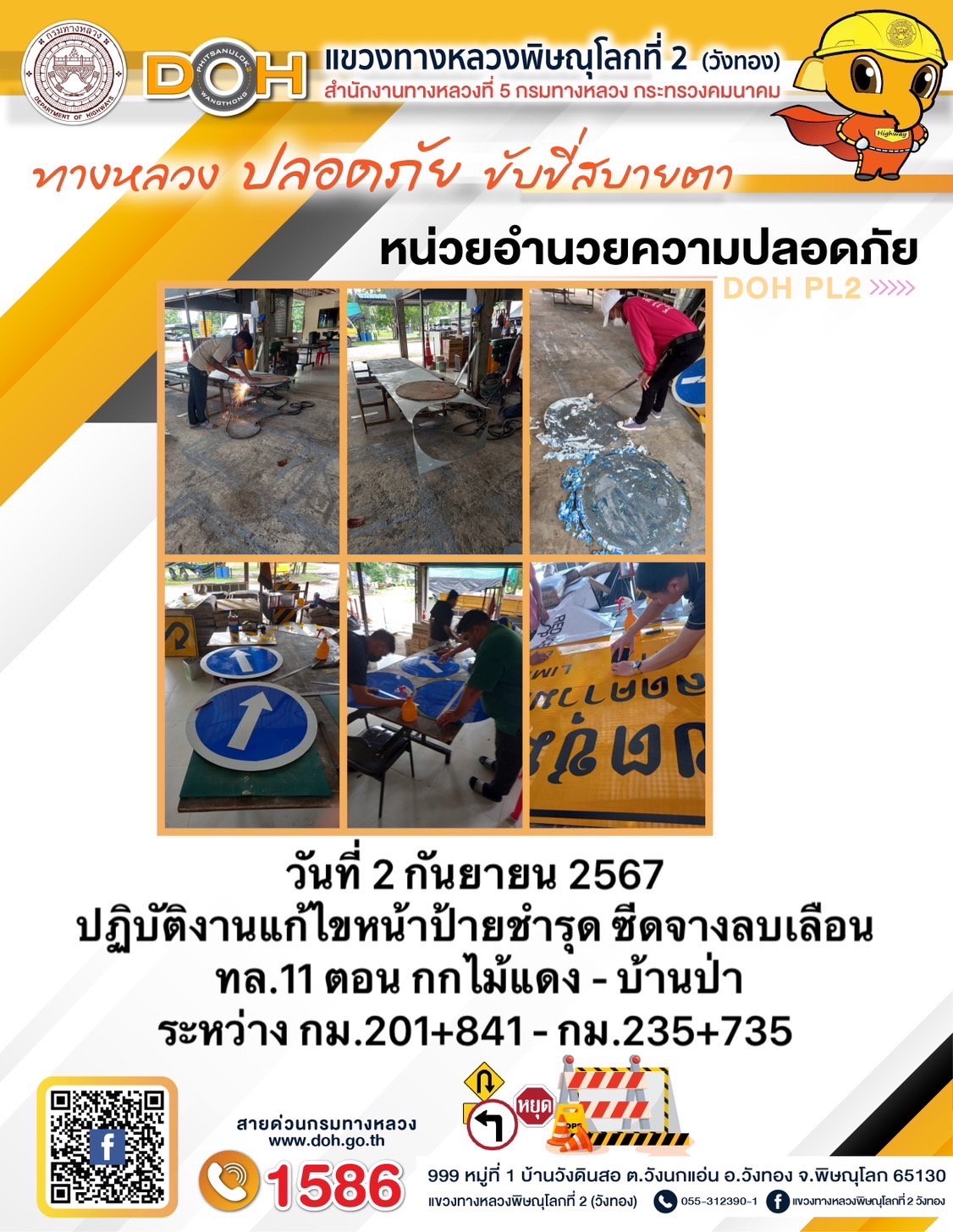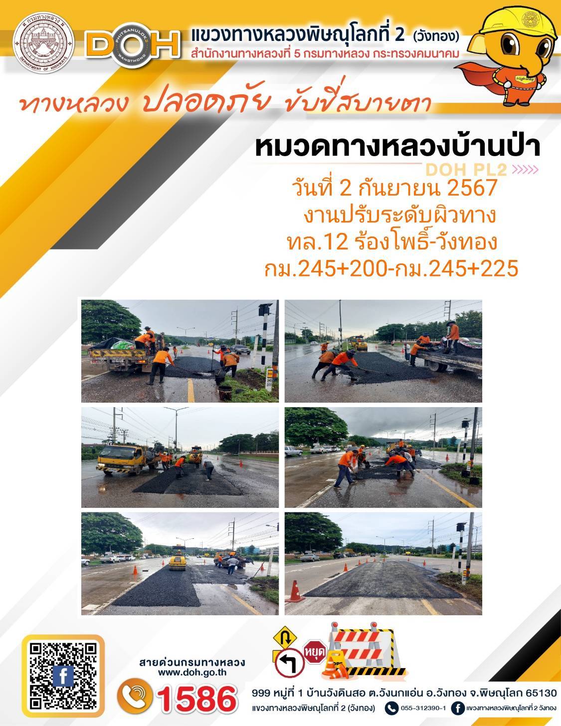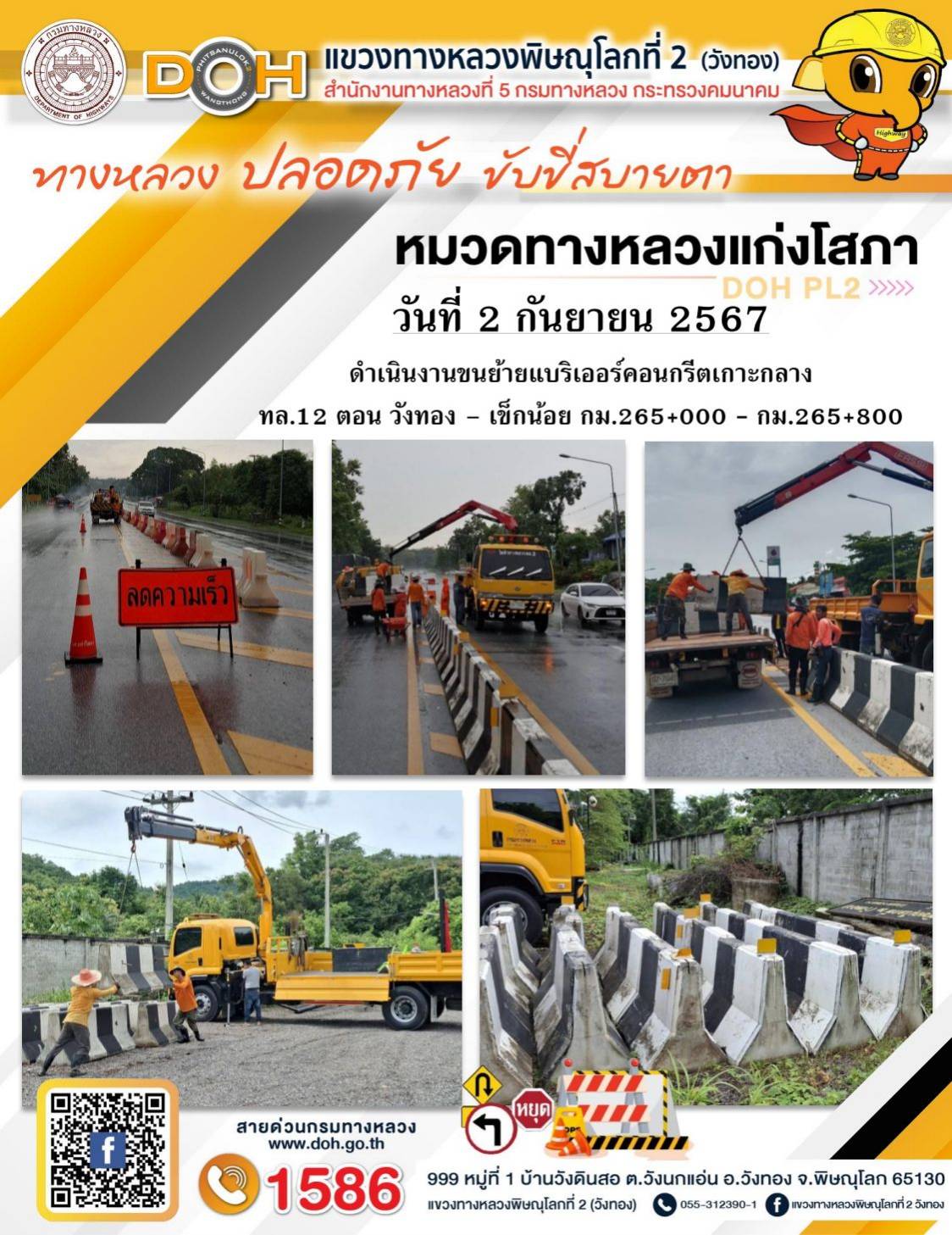 การปฏิบัติงานของ หมวดทางหลวง และ หน่วยงานในสังกัด เพื่ออำนวยความสะดวก และปลอดภัยให้กับประชาชนผู้ใช้เส้นทาง ประจำ วันจันทร์ที่ 2 กันยายน 2567