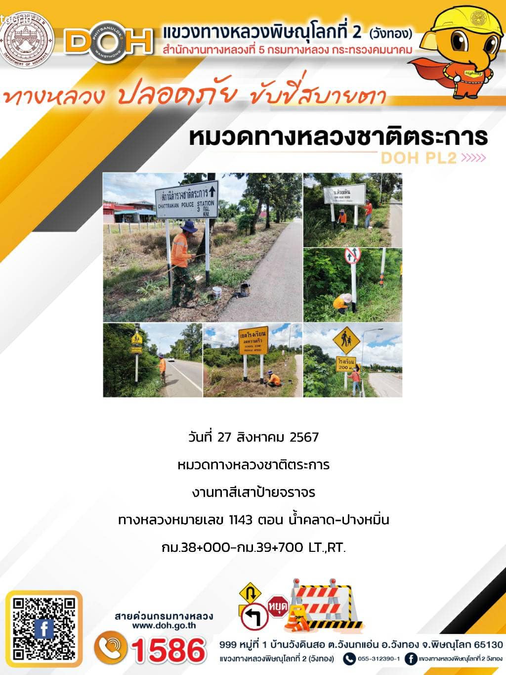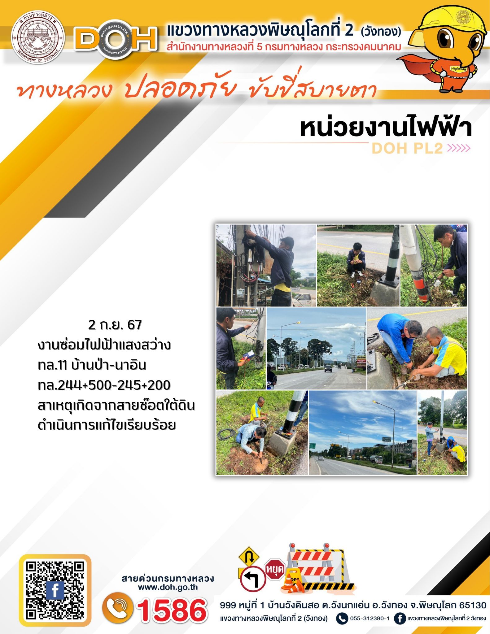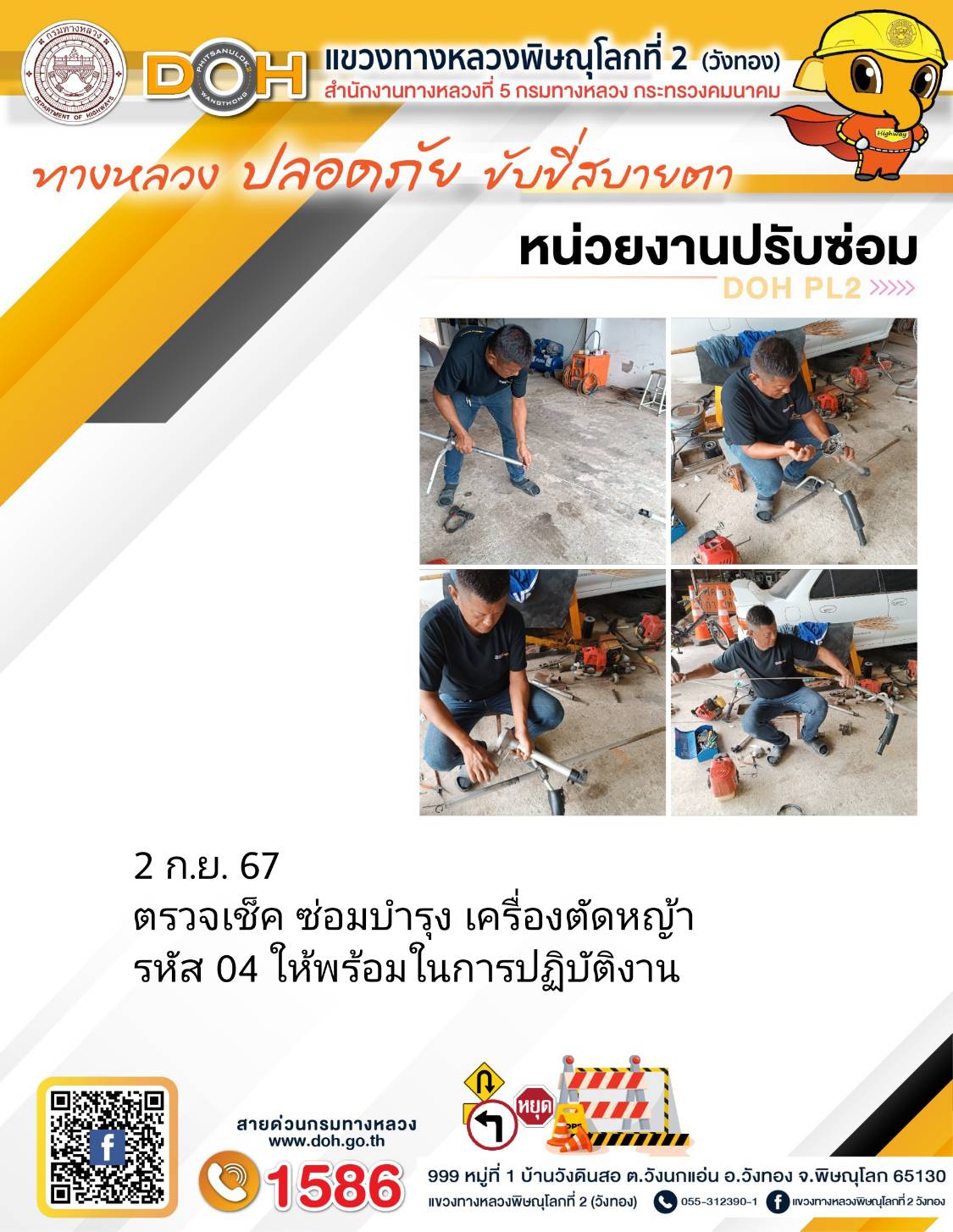 การปฏิบัติงานของ หมวดทางหลวง และ หน่วยงานในสังกัด เพื่ออำนวยความสะดวก และปลอดภัยให้กับประชาชนผู้ใช้เส้นทาง ประจำ วันจันทร์ที่ 2 กันยายน 2567