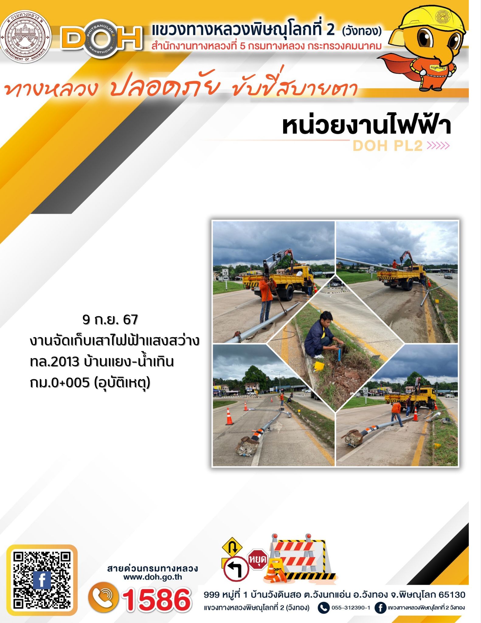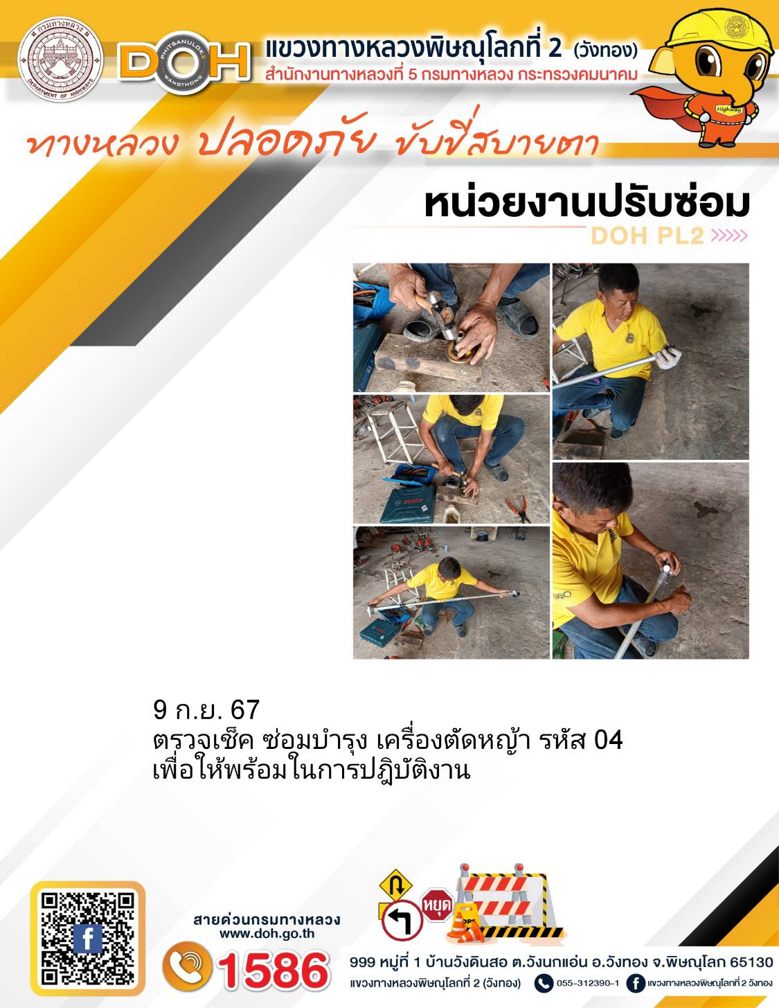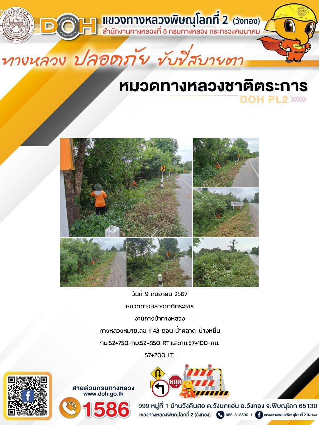 การปฏิบัติงานของ หมวดทางหลวง และ หน่วยงานในสังกัด เพื่ออำนวยความสะดวก และปลอดภัยให้กับประชาชนผู้ใช้เส้นทาง ประจำ วันอังคาร ที่ 10 กันยายน 2567