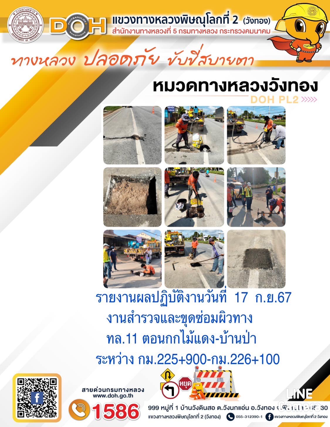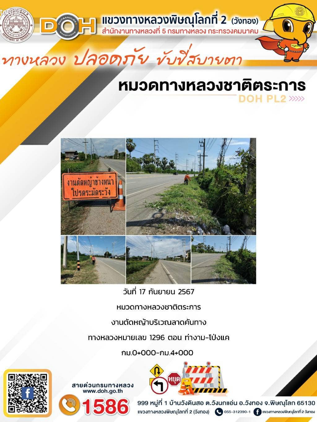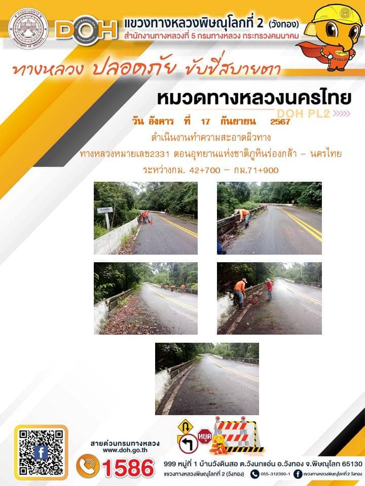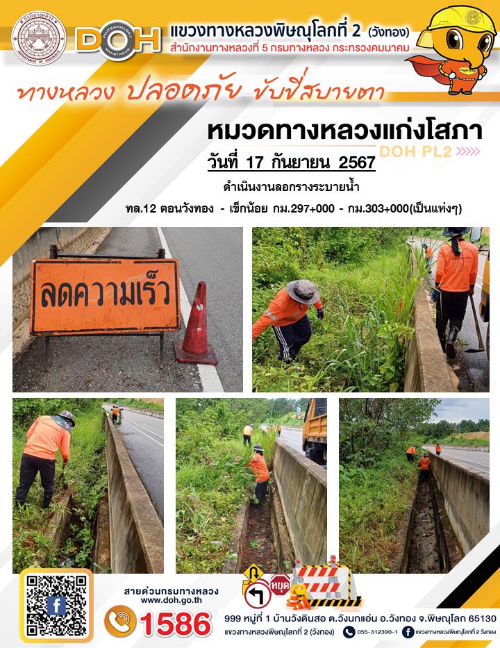 การปฏิบัติงานของ หมวดทางหลวง และ หน่วยงานในสังกัด เพื่ออำนวยความสะดวก และปลอดภัยให้กับประชาชนผู้ใช้เส้นทาง ประจำ วันอังคารที่ 17 กันยายน 2567