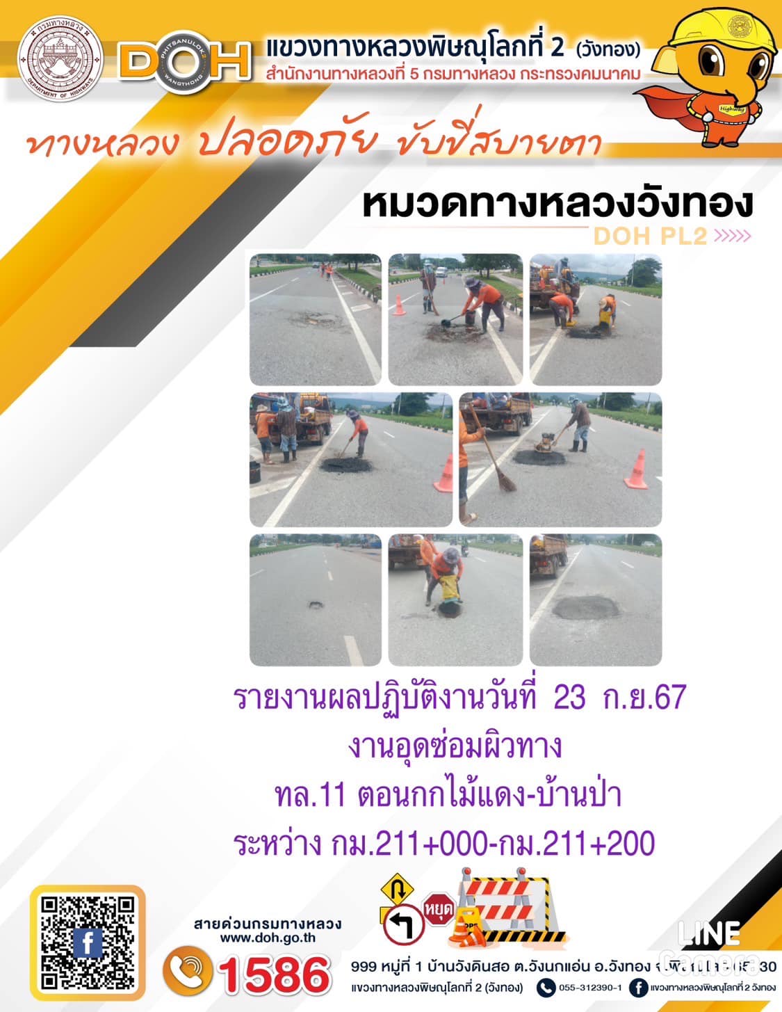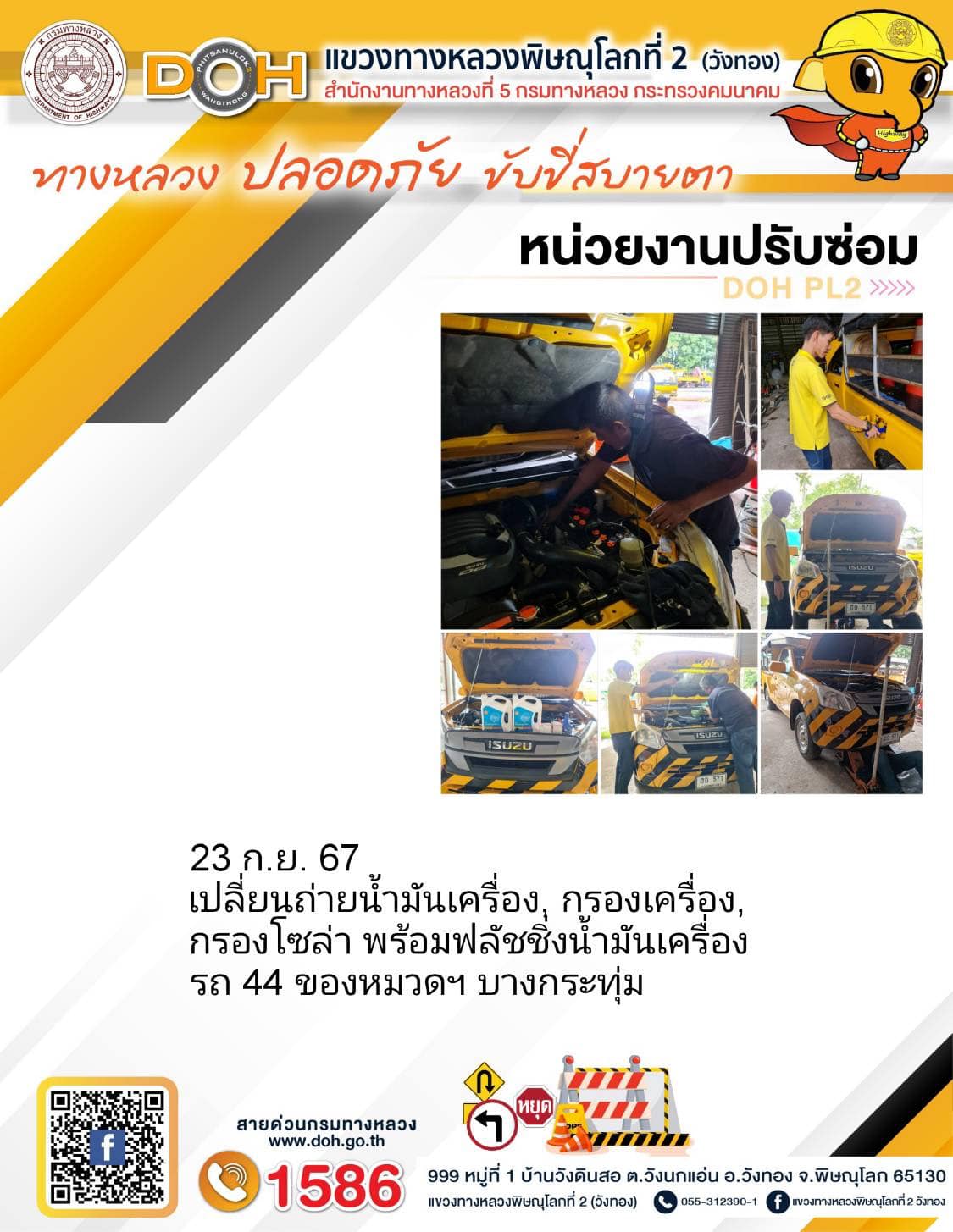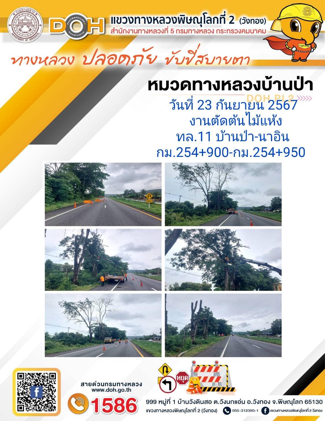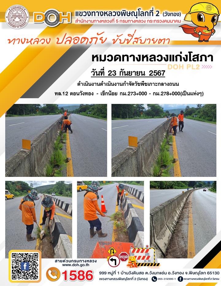 การปฏิบัติงานของ หมวดทางหลวง และ หน่วยงานในสังกัด เพื่ออำนวยความสะดวก และปลอดภัยให้กับประชาชนผู้ใช้เส้นทาง ประจำ วันจันทร์ ที่ 23 กันยายน 2567