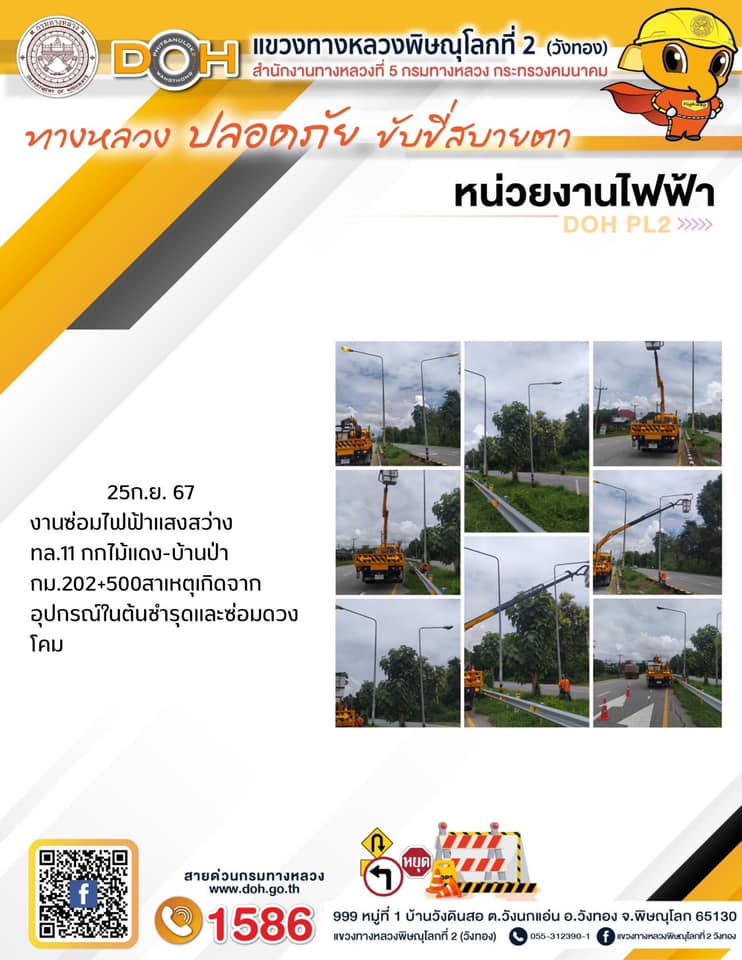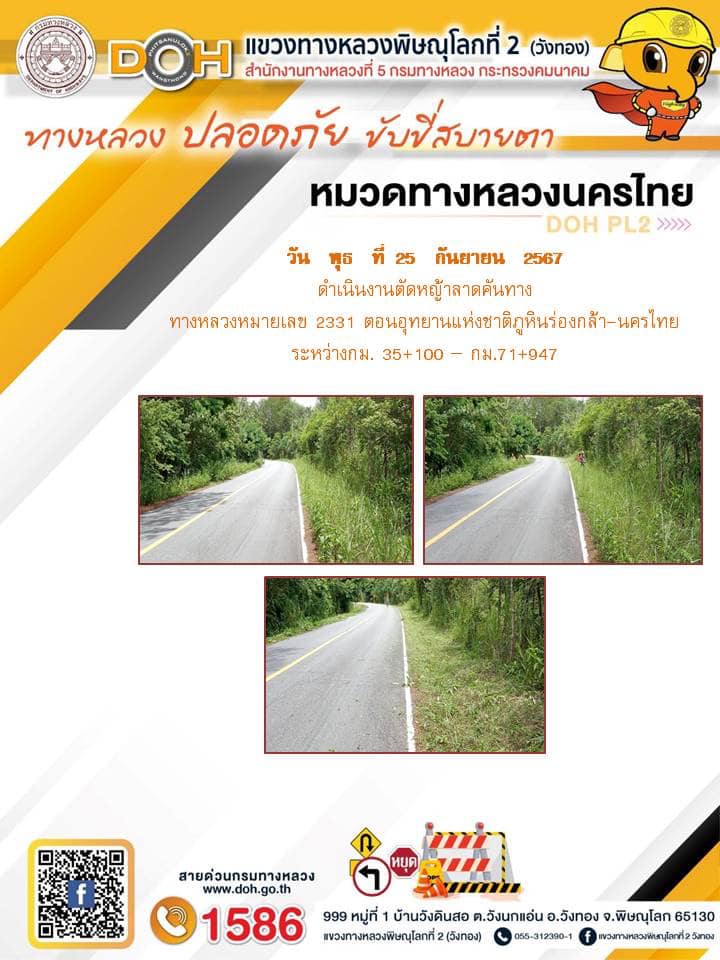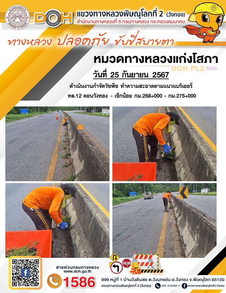 การปฏิบัติงานของ หมวดทางหลวง และ หน่วยงานในสังกัด เพื่ออำนวยความสะดวก และปลอดภัยให้กับประชาชนผู้ใช้เส้นทาง ประจำ วันพุธ ที่ 25 กันยายน 2567