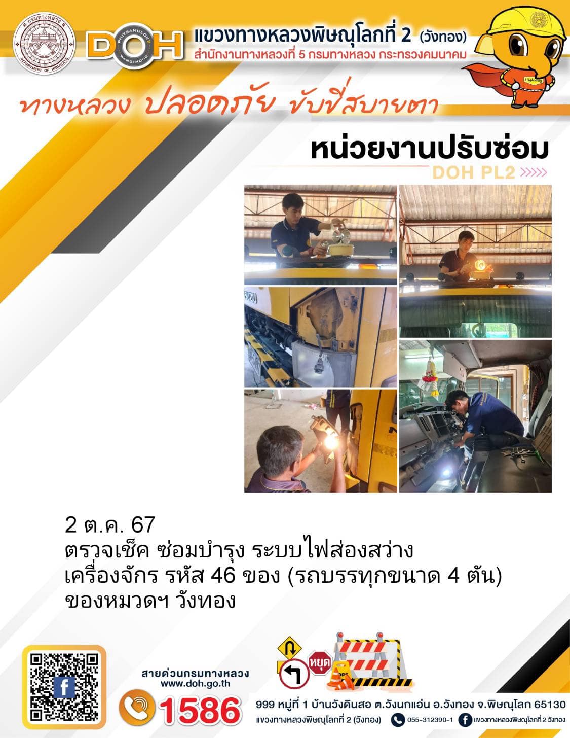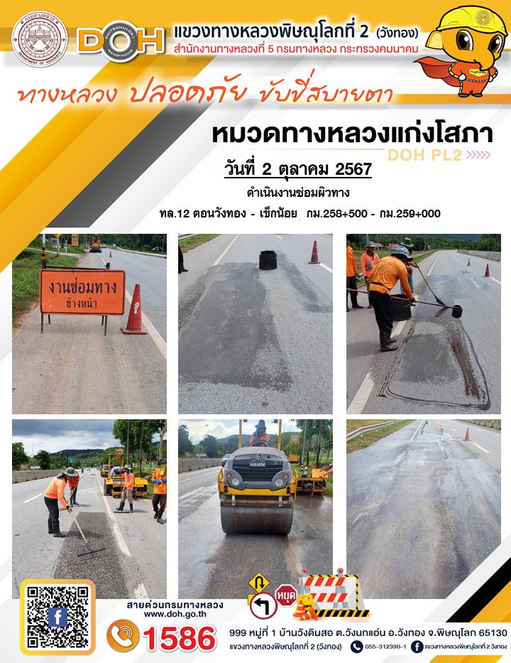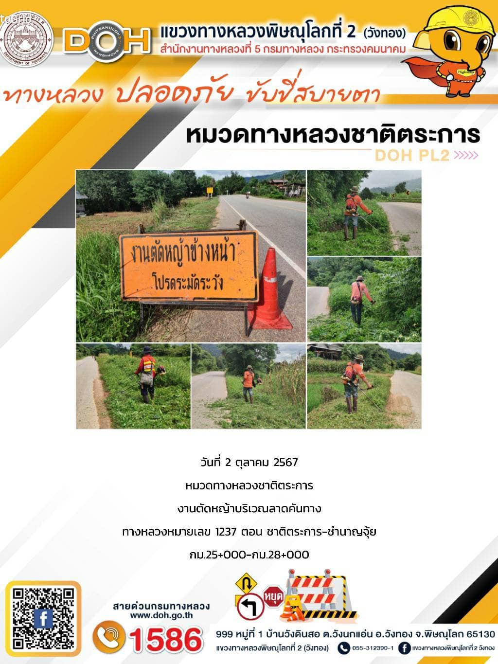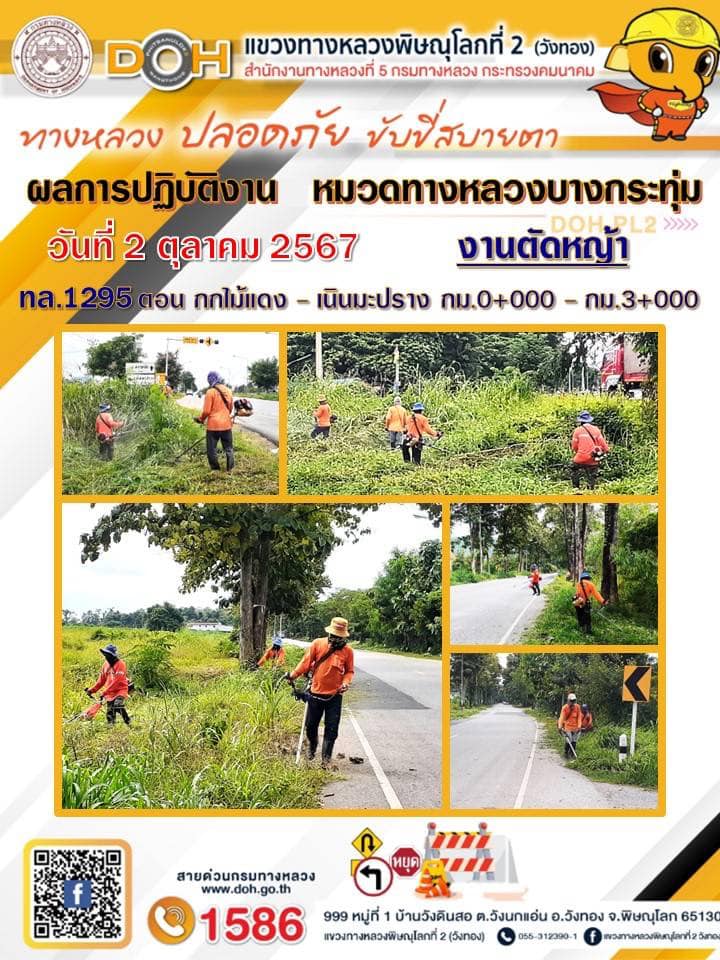 การปฏิบัติงานของ หมวดทางหลวง และ หน่วยงานในสังกัด เพื่ออำนวยความสะดวก และปลอดภัยให้กับประชาชนผู้ใช้เส้นทาง ประจำ วันพุธ ที่ 2 ตุลาคม 2567