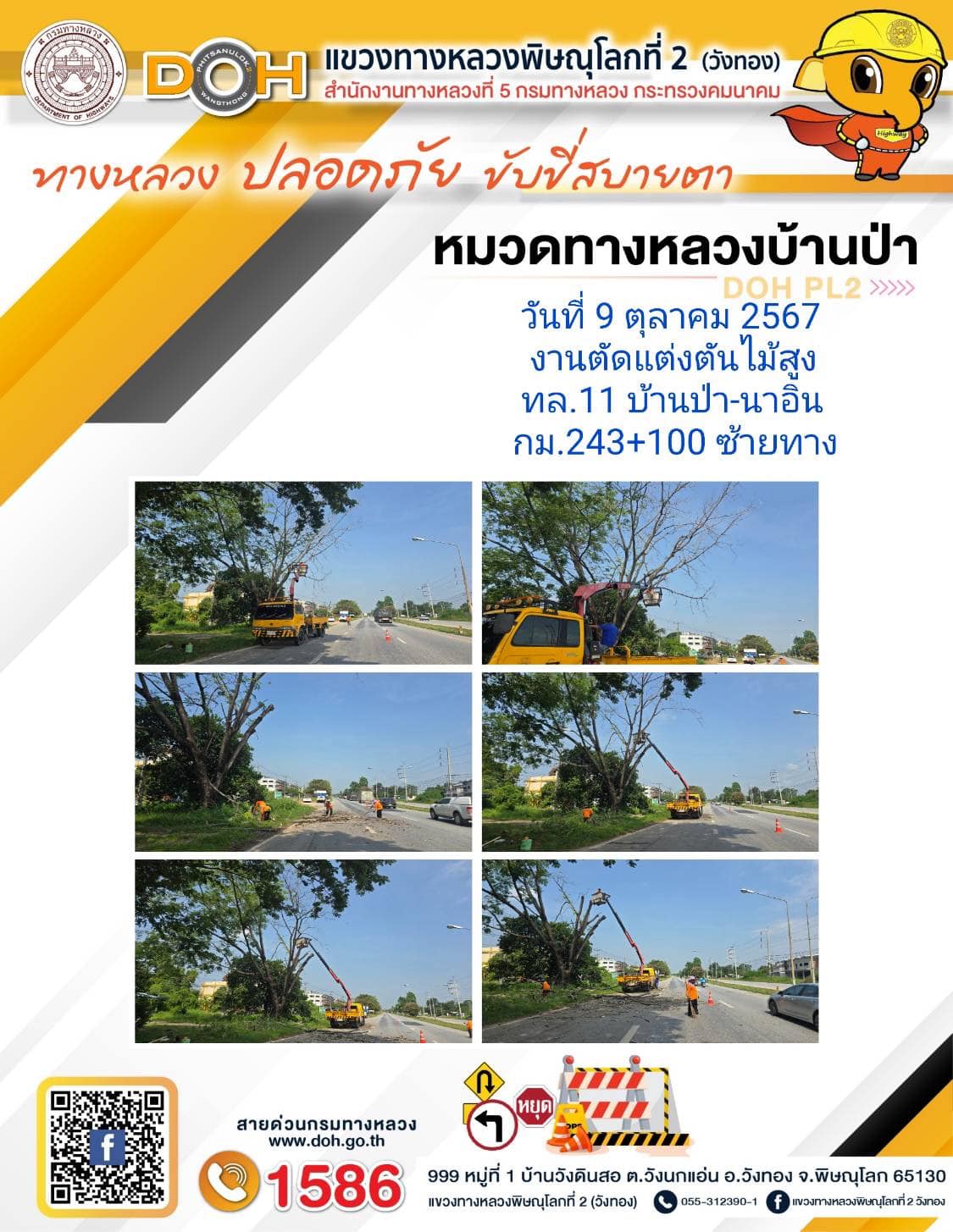 การปฏิบัติงานของ หมวดทางหลวง และ หน่วยงานในสังกัด เพื่ออำนวยความสะดวก และปลอดภัยให้กับประชาชนผู้ใช้เส้นทาง ประจำ วันพุธ ที่ 9 ตุลาคม 2567