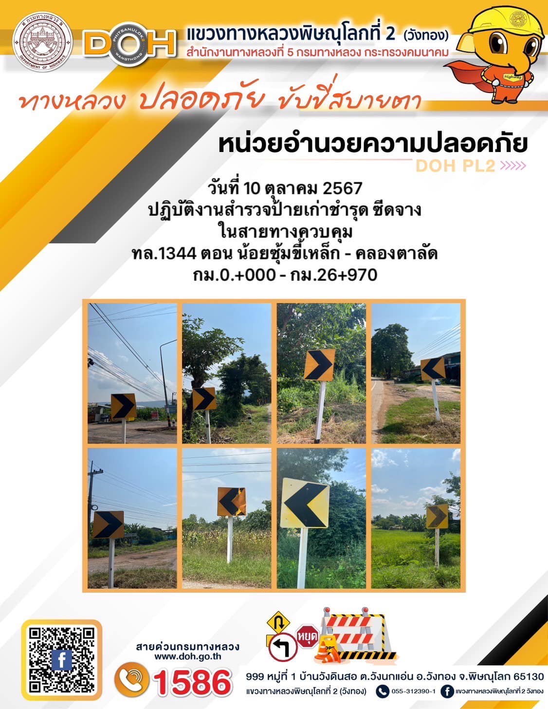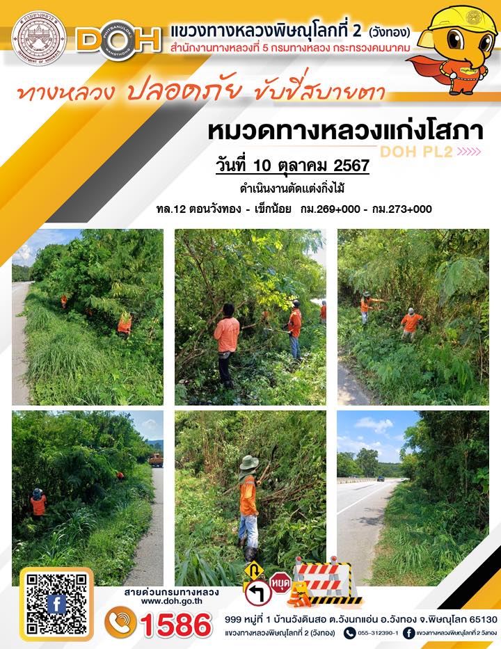 การปฏิบัติงานของ หมวดทางหลวง และ หน่วยงานในสังกัด เพื่ออำนวยความสะดวก และปลอดภัยให้กับประชาชนผู้ใช้เส้นทาง ประจำ วันพฤหัสบดี ที่ 10 ตุลาคม 2567