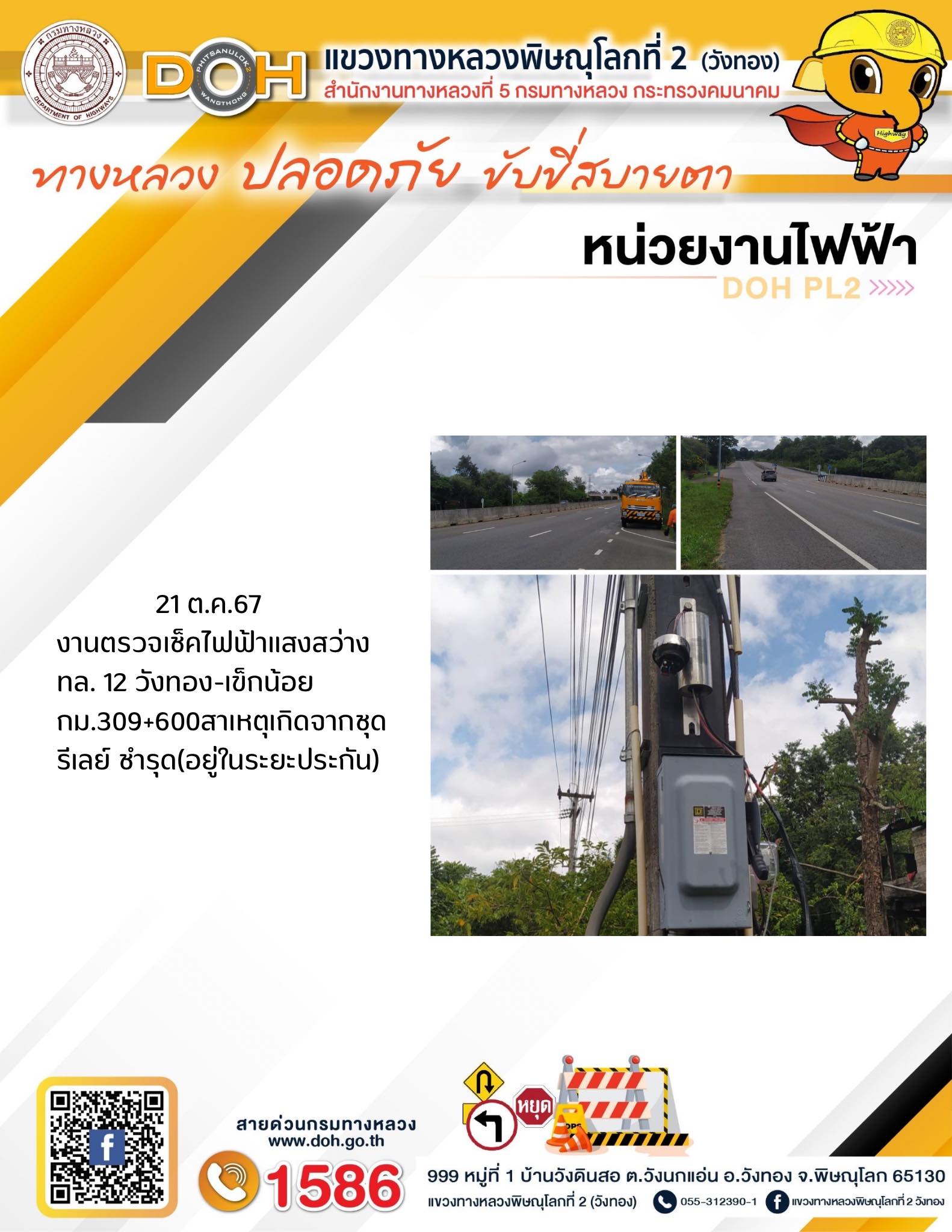 การปฏิบัติงานของ หมวดทางหลวง และ หน่วยงานในสังกัด เพื่ออำนวยความสะดวก และปลอดภัยให้กับประชาชนผู้ใช้เส้นทาง ประจำ วันจันทร์ ที่ 21 ตุลาคม 2567