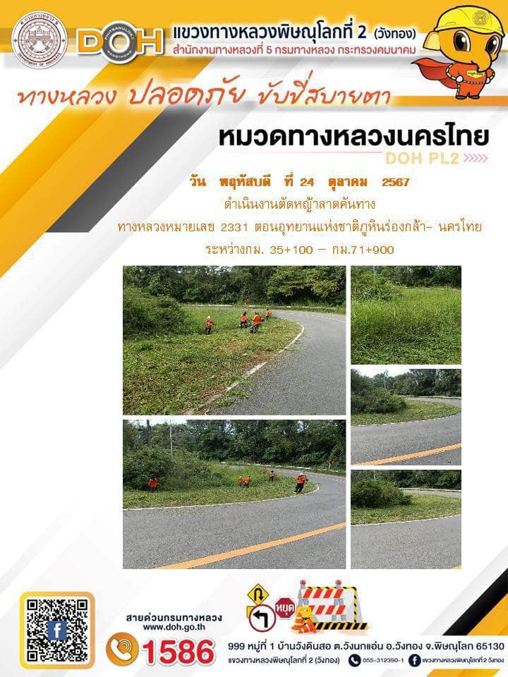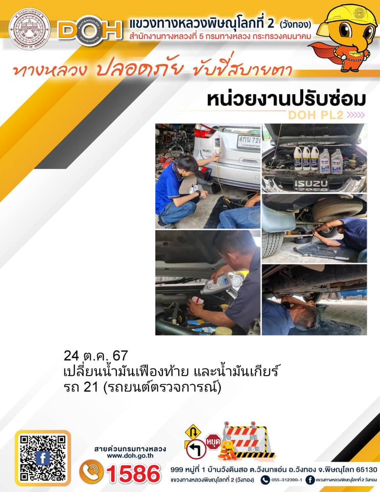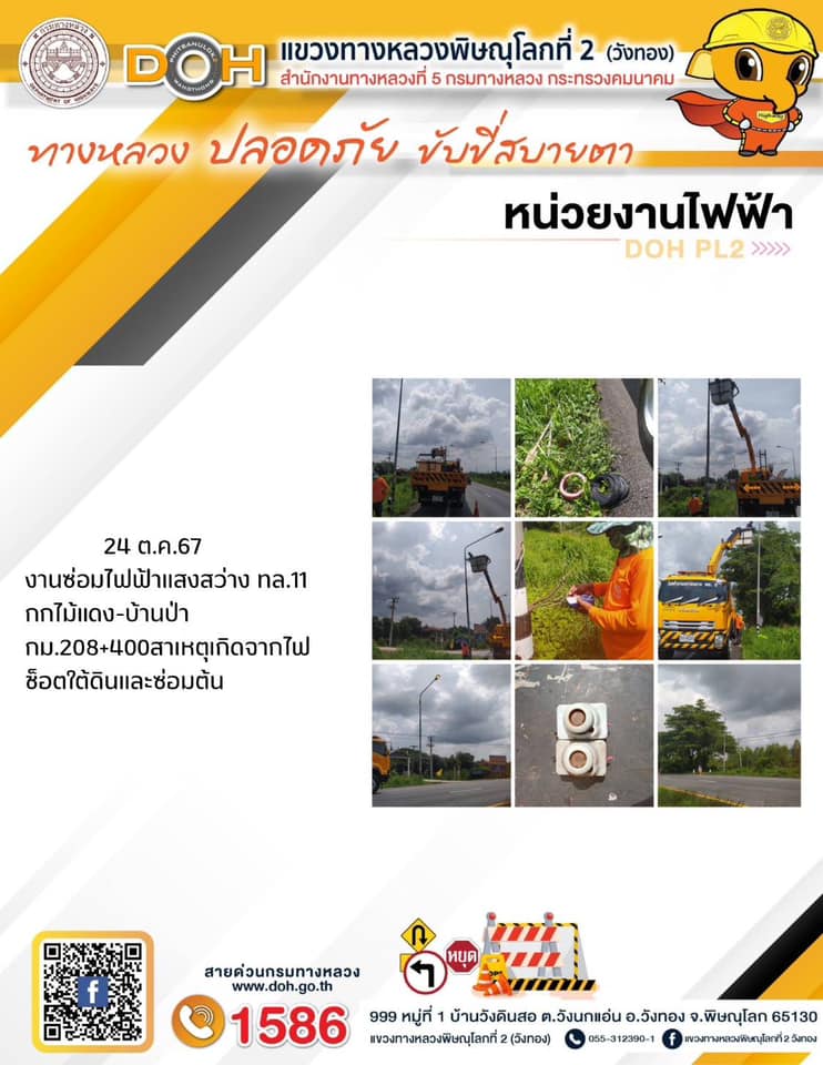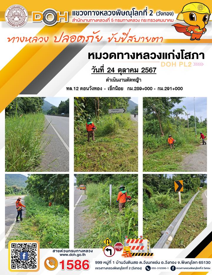 การปฏิบัติงานของ หมวดทางหลวง และ หน่วยงานในสังกัด เพื่ออำนวยความสะดวก และปลอดภัยให้กับประชาชนผู้ใช้เส้นทาง ประจำ วันพฤหัสบดีที่ 24 ตุลาคม 2567