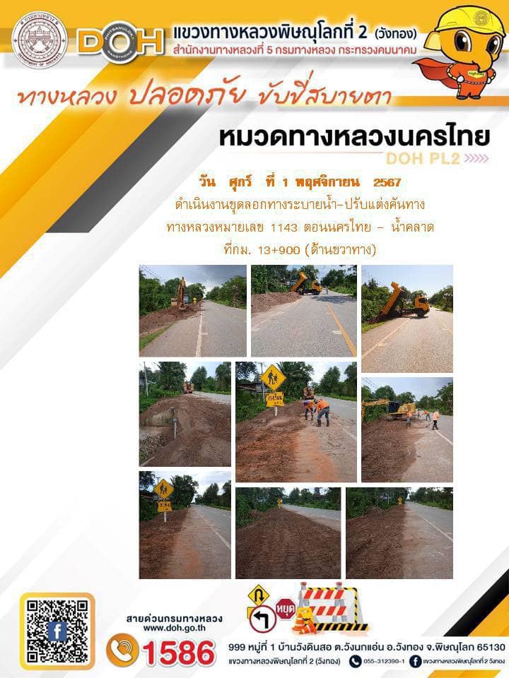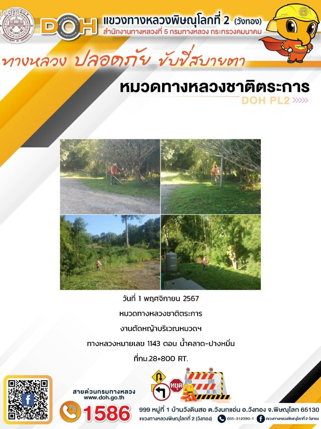 การปฏิบัติงานของ หมวดทางหลวง และ หน่วยงานในสังกัด เพื่ออำนวยความสะดวก และปลอดภัยให้กับประชาชนผู้ใช้เส้นทาง ประจำ วันศุกร์ ที่ 1 พฤศจิกายน 2567