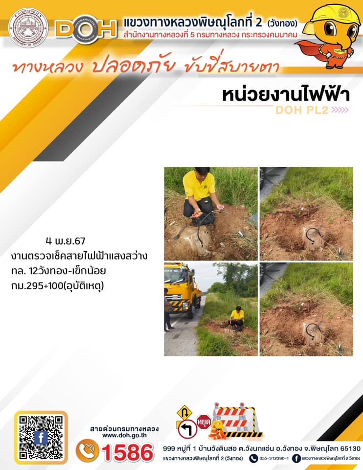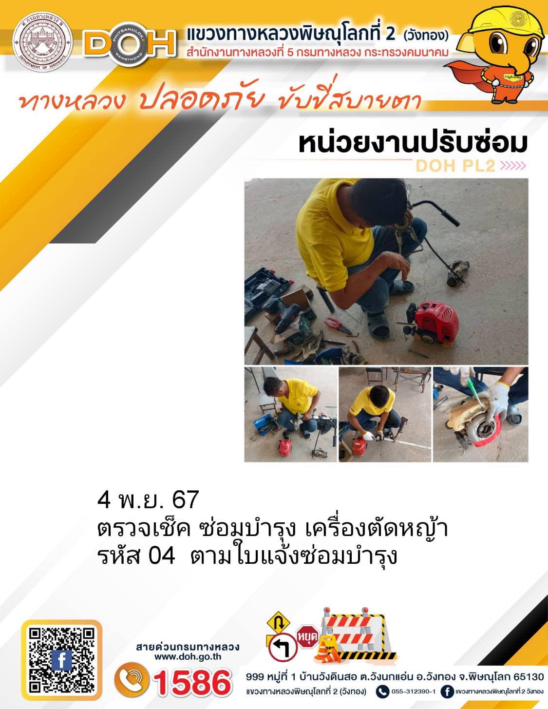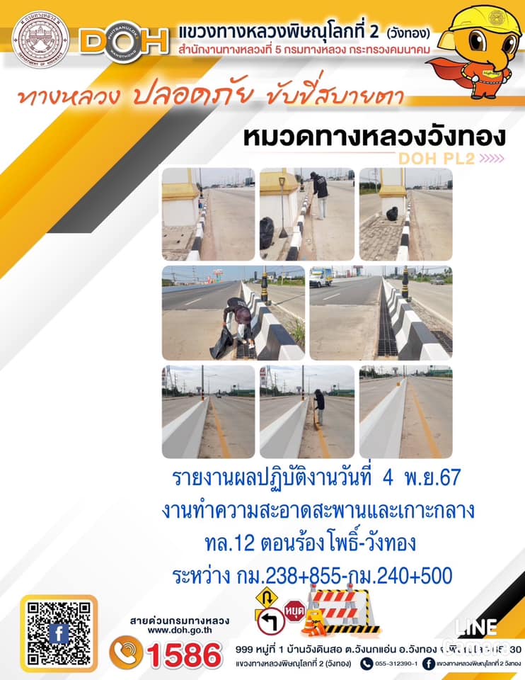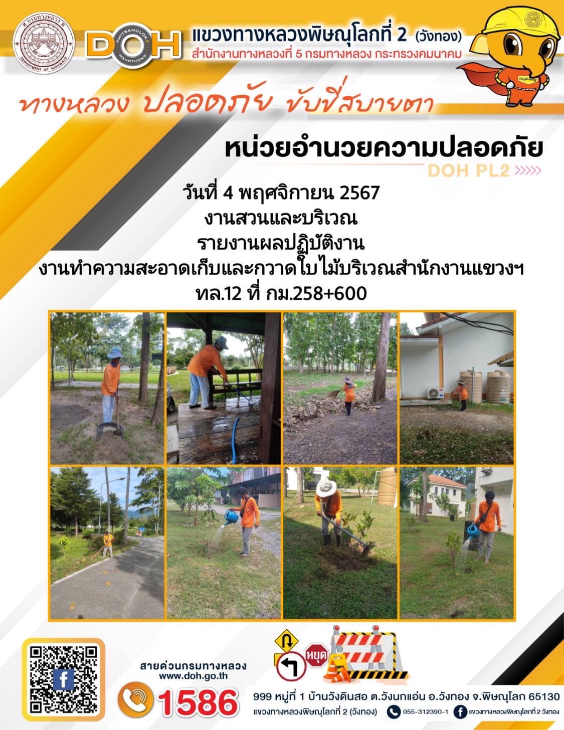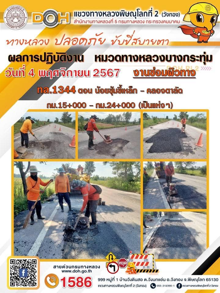 การปฏิบัติงานของ หมวดทางหลวง และ หน่วยงานในสังกัด เพื่ออำนวยความสะดวก และปลอดภัยให้กับประชาชนผู้ใช้เส้นทาง ประจำ วันจันทร์ ที่ 4 พฤศจิกายน 2567