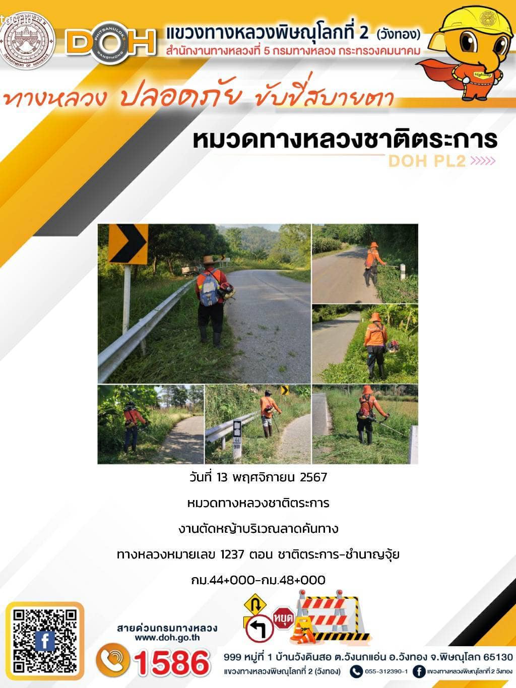 การปฏิบัติงานของ หมวดทางหลวง และ หน่วยงานในสังกัด เพื่ออำนวยความสะดวก และปลอดภัยให้กับประชาชนผู้ใช้เส้นทาง ประจำ วันพุธ ที่ 13 พฤศจิกายน 2567