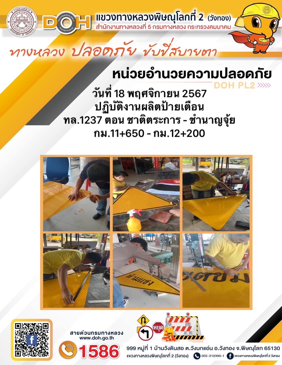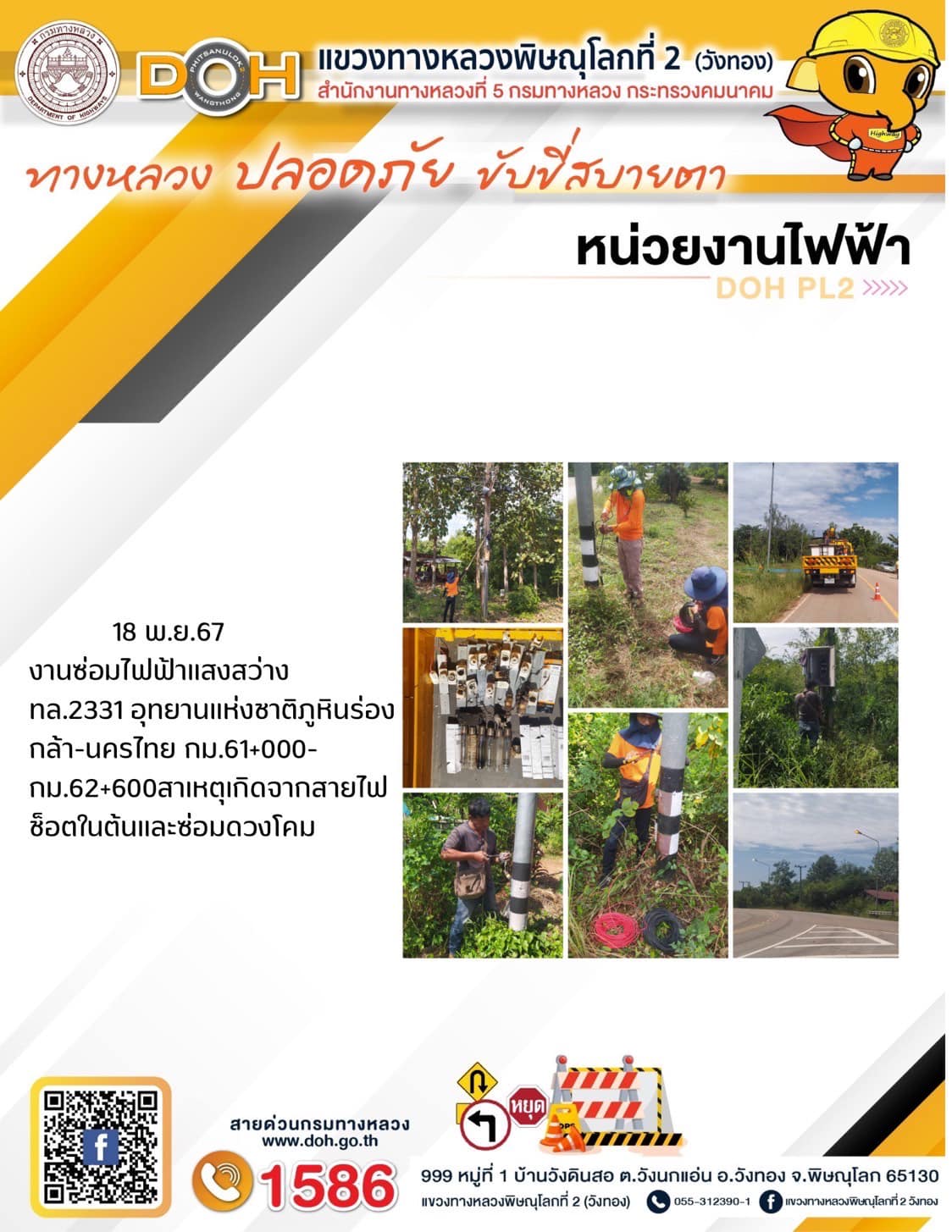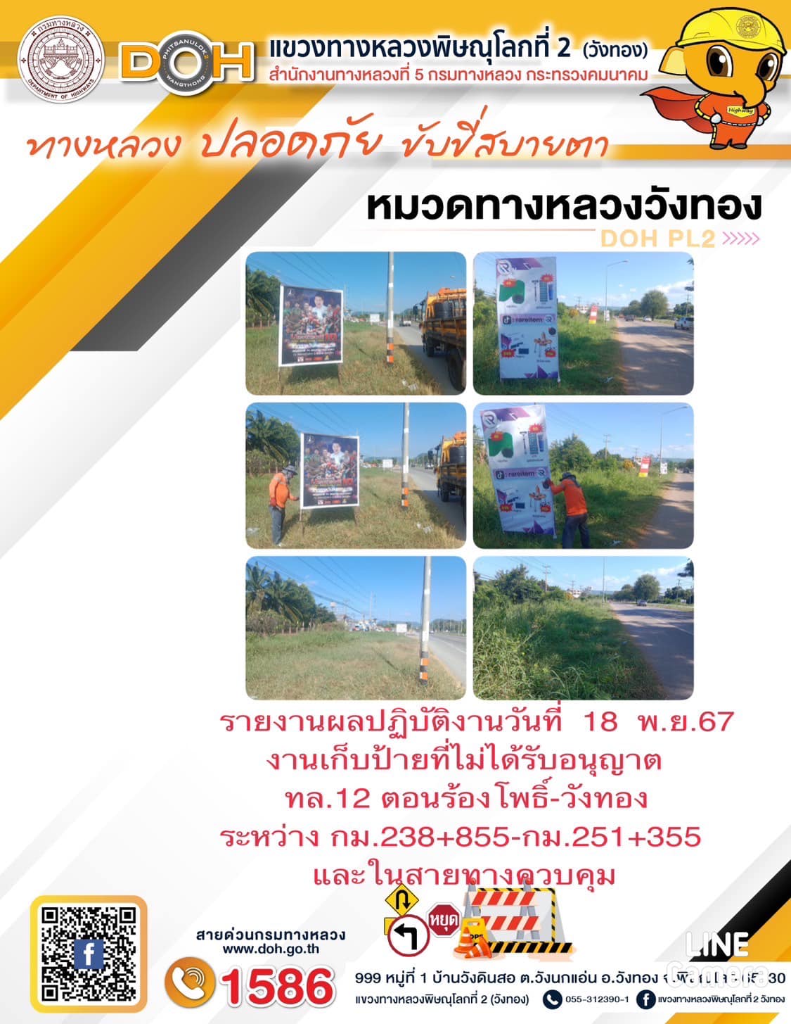การปฏิบัติงานของ หมวดทางหลวง และ หน่วยงานในสังกัด เพื่ออำนวยความสะดวก และปลอดภัยให้กับประชาชนผู้ใช้เส้นทาง ประจำ วันจันทร์ ที่ 18 พฤศจิกายน 2567