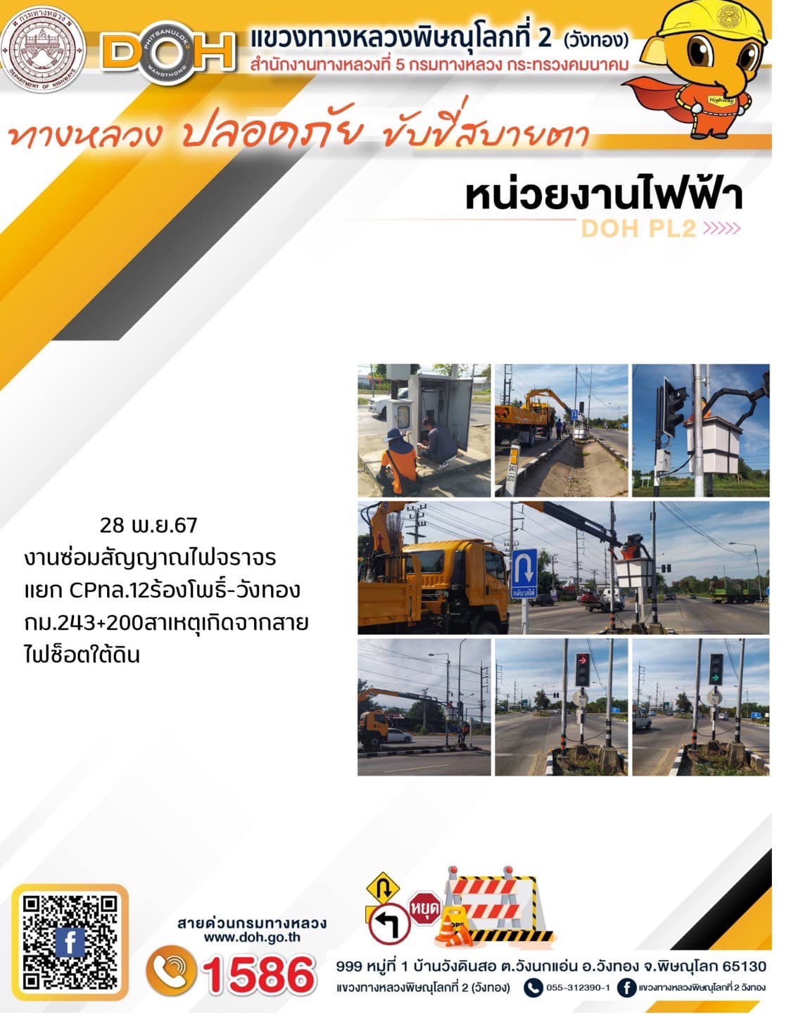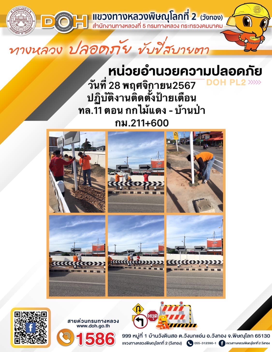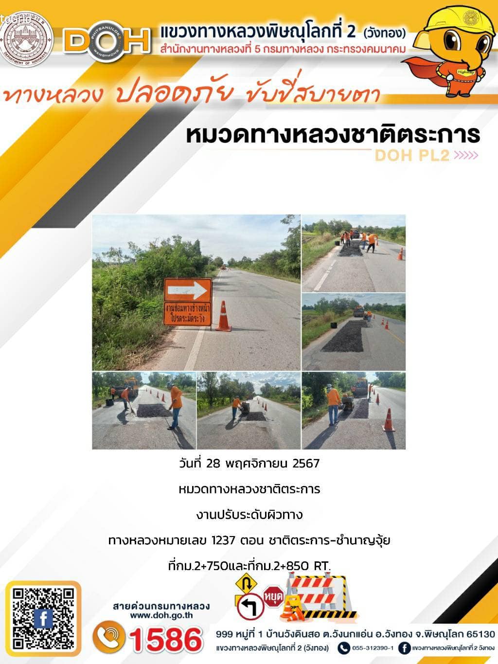 การปฏิบัติงานของ หมวดทางหลวง และ หน่วยงานในสังกัด เพื่ออำนวยความสะดวก และปลอดภัยให้กับประชาชนผู้ใช้เส้นทาง ประจำ วันพฤหัสบดี ที่ 28 พฤศจิกายน 2567