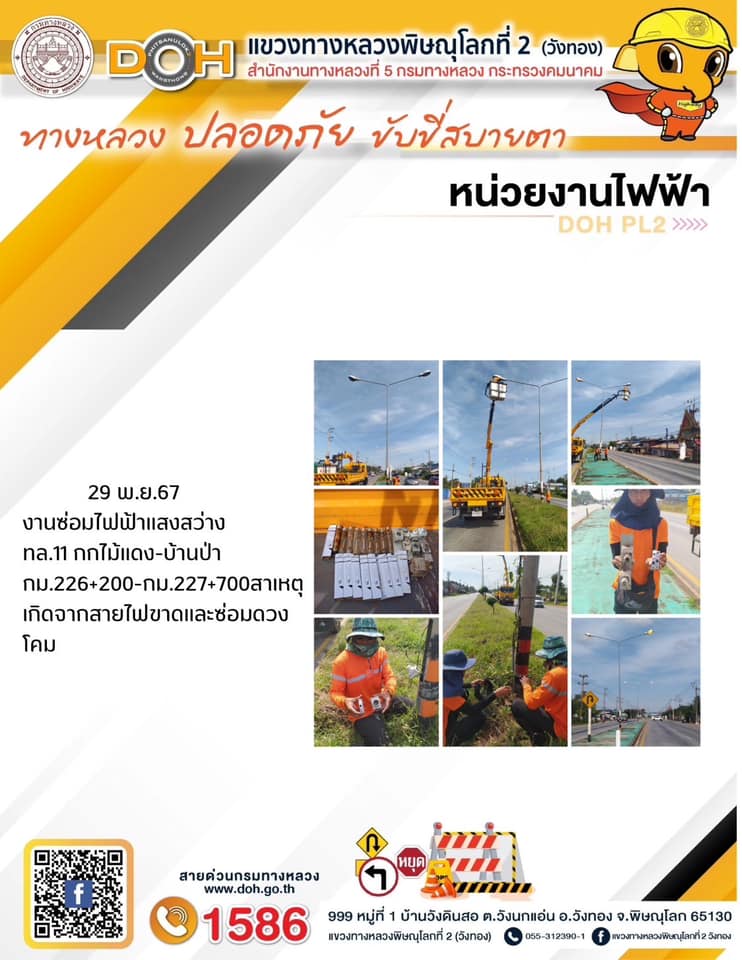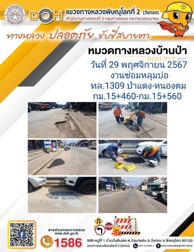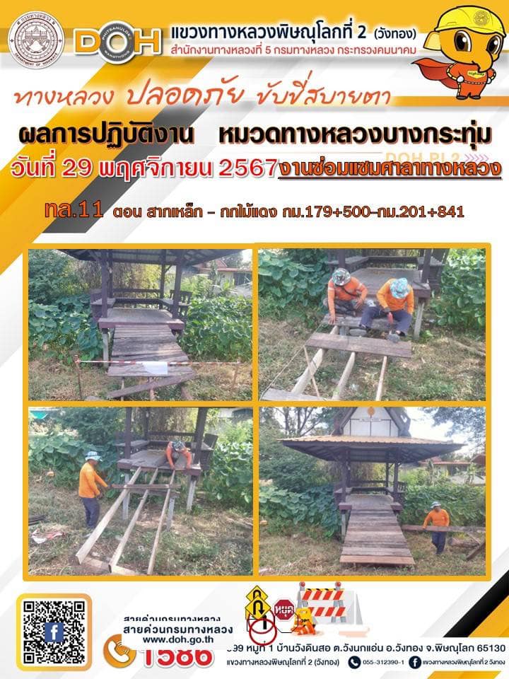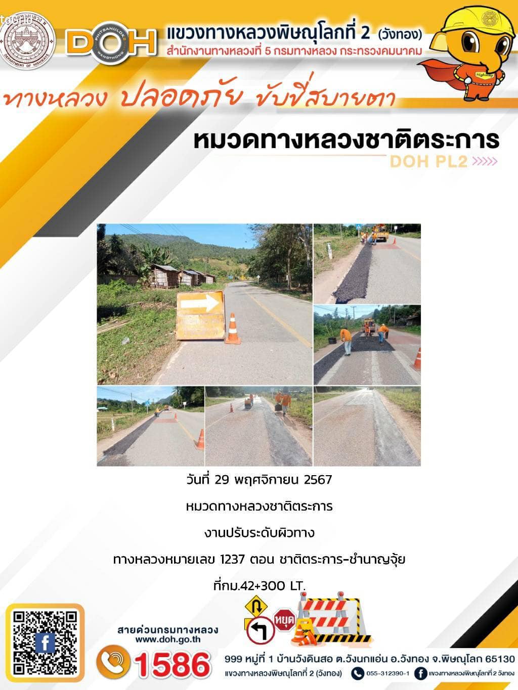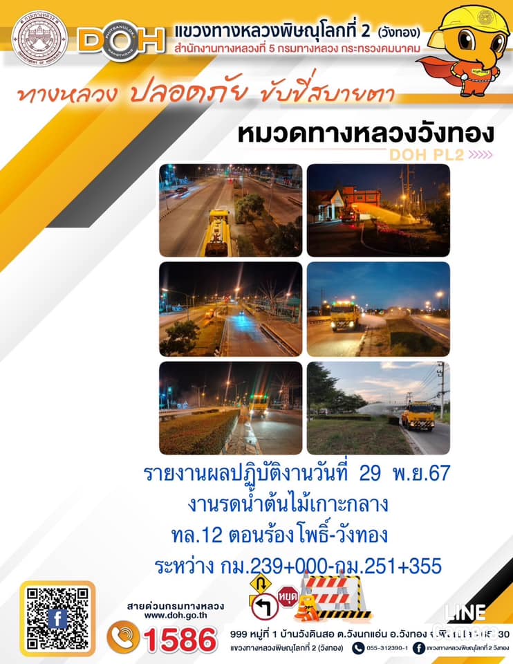 การปฏิบัติงานของ หมวดทางหลวง และ หน่วยงานในสังกัด เพื่ออำนวยความสะดวก และปลอดภัยให้กับประชาชนผู้ใช้เส้นทาง ประจำ วันศุกร์ ที่ 29 พฤศจิกายน 2567