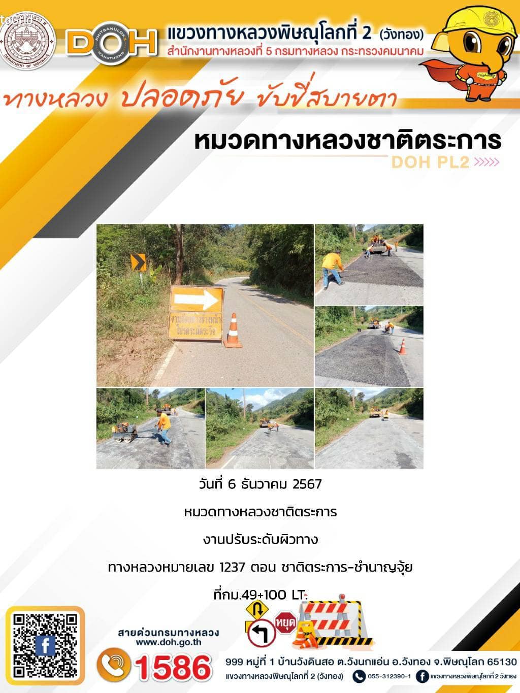 การปฏิบัติงานของ หมวดทางหลวง และ หน่วยงานในสังกัด เพื่ออำนวยความสะดวก และปลอดภัยให้กับประชาชนผู้ใช้เส้นทาง ประจำ วันศุกร์ ที่ 6 ธันวาคม 2567