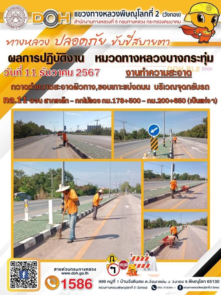 การปฏิบัติงานของ หมวดทางหลวง และ หน่วยงานในสังกัด เพื่ออำนวยความสะดวก และปลอดภัยให้กับประชาชนผู้ใช้เส้นทาง ประจำ วันพุธ ที่ 11 ธันวาคม 2567